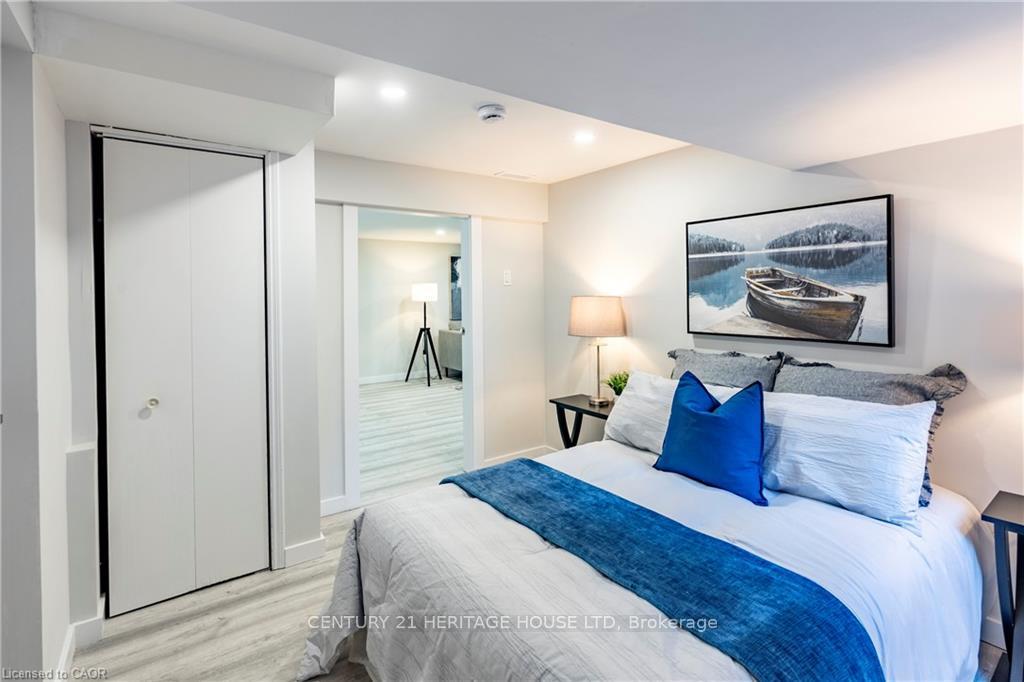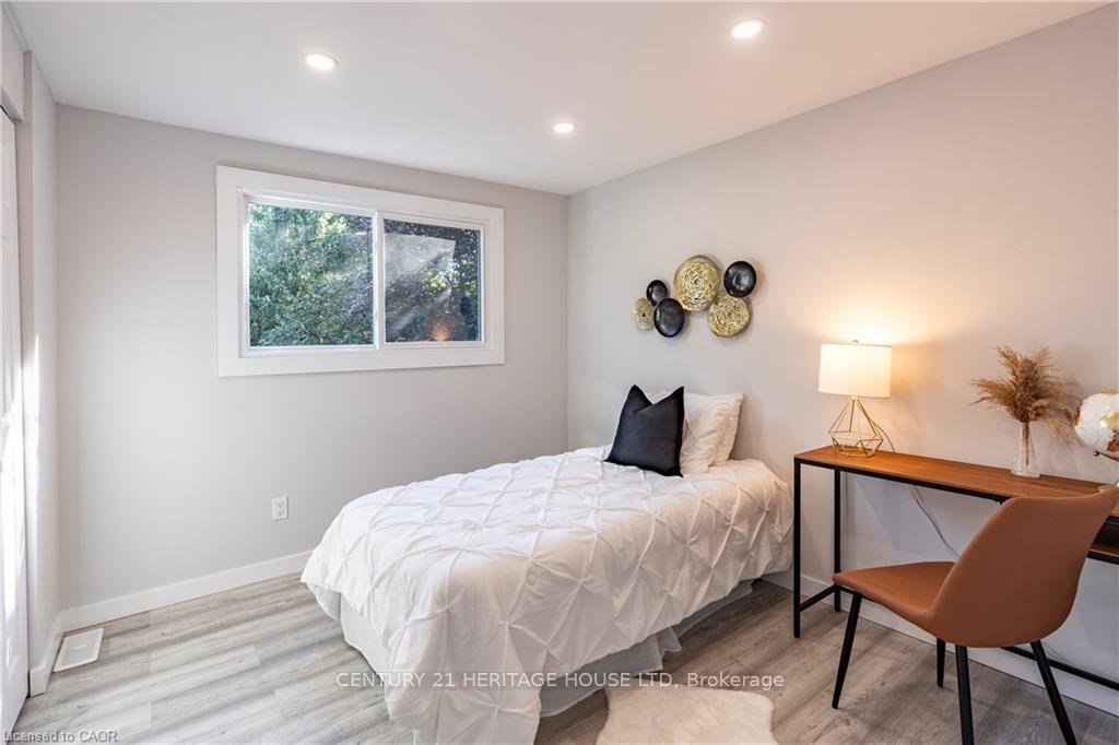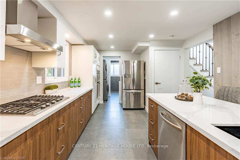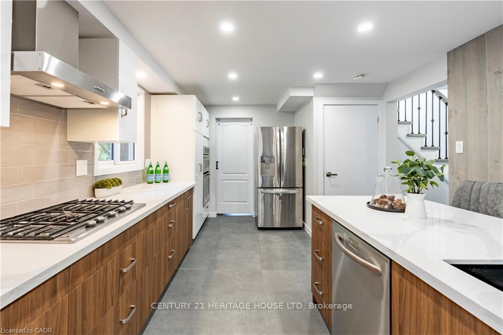 This is your dream home in Kitchener, backing directly onto McLennan Park. Fully renovated with modern styling and top-quality finishes, this detached home is perfect for families who want comfort, convenience, and space. With 3 spacious bedrooms plus 1 in the walkout basement and 2 full bathrooms, there is room for everyone. The heart of the home is the stunning kitchen, complete with a gas cooktop, built-in oven and microwave, oversized island with sink and dishwasher. It is designed for everyday living and effortless entertaining. The finished basement offers a cozy wood-burning fireplace, large recreation area, and a walkout to the private backyard. An extra bedroom or office makes it ideal for guests, a teenager, or working from home. Outside, recent updates include a brand-new front door, garage door, and concrete driveway. Entertaining is easy with a direct gas line for a BBQ on the deck and a second gas line on the lower level ready for a fire pit. The backyard opens onto McLennan Park, one of Kitchener’s most loved green spaces. Additional updates include new pot lights, most appliances, two new rear windows, new flooring, and bathrooms rebuilt from the studs with modern finishes. With a newer roof (2018) and furnace/AC (2020), you can enjoy years of worry-free living. Located in a family-friendly neighbourhood close to schools, shopping, transit, and highway access, this home truly checks all the boxes.