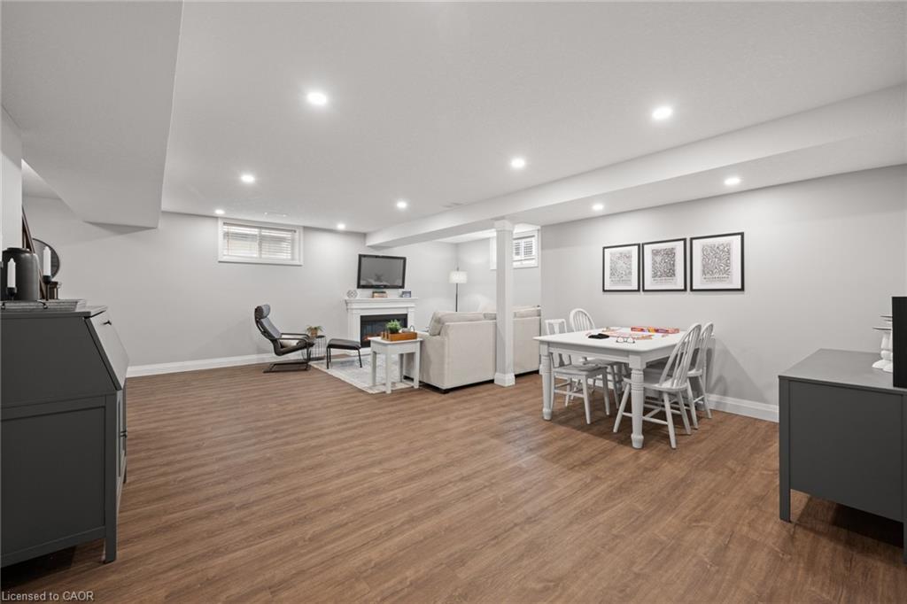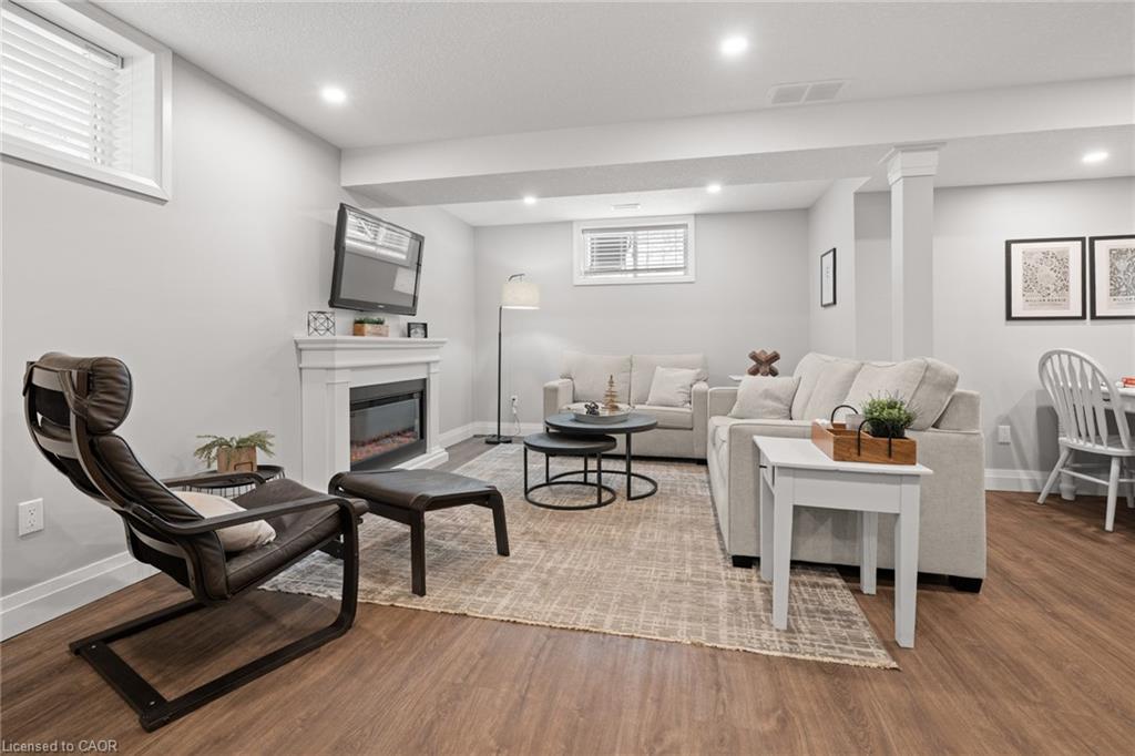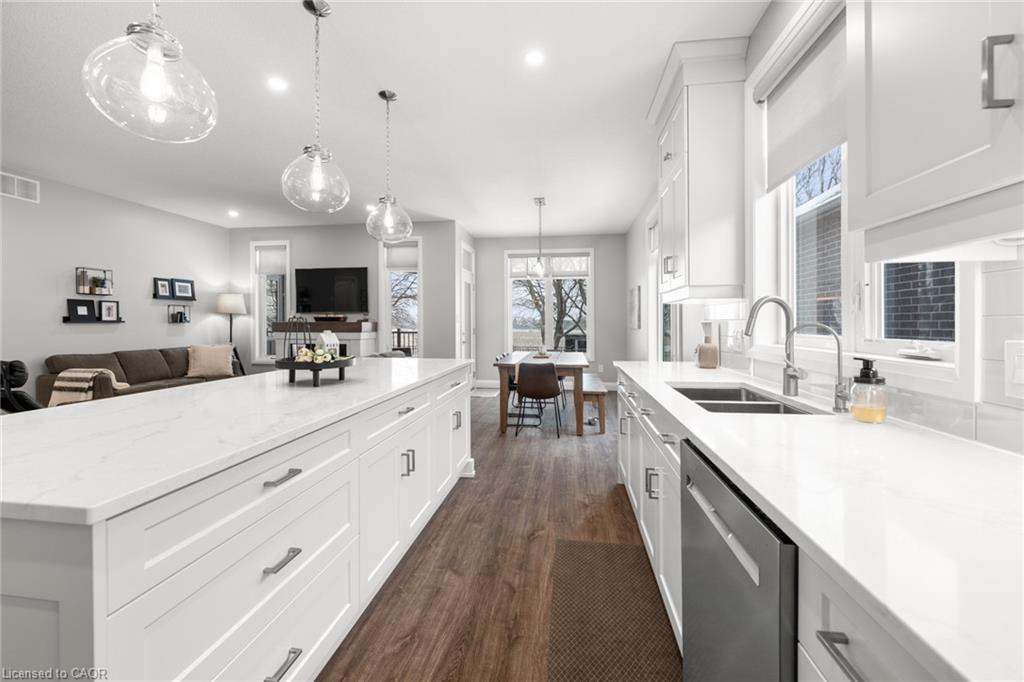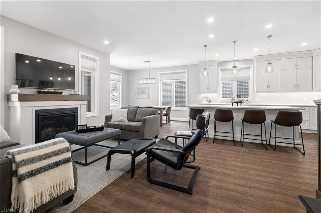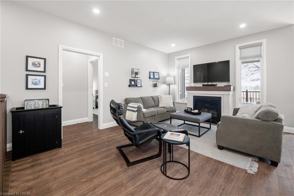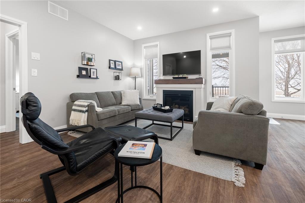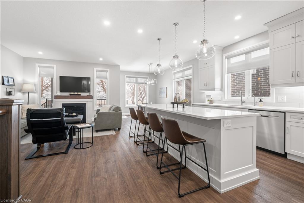 Welcome to this beautiful bungalow in Elmira’s sought-after Southwood Park community. From the moment you step into the spacious foyer, this 5-year-old home impresses with its quality finishes and thoughtful design. The open-concept main floor is perfect for both everyday living and entertaining. The kitchen is a standout, featuring a gas stove, generous prep space, and an oversized island that will delight any home chef. The living area offers a cozy gas fireplace and walkout to a covered deck—ideal for summer gatherings. The primary suite is a private retreat with a large walk-in closet with custom organizers, double vanity sinks, and a luxurious glass shower. The main floor also includes a second bedroom, full bathroom, and convenient laundry room with direct access to the attached double garage. The finished basement expands the living space with a large family room featuring an electric fireplace, a spacious third bedroom, a full bathroom, and plenty of room for a home gym, recreation area, or pool table. Additional storage space is located just off the family room.