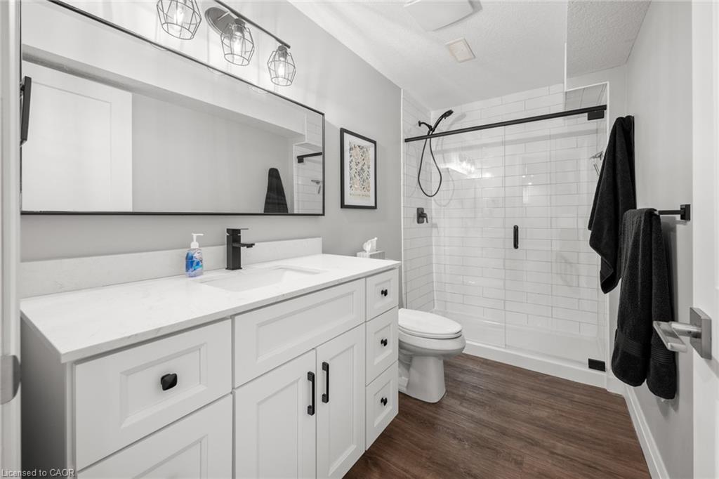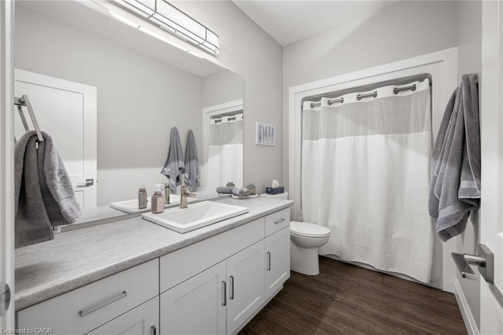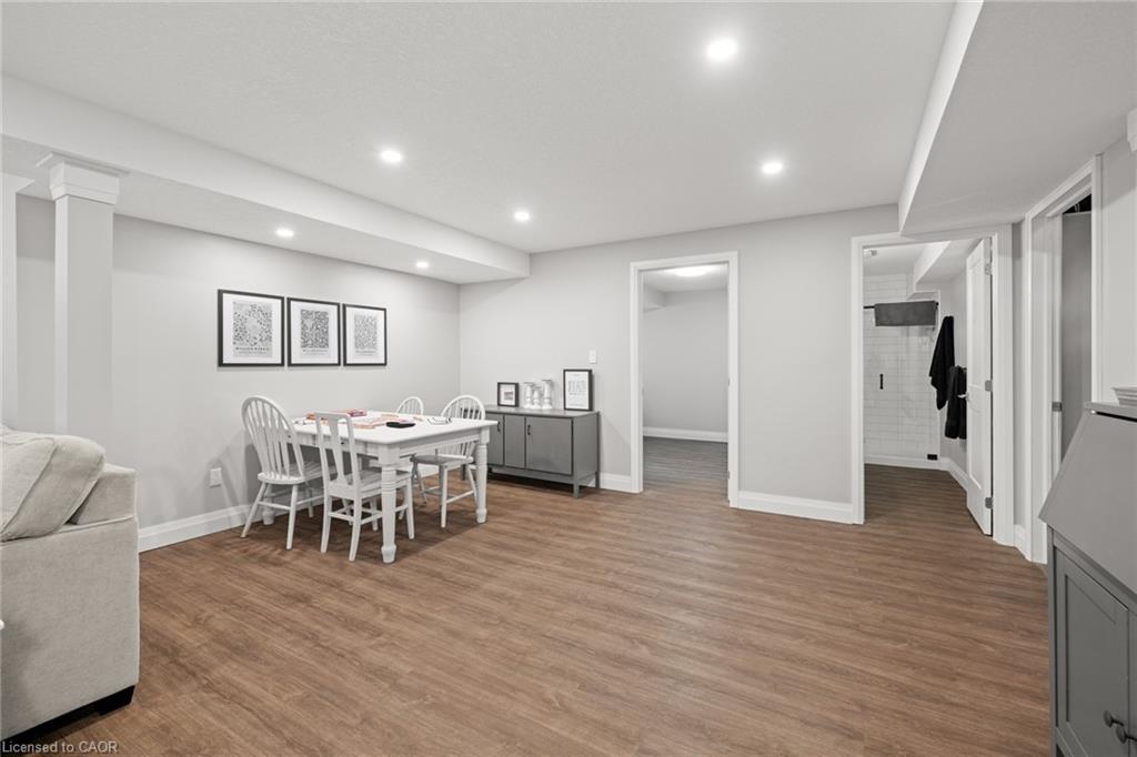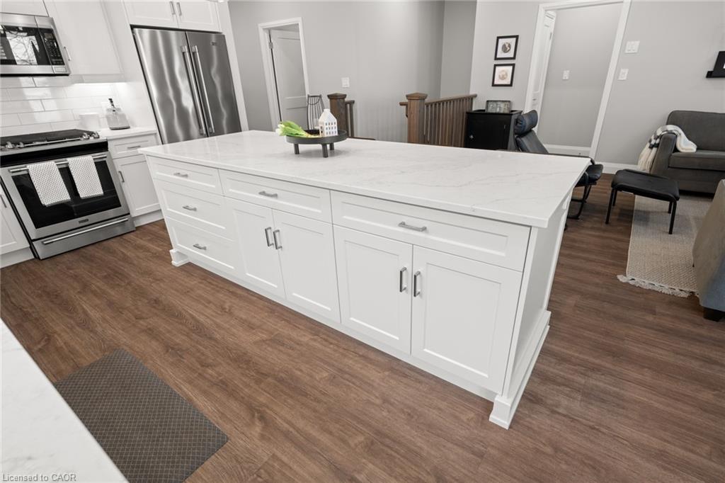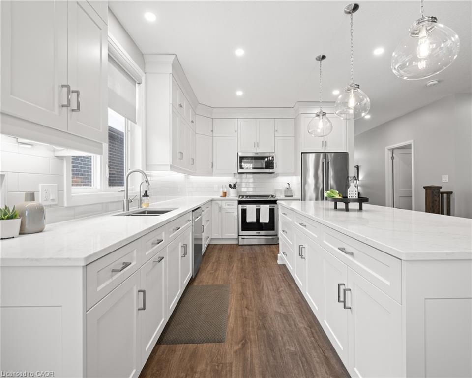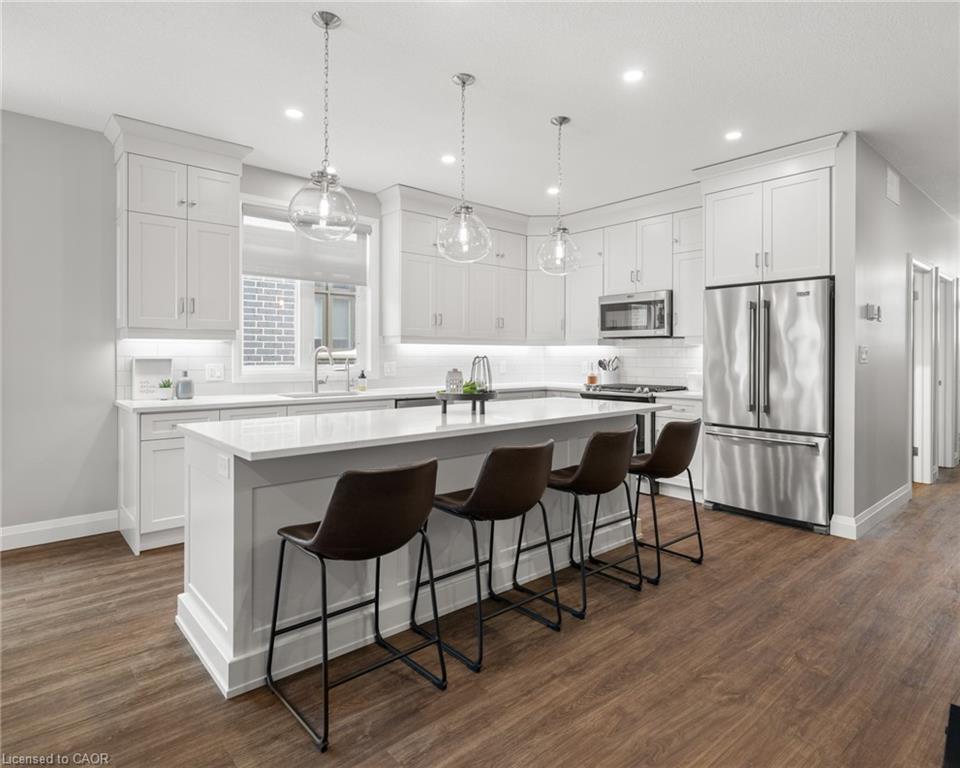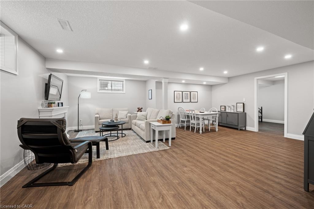 Welcome to this beautiful bungalow in Elmira’s sought-after Southwood Park community. From the moment you step into the spacious foyer, this 5-year-old home impresses with its quality finishes and thoughtful design. The open-concept main floor is perfect for both everyday living and entertaining. The kitchen is a standout, featuring a gas stove, generous prep space, and an oversized island that will delight any home chef. The living area offers a cozy gas fireplace and walkout to a covered deck—ideal for summer gatherings. The primary suite is a private retreat with a large walk-in closet with custom organizers, double vanity sinks, and a luxurious glass shower. The main floor also includes a second bedroom, full bathroom, and convenient laundry room with direct access to the attached double garage. The finished basement expands the living space with a large family room featuring an electric fireplace, a spacious third bedroom, a full bathroom, and plenty of room for a home gym, recreation area, or pool table. Additional storage space is located just off the family room.