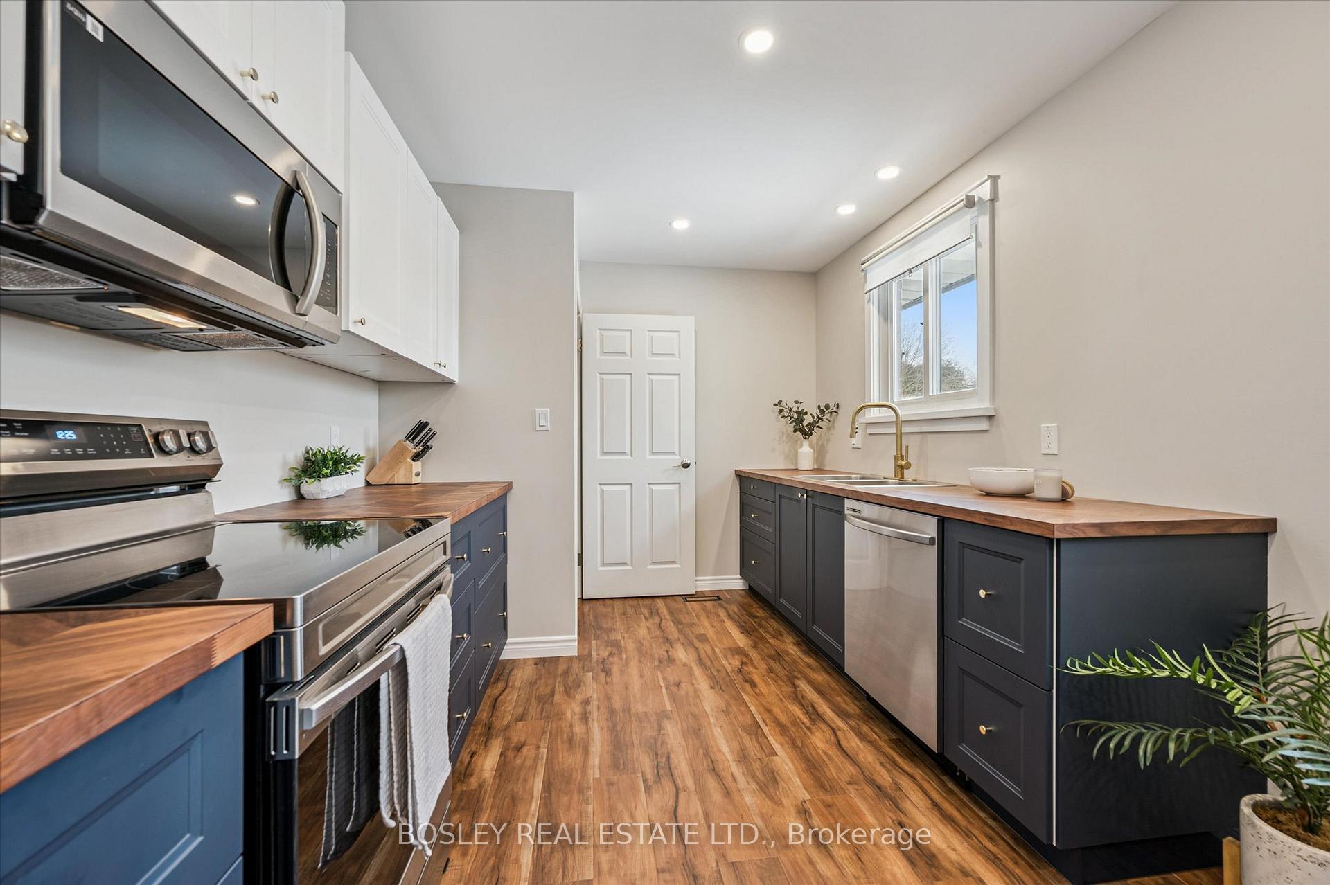 INVITING AND INSPIRED on Irvine!!! This beautifully renovated 3 bed, 1 bath, bungalow offers the perfect blend of charm, style, and lifestyle. Inside, the updated kitchen showcases stunning butcher block herringbone-pattern countertops. The bright main floor living room is anchored by an electric fireplace with shiplap surround and floating wood shelves. The partially finished basement provides additional living space with a cozy gas fireplace and rough-in for a future second bathroom. Enjoy the covered rear deck – ideal for relaxing or entertaining. Situated on a desirable corner lot, this move-in ready home is just steps from Elora’s vibrant boutique downtown, featuring top-rated restaurants, brewery, distillery, cafés, artisan shops, schools, and parks – and only a 15-minute walk to the Elora Mill. Just minutes to the Elora Gorge and Grand River Raceway, and an easy commute to Guelph (20 min) and Waterloo (24 min). A rare opportunity to own a thoughtfully updated home in one of Ontario’s most sought-after communities.