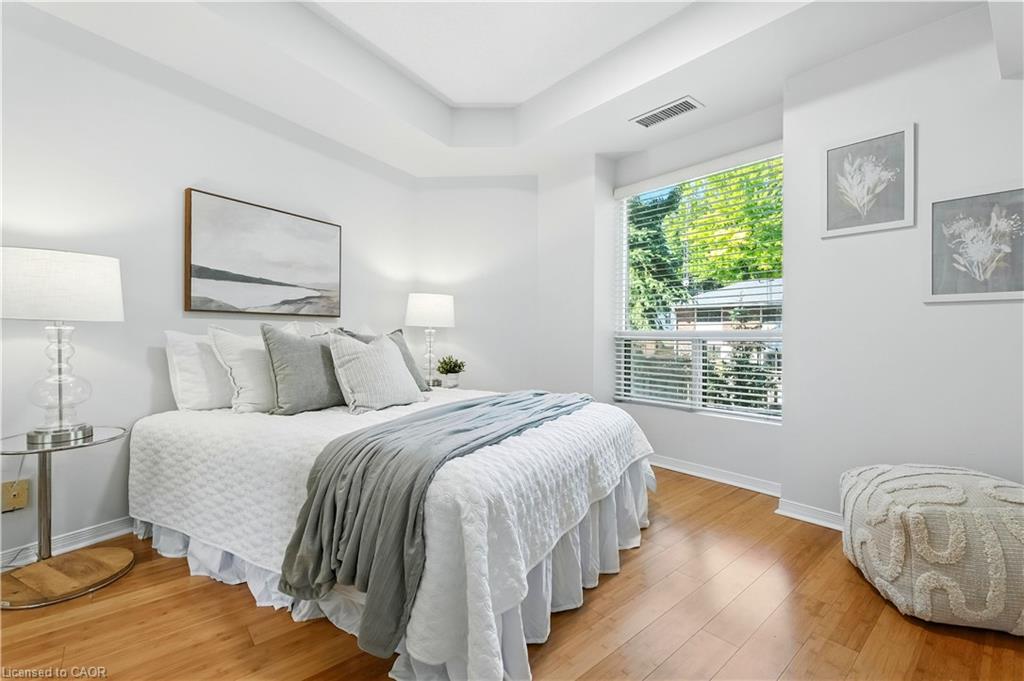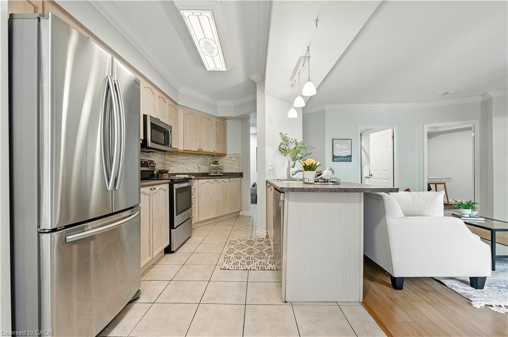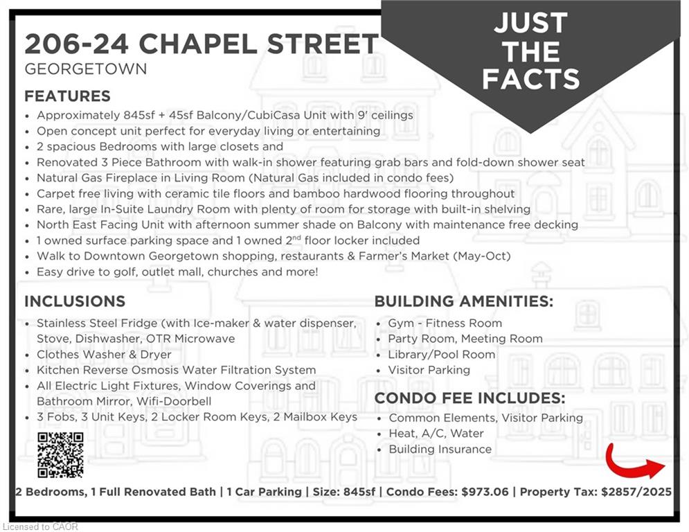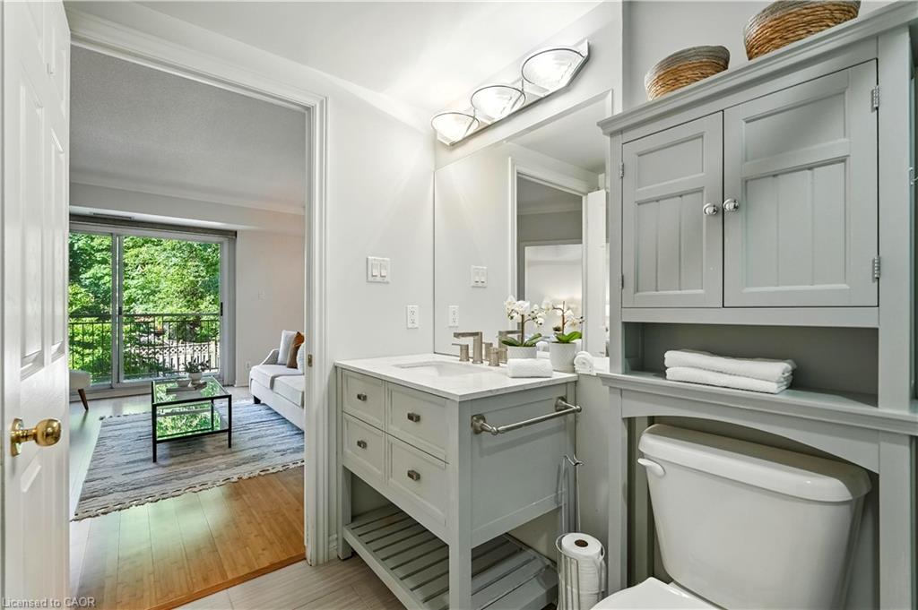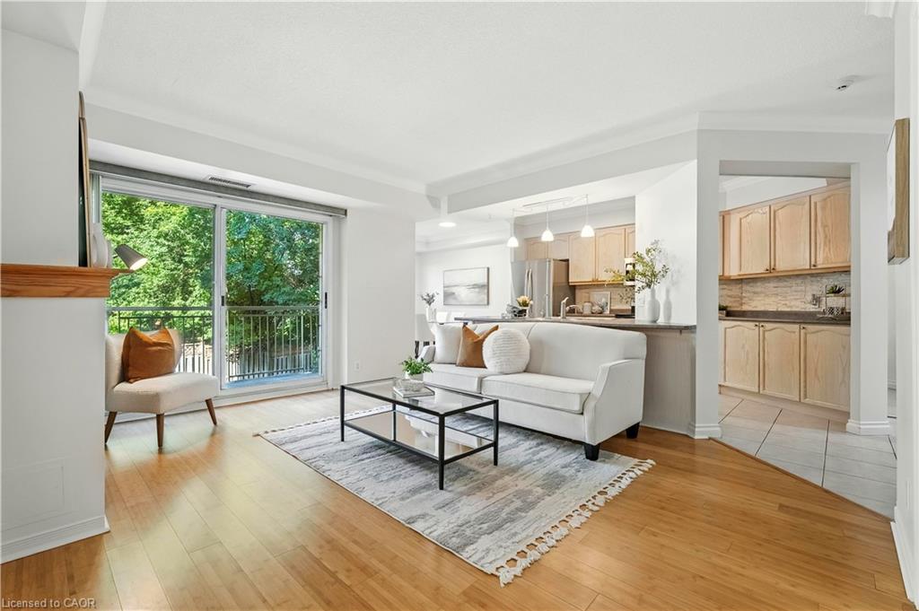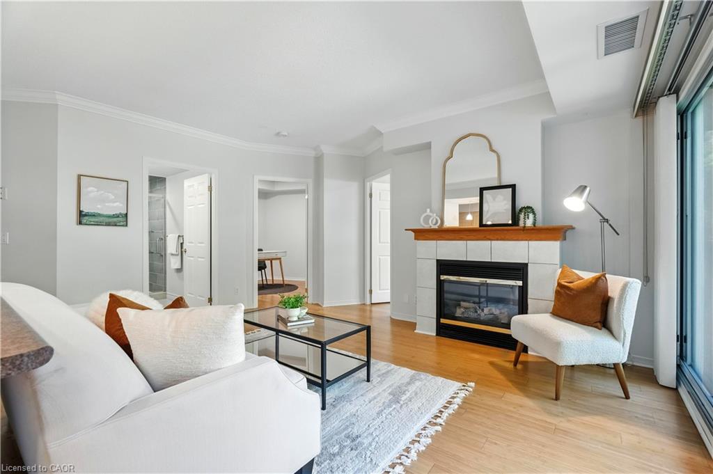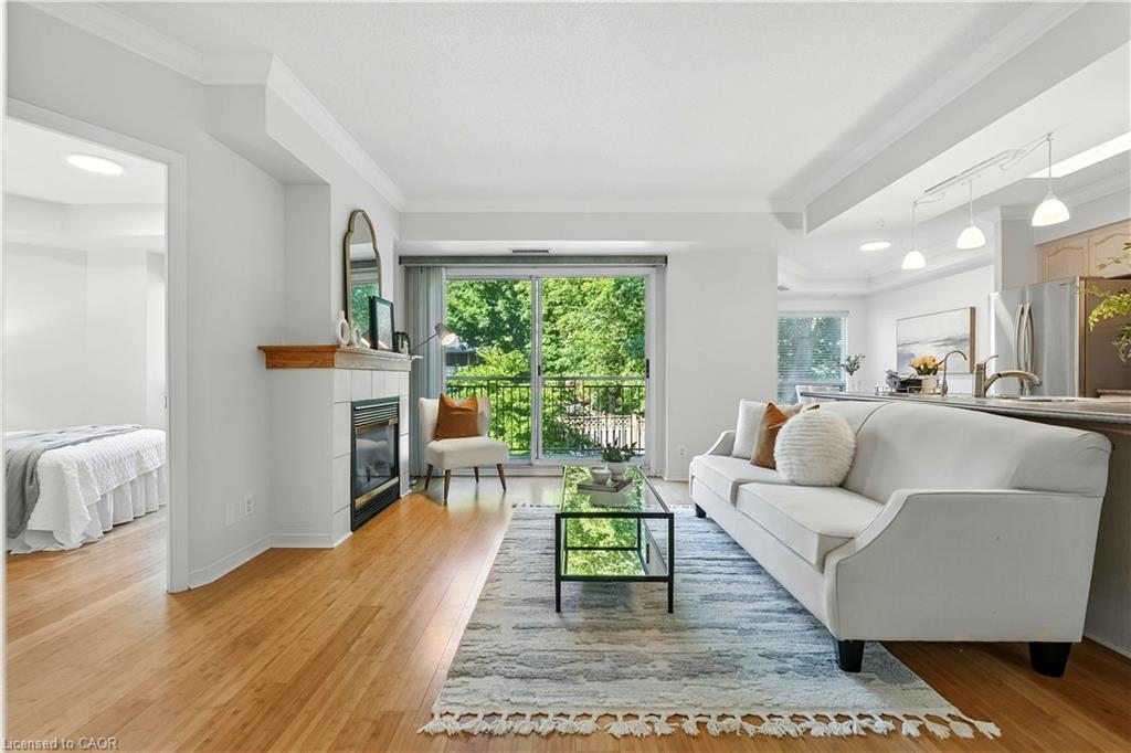 ***SEE VIRTUAL TOUR*** Welcome to Maintenance-Free Living at Victoria Gardens! Discover comfort and convenience in this beautifully upgraded 2-bedroom, 1 Bathroom suite located in a quiet, low-rise 40-unit building. Offering approx. 845 sq. ft. of living space + a 45 sq. ft. private balcony, this well-maintained unit features open concept kitchen, living, and dining areas, perfect for daily living and entertaining. Enjoy the warmth and style of bamboo flooring and freshly painted neutral tones, along with the cozy ambiance of a natural gas fireplace with gas included in your maintenance fees. Step outside to a shaded balcony, ideal for morning coffee or peaceful evenings, overlooking lush greenery and beautiful gardens with maintenance-free decking. Additional features include: In-suite laundry, 1 owned parking space + 1 owned locker. Condo fees include water, heat, A/C & natural gas. Fantastic building amenities include a games room, party/meeting room, library, fitness area, and BBQ terrace, creating a vibrant community feel without leaving home. Situated in a prime Georgetown location, you’re just minutes from Main Street shops and cafes, the GO station, the Georgetown Farmers Market (May-Oct), churches, golf courses, the hospital, and more. Whether you’re looking to downsize or simplify, this unit offers the perfect balance of space, style, and stress-free living. Come see why Victoria Gardens is more than a condo, it’s a place to call home.