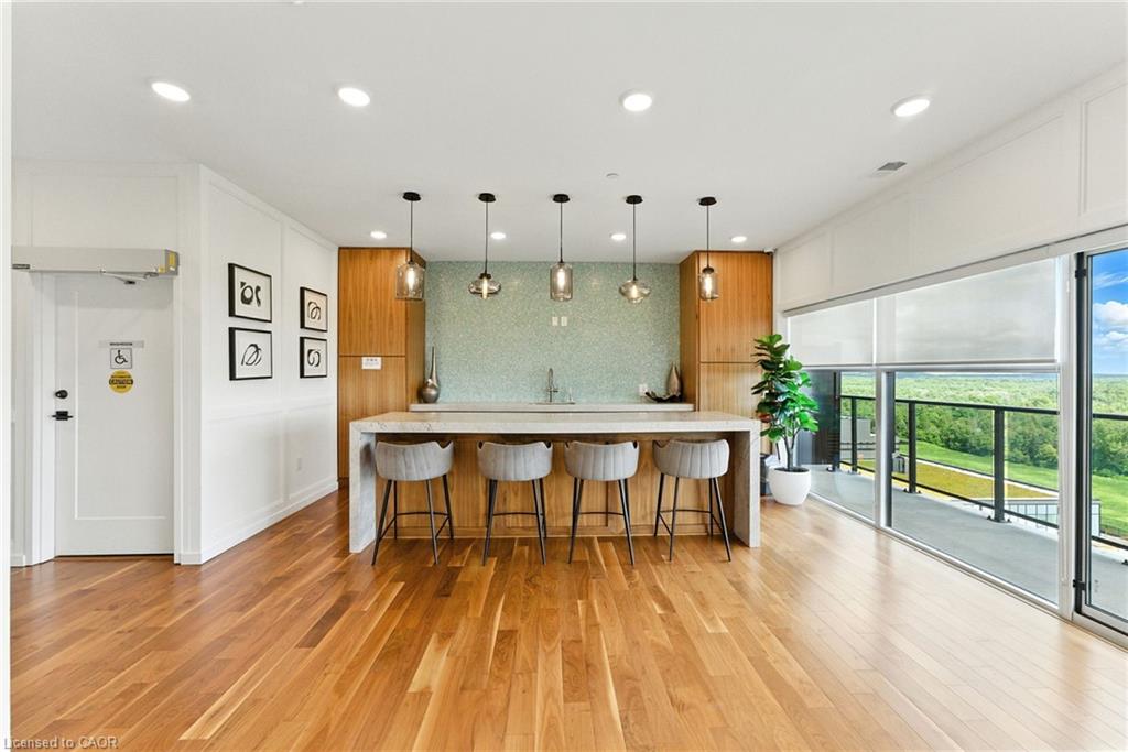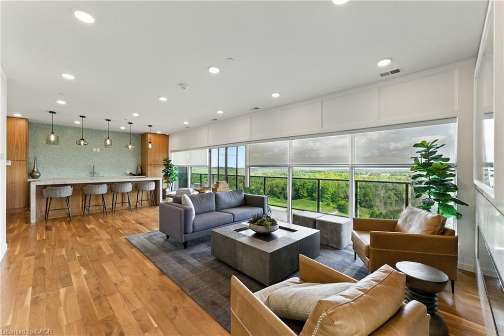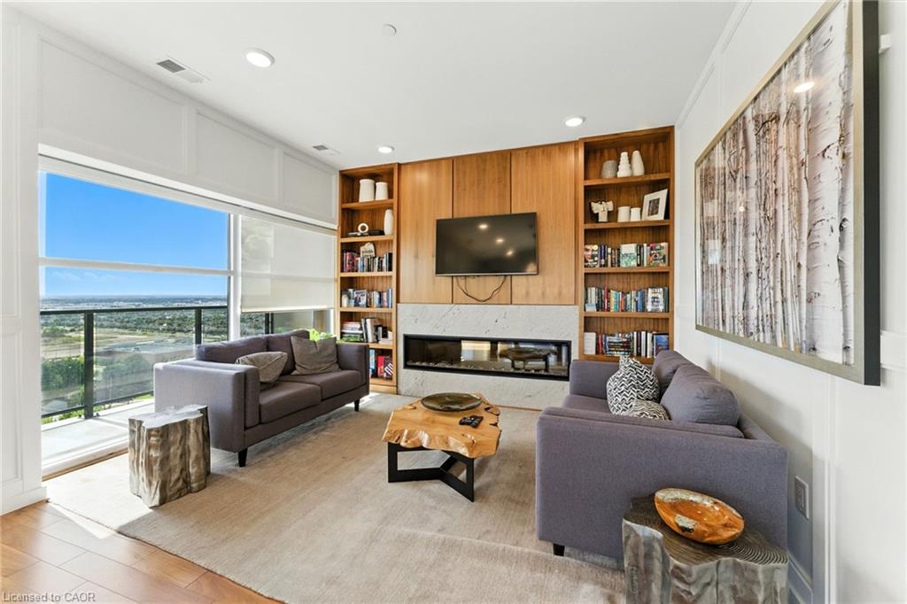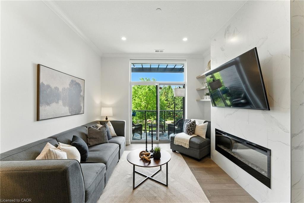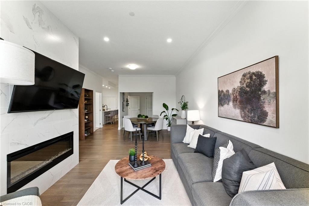 TURN KEY LUXURY! Welcome to 1880 Gordon Street – Gordon Square Condominiums, built by the Tricar Group. This 2 bedroom, 2 bathroom condo is packed with premium upgrades that set it apart. Featuring soaring 10ft ceilings, quartz countertops, hardwood floors, a walk-in pantry, heated bathroom floors, and an upgraded fireplace surround, every detail has been thoughtfully curated. The open-concept living space flows to a private terrace-style balcony—perfect for morning coffee or evening BBQs. Enjoy premium amenities including a golf simulator, fitness room, guest suites, and resident lounge. With easy access to Highway 401, restaurants, parks, and schools, daily life is effortless. Unit #207 at 1880 Gordon Street includes 1 parking space and 1 locker—your ticket to modern, stress-free living in South Guelph.