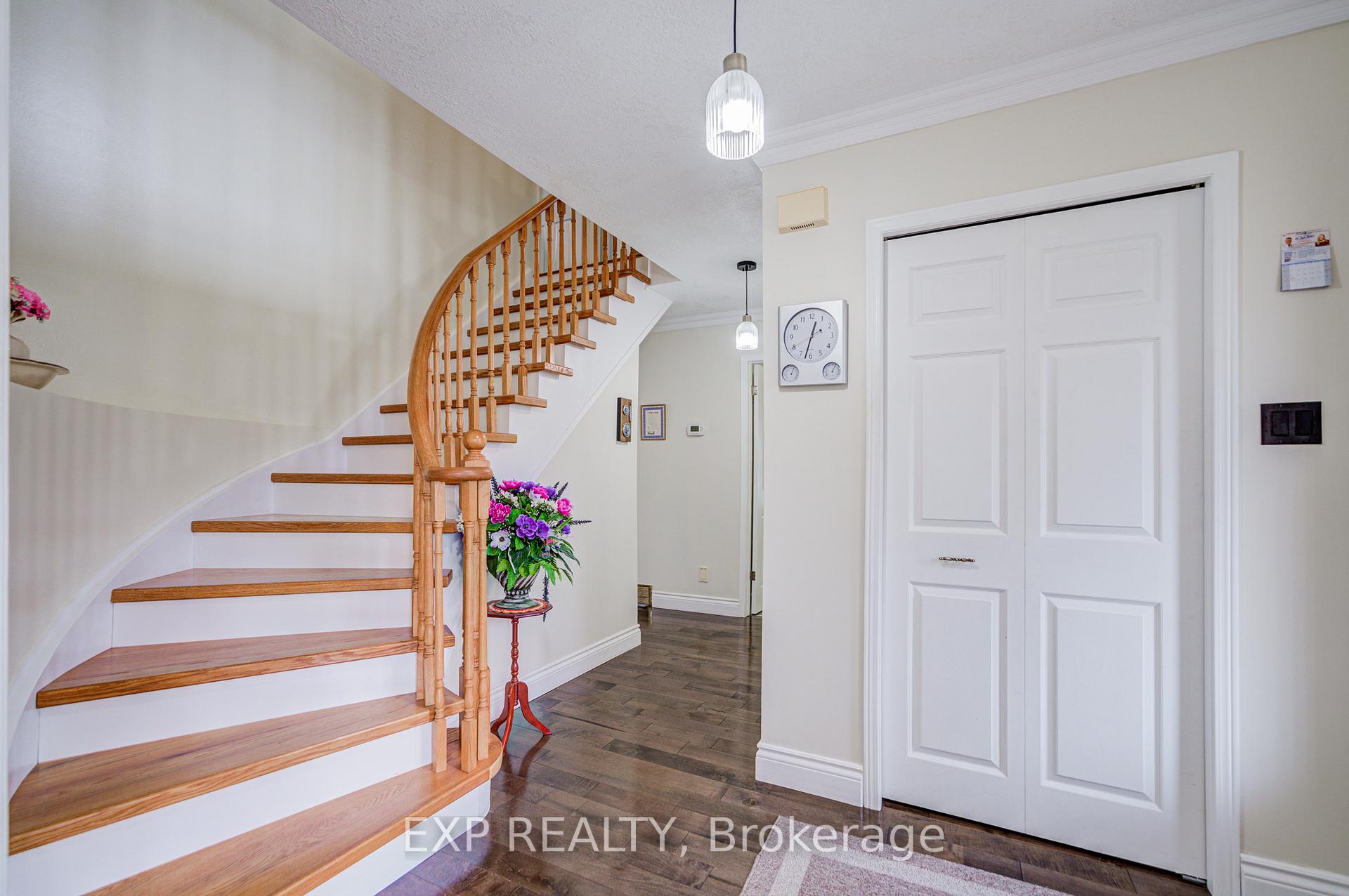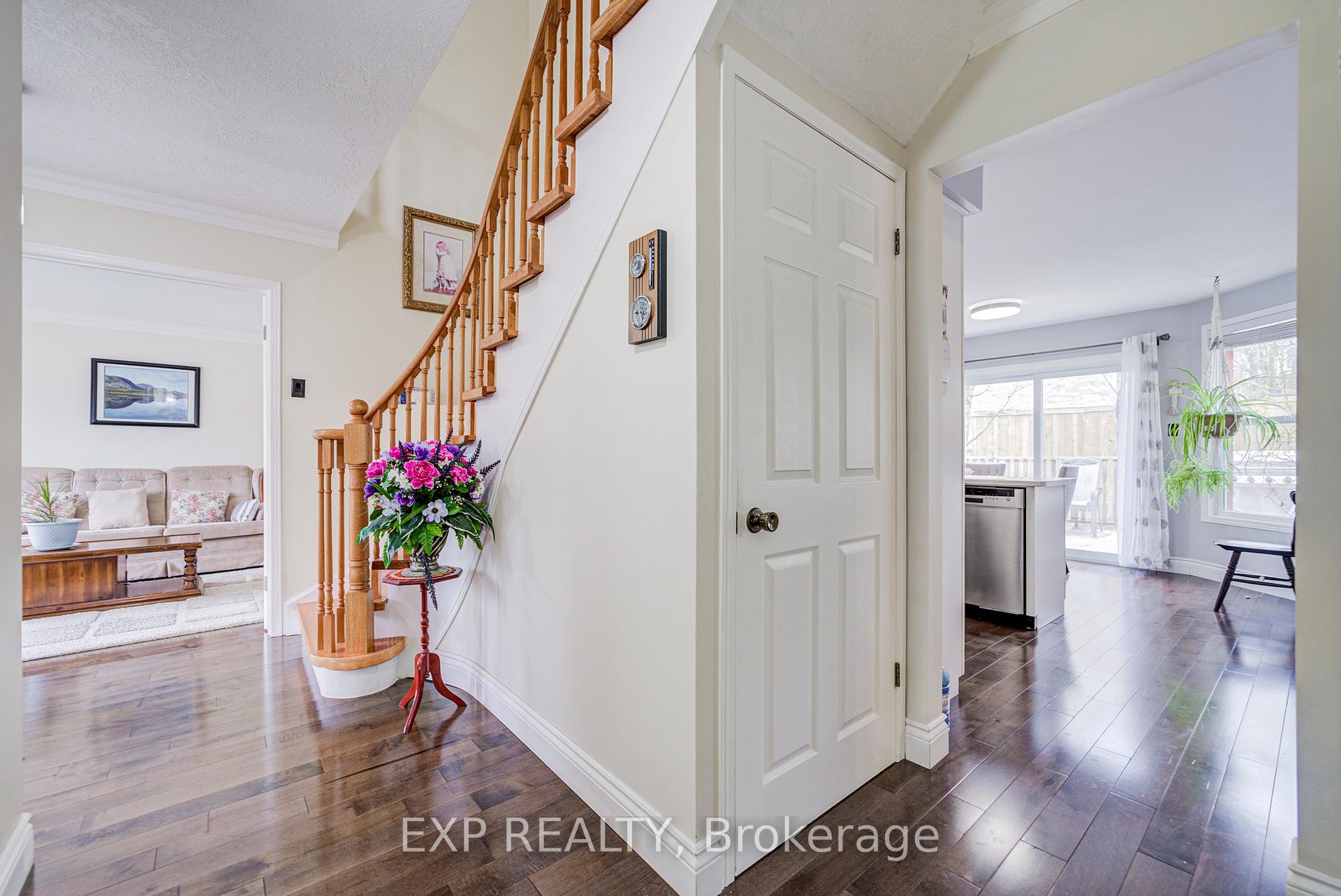 Welcome to this beautifully maintained all-brick family home in the highly sought-after Beechwood Forest community-where comfort, space, and location come together perfectly. Situated on a premium pie-shaped corner lot and just steps from Monarch Woods Trail, top-rated schools, and everyday amenities, this home offers the ideal setting for families to grow and thrive. Check out the top reasons to make this your next home:Prime family-friendly location close to trails, parks, schools, and all amenities. Large pie-shaped, fully fenced corner lot with only one side sidewalk for added privacy. Solid all-brick home with double car garage and double-wide concrete driveway. Freshly painted throughout with carpet-free hardwood flooring on main and upper levels. Spacious main floor featuring a stunning sweeping curved staircase at the foyer, two living areas, formal dining, and a kitchen with stainless steel appliances. Convenient main floor laundry for added everyday functionality. Bright and functional layout perfect for both everyday living and entertaining. Four generous bedrooms upstairs, including a primary suite with walk-in closet and 3-piece ensuite with jacuzzi. Separate side entrance and a fully finished basement with recreation area, bonus room, bathroom, and ample storage.A move-in ready home offering space, versatility, and an unbeatable location-book your showing today.