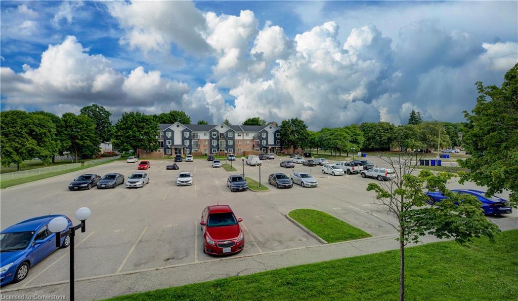 Condo fees cover water, parking, windows, roof, snow removal and more, letting you focus on lifestyle, not upkeep. Your dedicated outdoor parking spot is steps from the secure entrance. Minutes from Rim Park, Grand River trails, Conestoga Mall, universities and the ION LRT, this address balances peaceful suburbia with unbeatable connectivity.