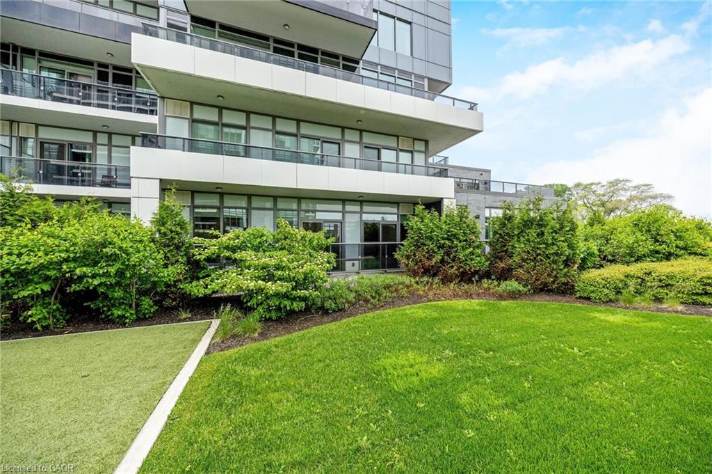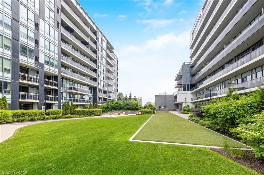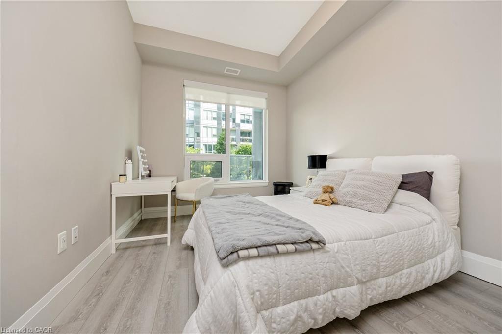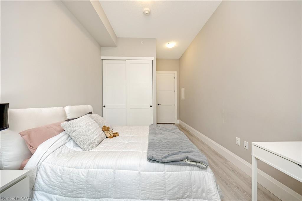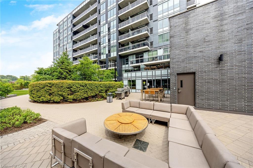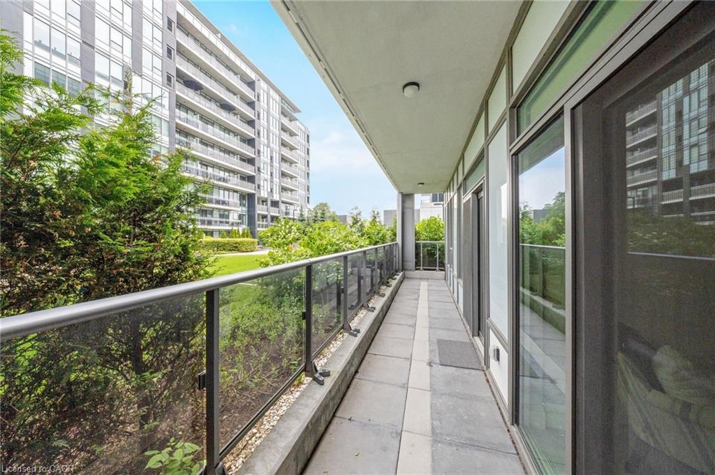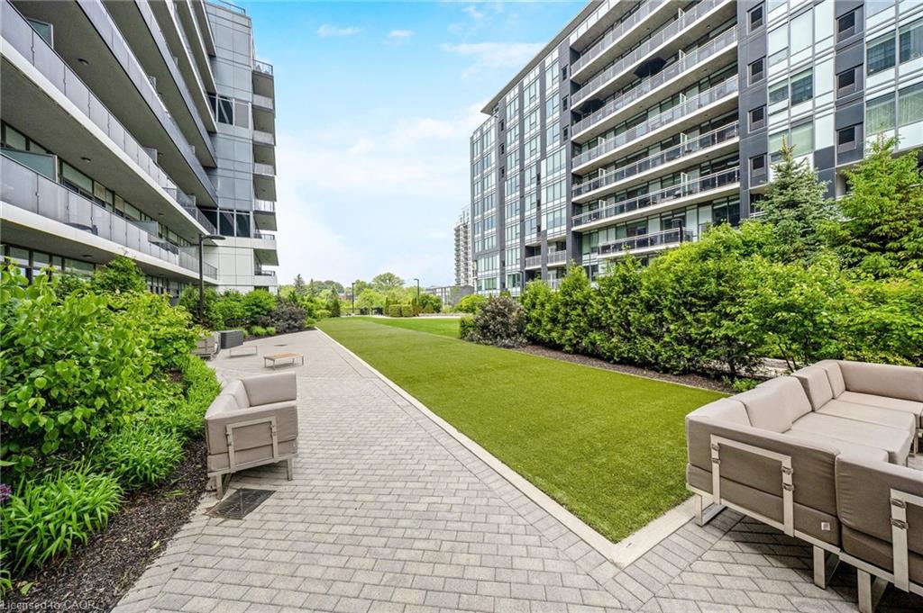 Stunning 2 bdrm & 2 bth, 1040sf condo w a massive balcony adding 195sf of outdoor pleasure. Located on the Mezzanine level (2nd floor) this unit has expansive views of the thoughtfully designed Metalworks-Copper Club ext common space. BBQ stations, outdoor lounge & dining areas, artificial grass games area for Bocce or other games & an outdoor gas fire pit, complete w Adirondack chairs! The expansive foyer graciously welcomes you into this breathtaking unit! A rarely offered super functional layout with soaring 9.5-10.5 foot ceilings, oversized int doors, custom blinds, upgd cabinetry, upgd fixtures, upgd baseboard and trim work, quartz countertops, textured oversized subway tile bksplsh, 12″X24″flr tiles& luxury vinyl laminate floors. Int was professionally designed to elevate your living experience! The Primary bedroom has both a generous sized walk-in & dbl closet which leads to the spa-inspired 3 pc ensuite. A sliding door leads you from the Primary to the apprx 30′ long balcony where you can enjoy 3 season entertaining. The balcony is surrounded by shrubbery & plantings to provide you with ultimate privacy. The 2nd bdrm (orden) on the opposite side of the condo affords you or your guests privacy & is adjacent to the main 4 pc bath. This bdrm/den has an oversized window, custom blinds & dbl closet. The Copper Club has exec townhouse units that face the Speed River & this unit abuts these high-end, multileveled towns offering a view to the river, the downtown core and a more peaceful location within the complex! This unit has an owned parking space & an owned storage locker. There is bldg bike storage in the garage level. The amenities in the Metalworks Copper Club are second to none…Library, Games Area, the Speakeasy concealed beyond an unmarked door, WIFI Lounge, Fireside Lounge, Dog Wash, Guest Suite! All of this & only a short walk to parks, restaurants, downtown Guelph the Sleeman’s Centre & more. A standout residence not to be missed!