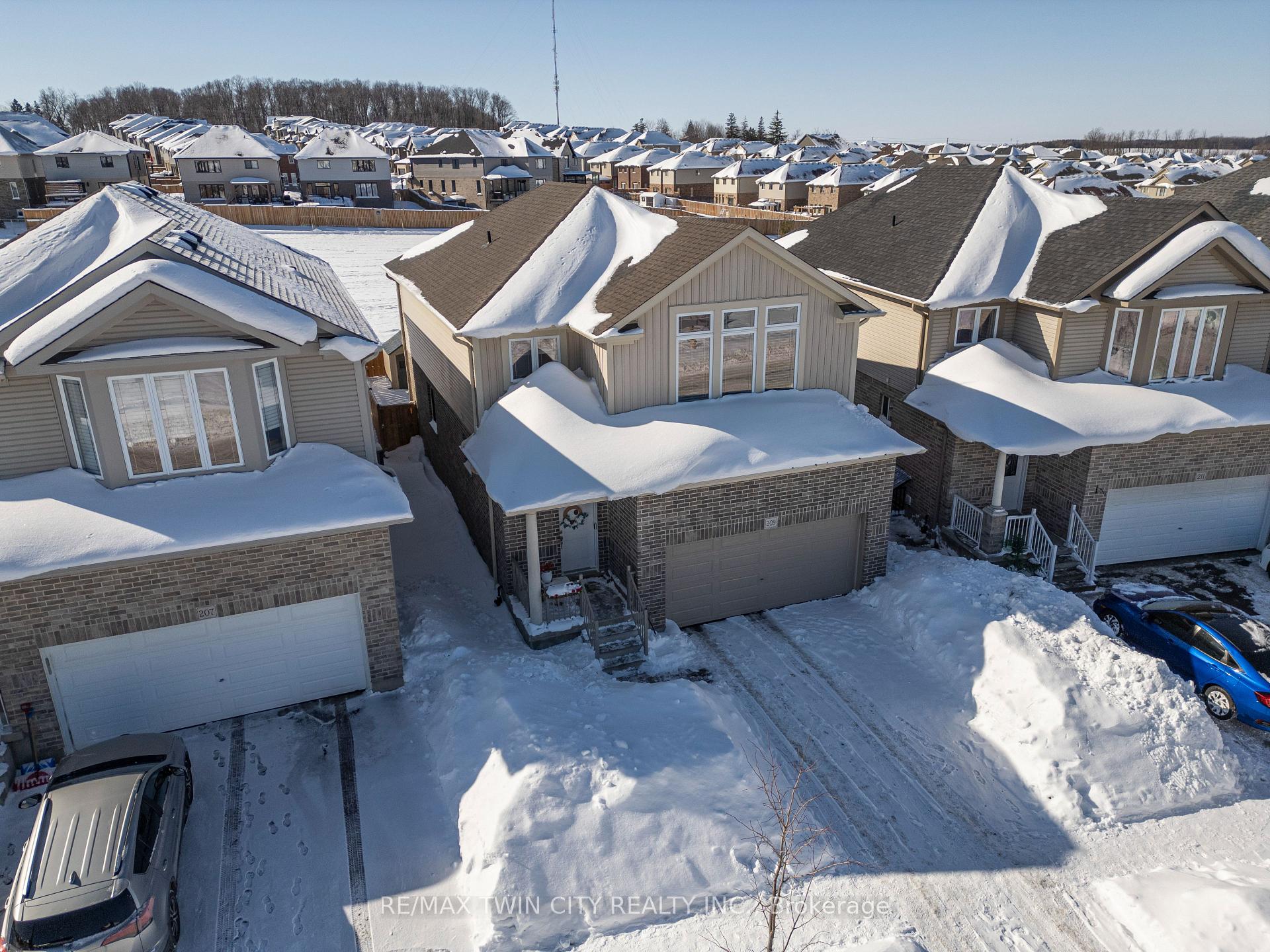 Welcome to 209 Ladyslipper Dr, Waterloo, a stunning, 8-year-old home nestled in the desirable Vista Hills Community. Perfect for families, this beautiful 3-bedroom, 2.5-bathroom home with a double-car garage and double car driveway combines space, comfort, and style. Step inside to a bright and inviting main floor, completely carpet-free, featuring a solid wood staircase leading to the second floor. The modern kitchen is a chef’s dream, offering plenty of counter space, a breakfast bar, and new quartz countertops installed in 2024 across the kitchen and all bathrooms. Enjoy cooking while keeping an eye on the backyard, which backs onto a premium greenbelt lot-no rear neighbors-and provides direct access to a nearby park and school, perfect for kids and pets. The spacious upper family room boasts soaring cathedral ceilings & recessed creating a cozy yet open space for family gatherings or quiet evenings together. Located just steps from Vista Hills Public School and with convenient school bus access to Laurel Heights Secondary School, this home makes family life easy. Plus, you’re close to Costco, the Boardwalk Shopping Center, and both Universities, offering everything you need within minutes. This home truly shows beautifully and is ready for its next family to make memories here. Don’t miss it!