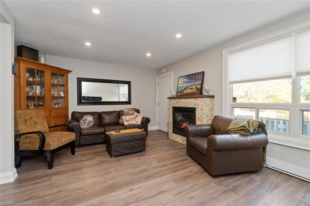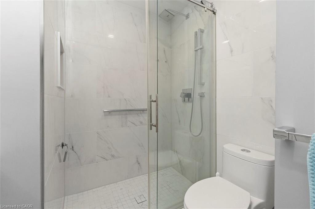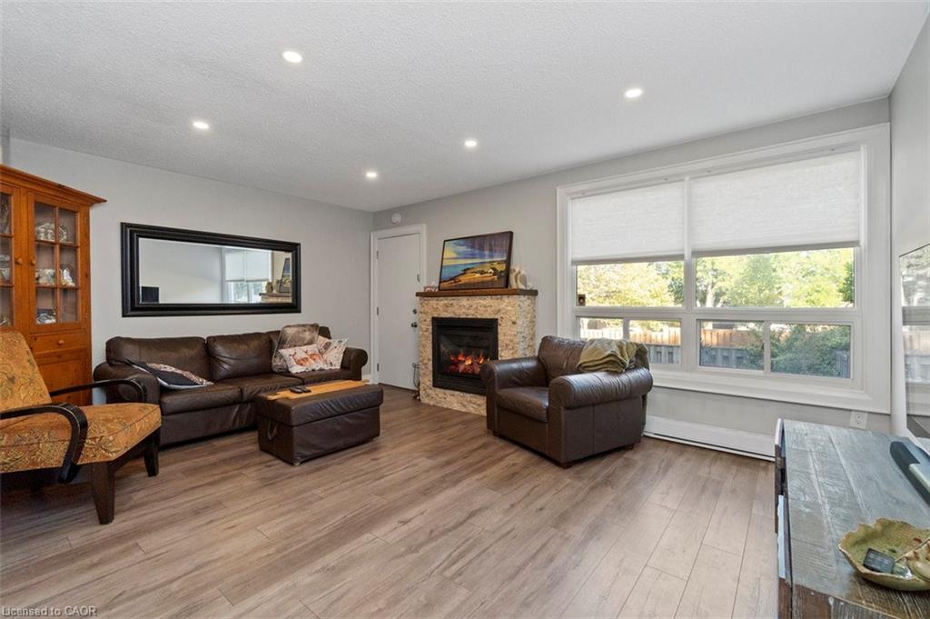 fireplace, and a large window that fills the space with natural light. From here, step out to your private backyard – perfect for relaxing or entertaining. Upstairs, the spacious principal bedroom offers two large closets and lots of natural light. The second bedroom is equally bright with a double closet and plenty of room to grow. You’ll also find a modern, fully renovated 3-piece bathroom featuring a large glass shower, heated floors, and a sleek vanity with a quartz countertop. The fully finished basement provides direct access to the garage, a laundry area, and a versatile third bedroom – ideal for a guest suite, home office, or kids’ playroom. This is a welcoming community with easy access to the 403 and Lincoln Alexander Parkway, plus nearby parks, shopping, and schools. Don’t miss your chance to make this home yours – welcome to West Mountain living!