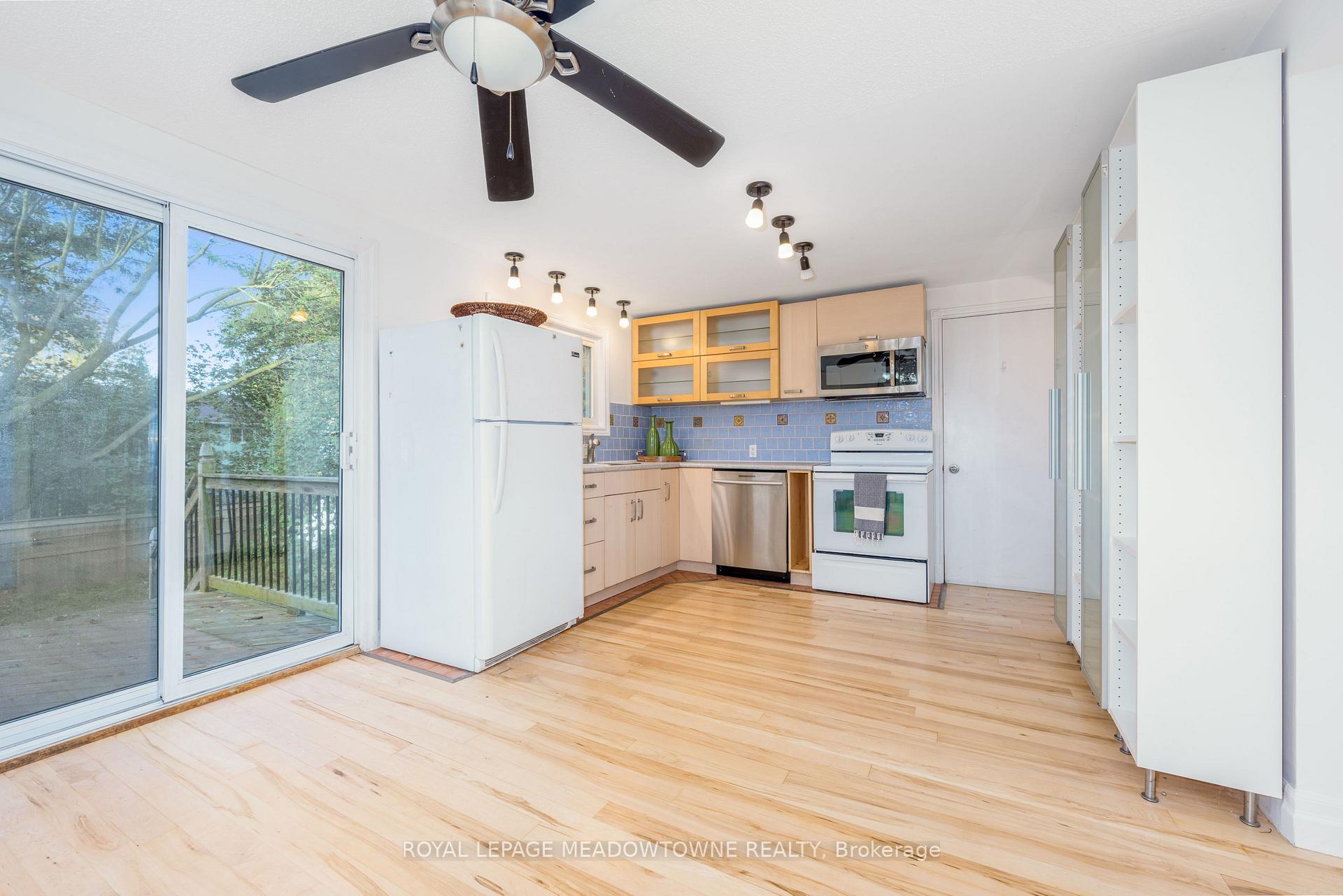 Opportunity knocks with this spacious 4+1 bedroom, 2 bathroom detached home! Offering parking for three with a single-car garage and double driveway, this home provides both comfort and functionality. Step inside to a large welcoming foyer with a closet and shelving for storage. Throughout the main and upper levels, you’ll find gleaming maple hardwood floors. The kitchen offers garage access, a walk-out to the fully fenced backyard, and ample cabinetry and shelving. It overlooks the open-concept living and dining areas, complete with a cozy fireplace and a large picture window with views of the yard – perfect for everyday living and entertaining. The main floor bedroom is bright and spacious, featuring hardwood flooring and a large window. Upstairs, youll find three additional bedrooms and a 4-piece bathroom. Two of the bedrooms are exceptionally generous in size, each with large closets and charming dormer windows ideal for multi-use setups like a bedroom and study area. The third bedroom is bright with a large window and closet. The updated bathroom offers an oversized vanity with granite counter, under-mount sink, and a tub/shower combo. The finished basement is a legal apartment, accessed through a fire-rated door and provides an egress window, making it perfect for rental income, extended family, or multi-generational living. It includes its own kitchen, a 3-piece bathroom, living/rec room, and separate bedroom. Enjoy the fully fenced backyard with plenty of space to relax or play. Conveniently located near public transit, hopping, restaurants, parks, Hwy 6 and walking distance to the University of Guelph. A fantastic opportunity for investors, first-time buyers, or families looking for flexible living options!