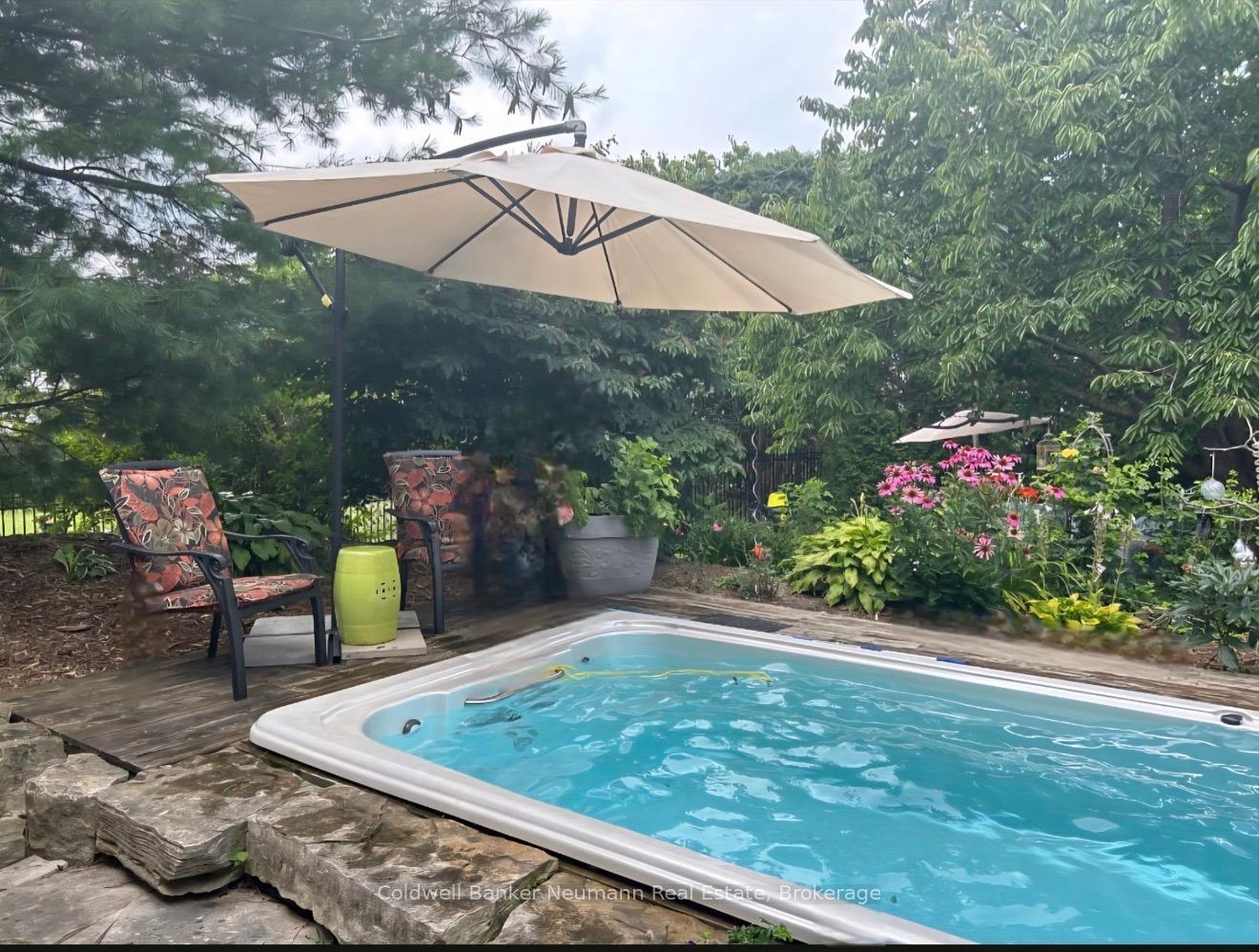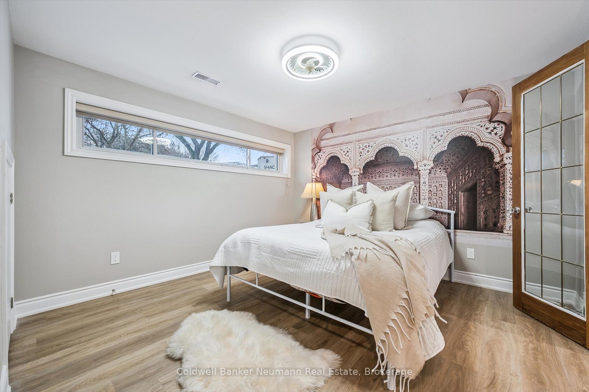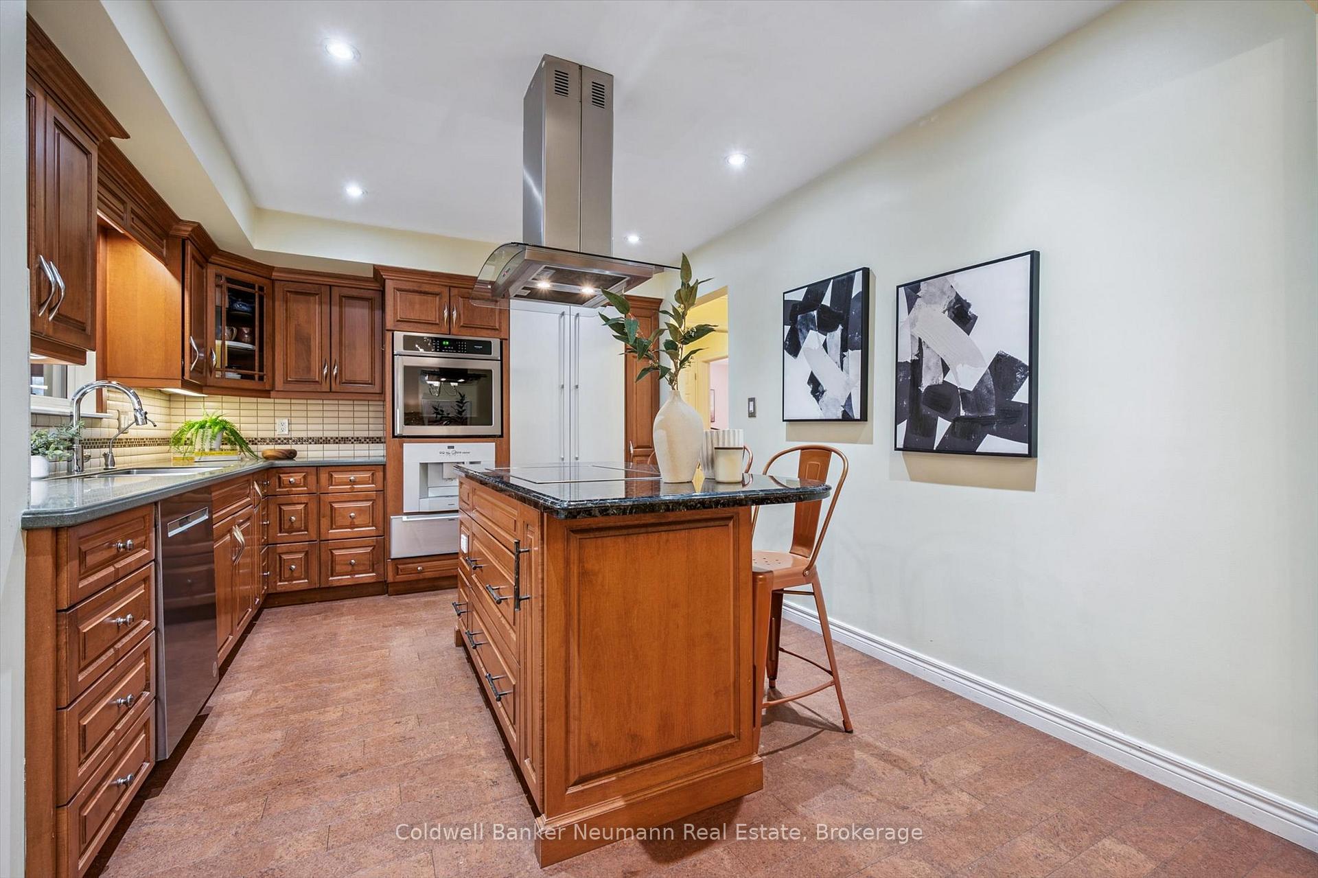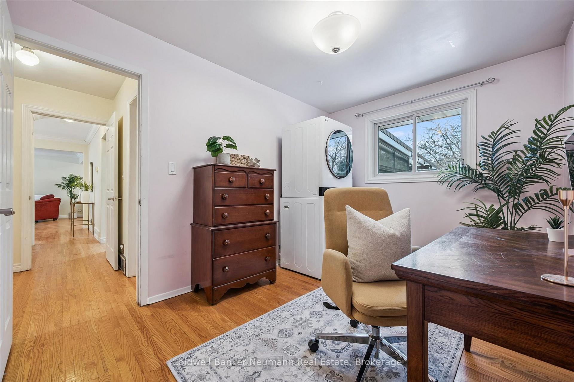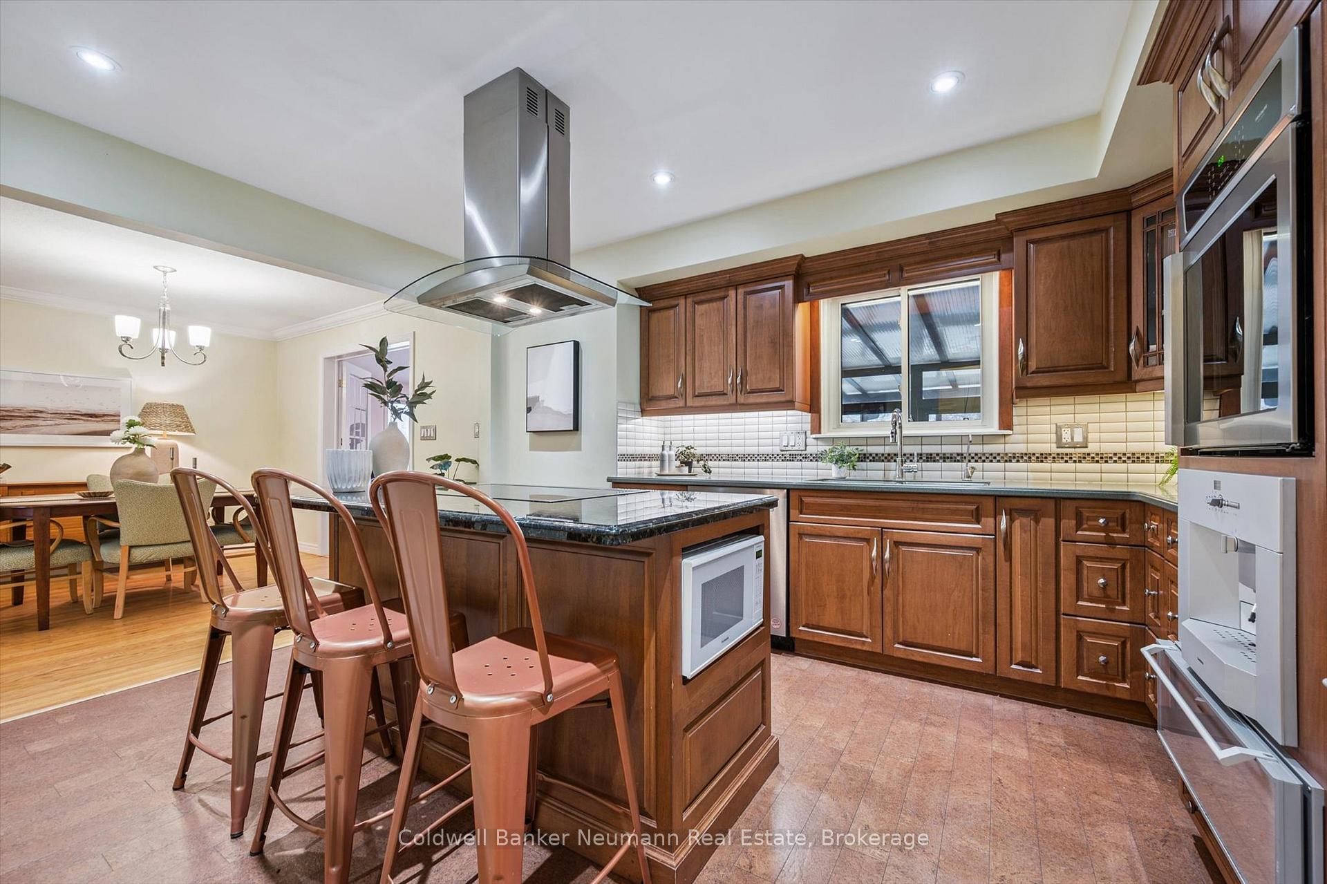 Set on an exceptionally rare 0.58-acre pie-shaped lot in the highly sought-after Old University, this spacious raised bungalow offers privacy and versatility in an unbeatable location. The main level features 3 bedrooms and 1.5 bathrooms, filled with natural light and designed with an open, functional layout. There is no carpet throughout, and the impressive kitchen is complete with corian countertops, built-in appliances, an island with a granite counter, and excellent workspace. A substantial addition with vaulted ceilings extends the living area and is ideal for entertaining, or easily adaptable as an additional bedroom, office, home gym, or playroom. From here, walk out into a large three-season sunroom and covered patio overlooking this outstanding yard. The fully finished basement includes a legal, registered one-bedroom apartment (built in 2022) with a separate entrance from the backyard. Bright and welcoming with large windows, this suite offers a beautiful kitchen with pantry and ample drawers, fireplace, generous closet space, a den suitable for office or storage, and luxury vinyl flooring. The basement also provides convenient walk-up access to the garage. The backyard is truly one of a kind, private, fully fenced, and expansive, featuring a swim spa, large deck, flagstone patio, and covered seating area. It’s an extraordinary outdoor retreat rarely found in an urban setting. Additional highlights include an instant hot water tank, central air conditioning, single car garage, aggregate concrete driveway and close proximity to schools, transit, shopping, restaurants, parks, groceries, the market, the GO Station, and easy access to Highway 6 and the 401. All appliances are included. Located on this quiet, mature and family friendly street, this property backs directly onto the Royal Recreational Trail and Moe Hill. It delivers a true cottage-like setting within the city. A must see!