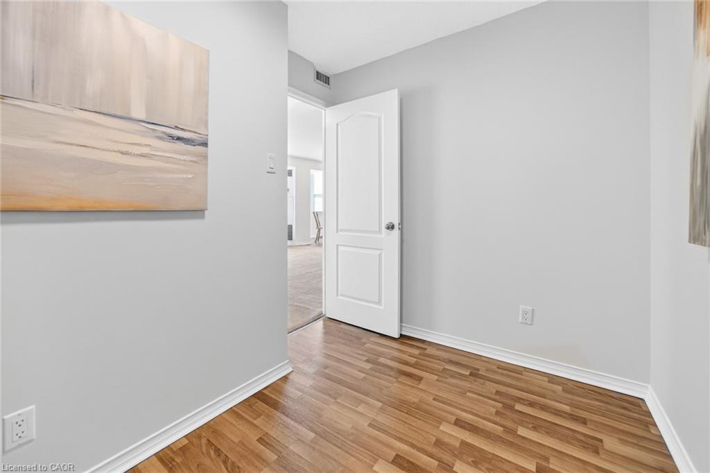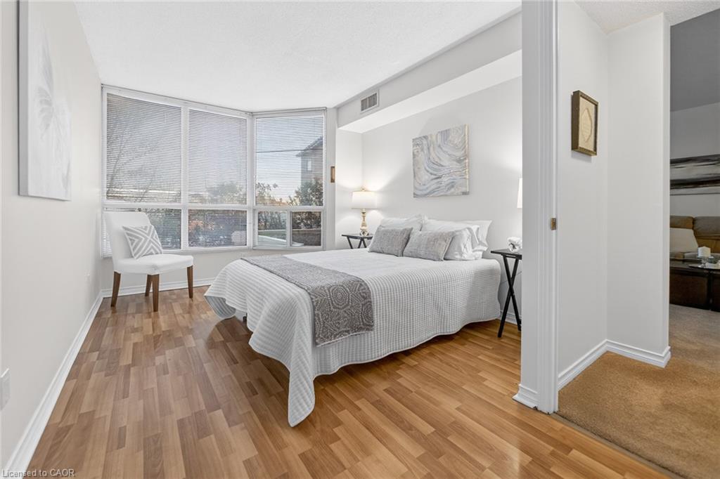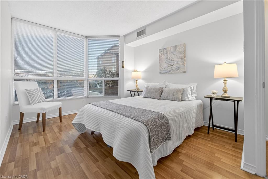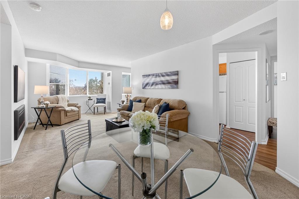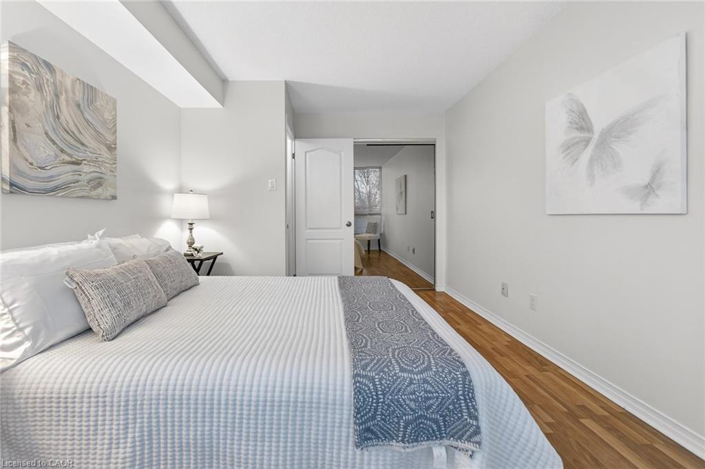 Welcome to ‘Village Parc on the Pond’ at 100 Millside Drive, Suite 210. This 2 bedroom + den condo unit is located just steps away from the charming downtown Main Street of Milton where you will find exquisite shopping & restaurants. Directly across from the tranquil Mill Pond and Rotary Park. Enjoy morning strolls along scenic trails or afternoon picnics by the water. The unit has been freshly painted throughout in a neutral designer colour just waiting for you to add your style. With a south facing exposure, the space is bright and airy throughout the day. An eat-in kitchen has spacious counter tops, double sink, new dishwasher and stove. Stacked laundry is neatly tucked away in a closet. Make your way from the foyer to the private primary suite with enough room for a king bed, side tables and dressers. Closets line the short hall leading to your 4-pc ensuite. Storage is not an issue here with a large in-suite storage room that could be a +1 used for a home office or hobby room. Electrical has been upgraded to Decora switches and outlets to modernize the space. Utilities such as Heat, Hydro, Water, A/C, and TV/Internet are included in the condo fees. The building offers an expanse of amenities such as: Bike Storage, Car Wash, Exercise Room, Guest Suites, Indoor Pool, Party Room, Sauna, Visitor Parking.