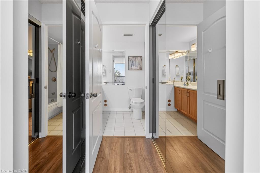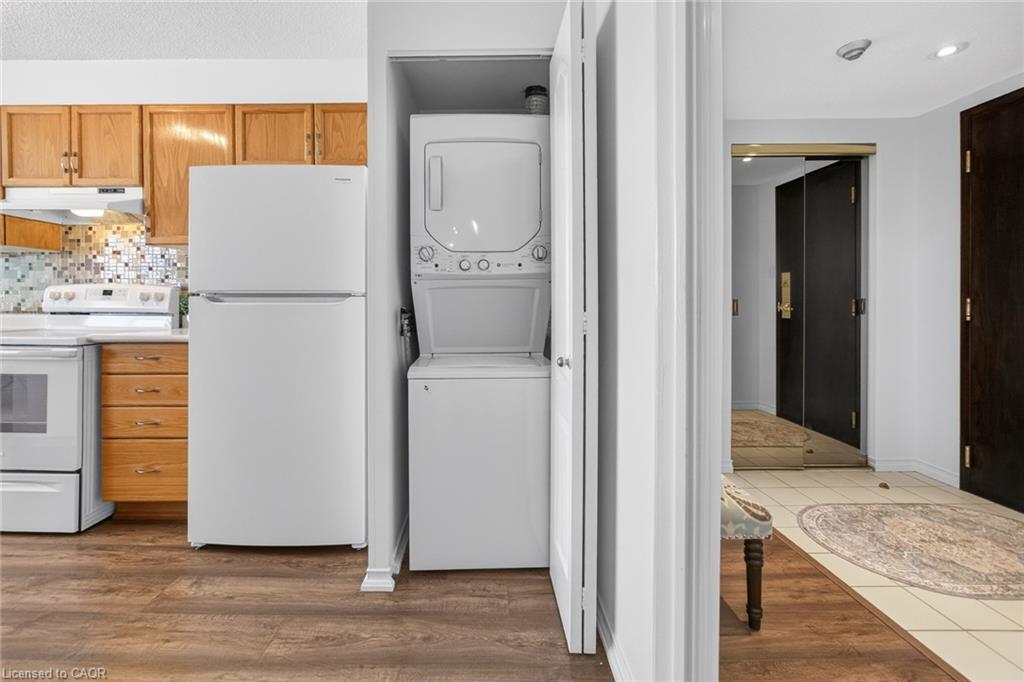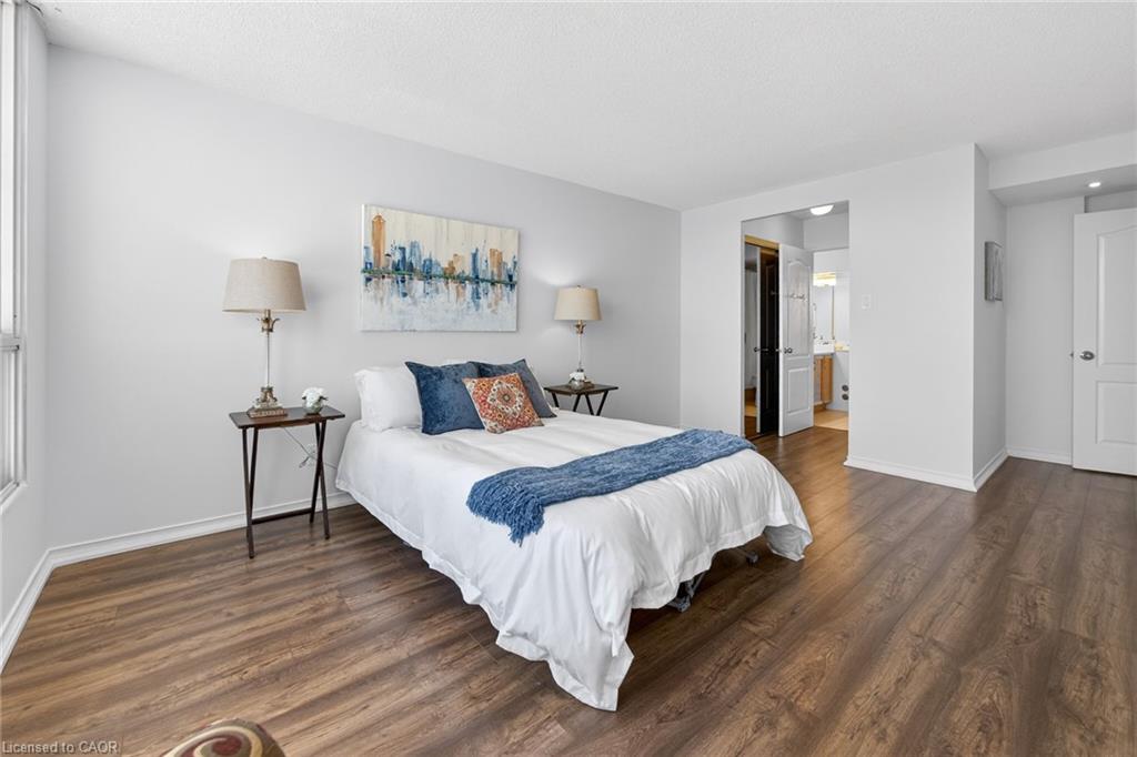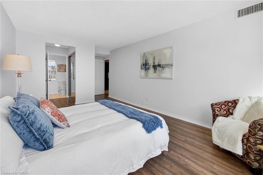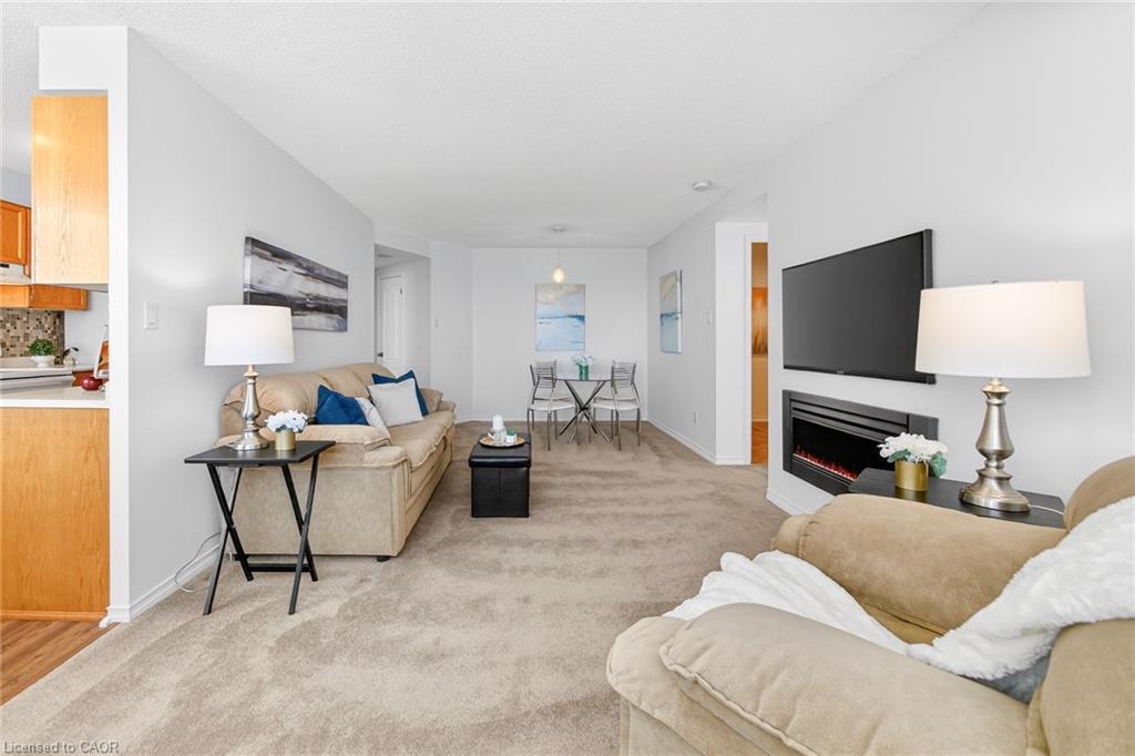 Welcome to ‘Village Parc on the Pond’ at 100 Millside Drive, Suite 210. This 2 bedroom + den condo unit is located just steps away from the charming downtown Main Street of Milton where you will find exquisite shopping & restaurants. Directly across from the tranquil Mill Pond and Rotary Park. Enjoy morning strolls along scenic trails or afternoon picnics by the water. The unit has been freshly painted throughout in a neutral designer colour just waiting for you to add your style. With a south facing exposure, the space is bright and airy throughout the day. An eat-in kitchen has spacious counter tops, double sink, new dishwasher and stove. Stacked laundry is neatly tucked away in a closet. Make your way from the foyer to the private primary suite with enough room for a king bed, side tables and dressers. Closets line the short hall leading to your 4-pc ensuite. Storage is not an issue here with a large in-suite storage room that could be a +1 used for a home office or hobby room. Electrical has been upgraded to Decora switches and outlets to modernize the space. Utilities such as Heat, Hydro, Water, A/C, and TV/Internet are included in the condo fees. The building offers an expanse of amenities such as: Bike Storage, Car Wash, Exercise Room, Guest Suites, Indoor Pool, Party Room, Sauna, Visitor Parking.