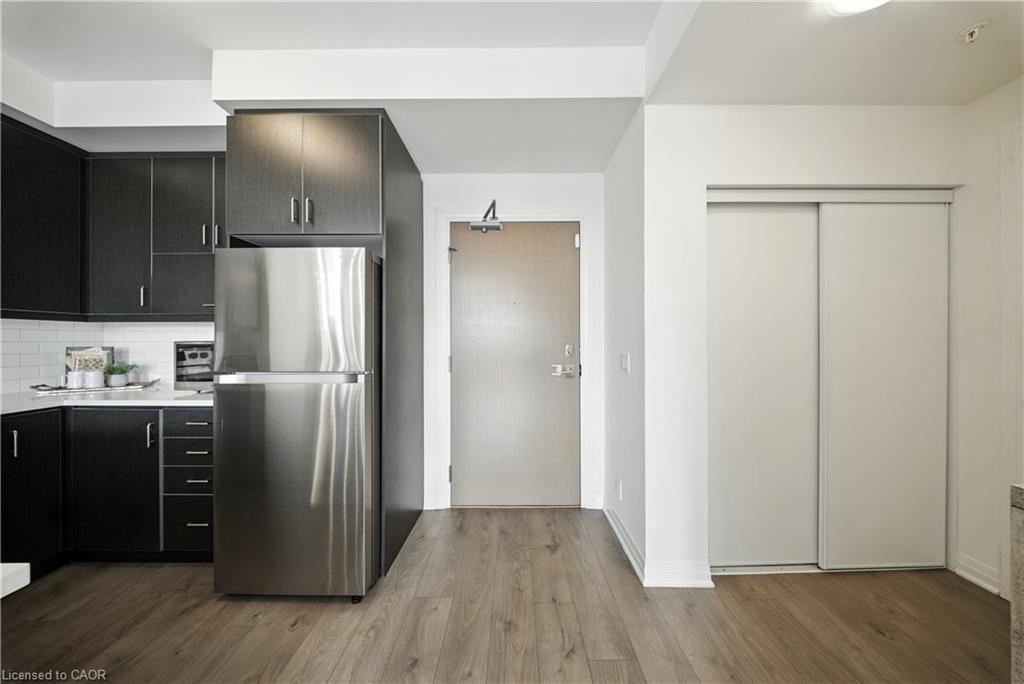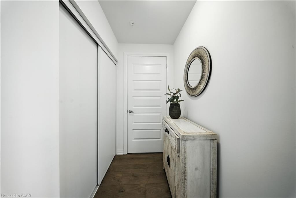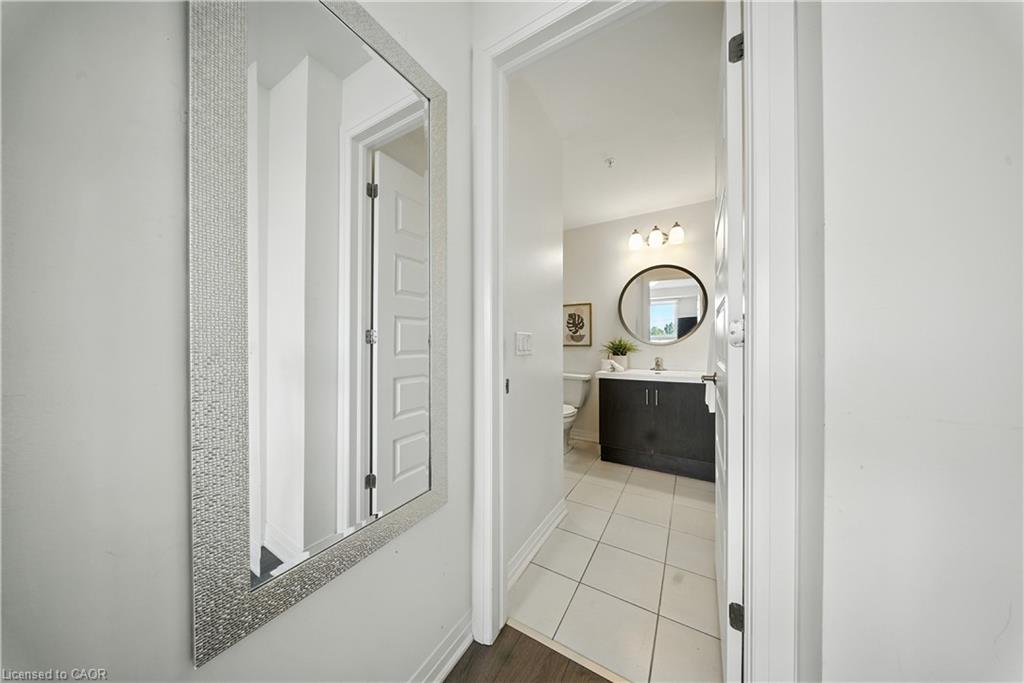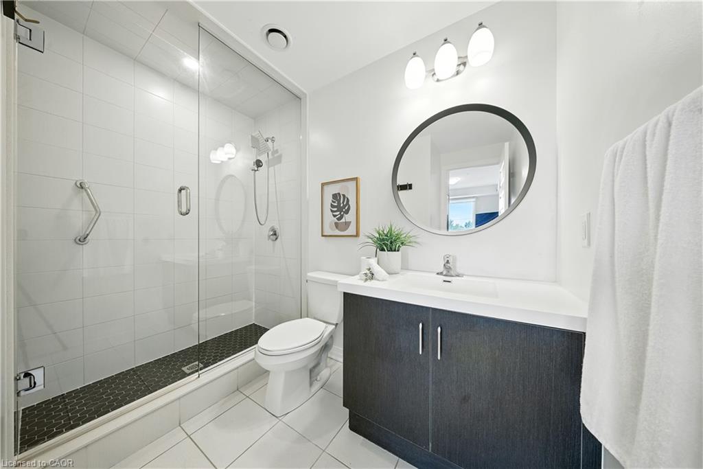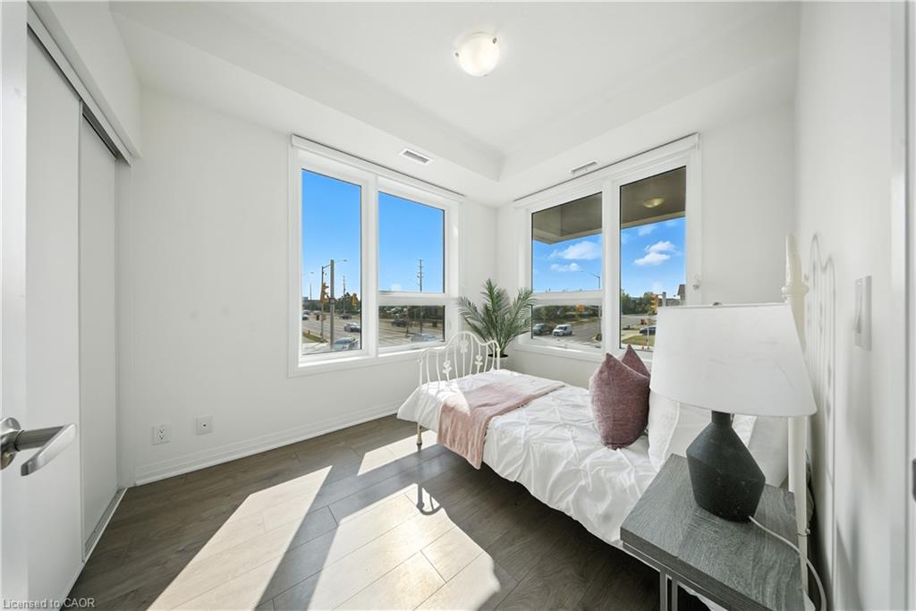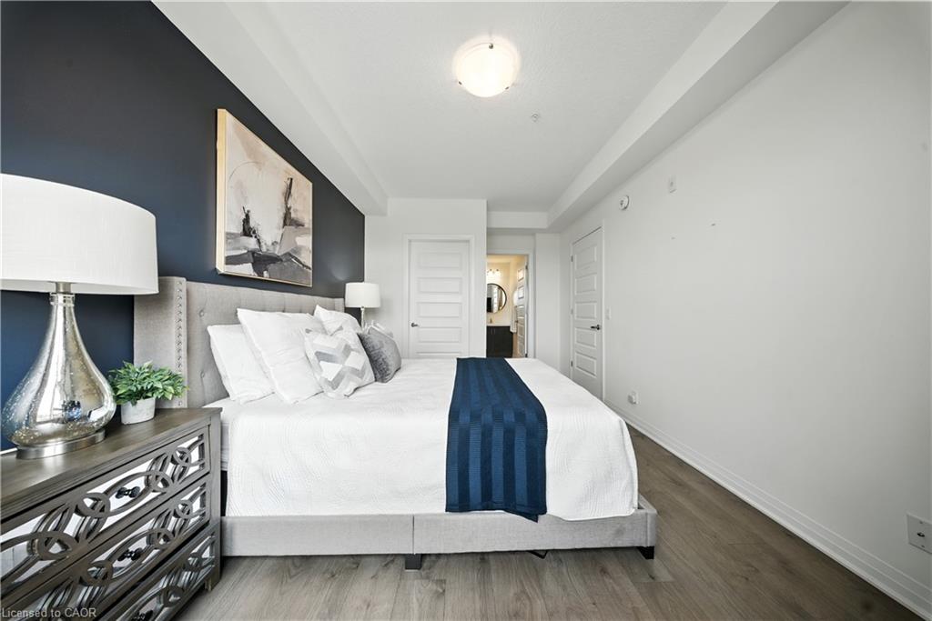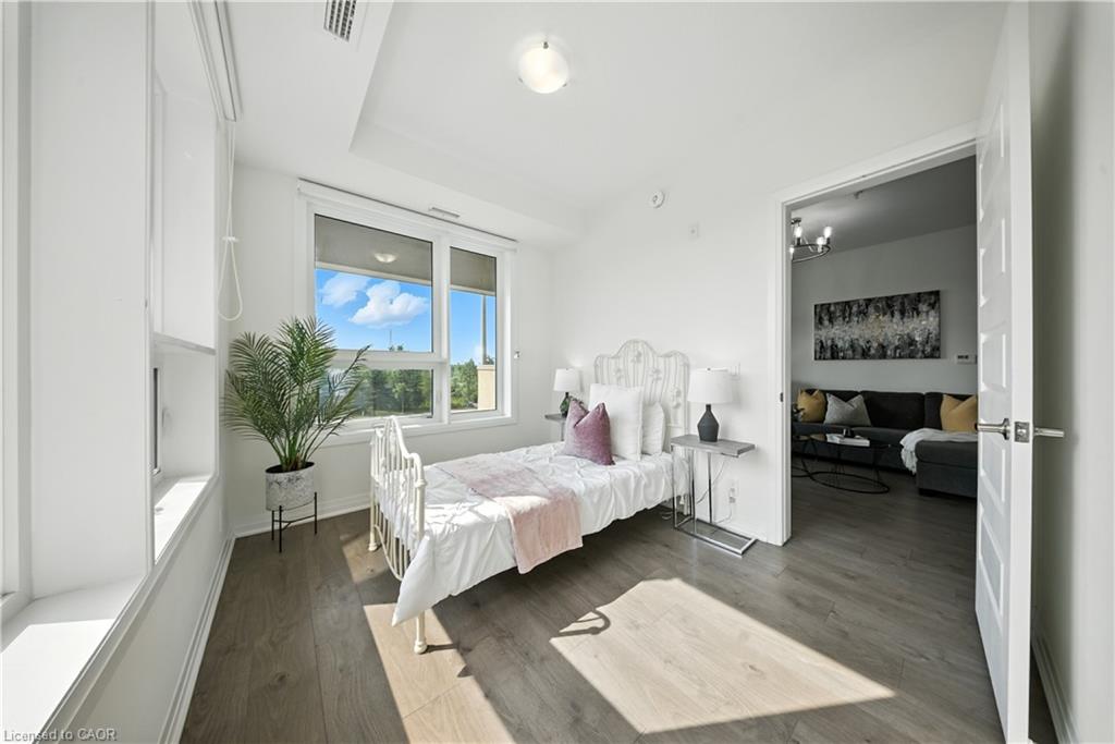 Stylish & sun-filled 2 bed, 2 bath condo in the highly desirable Ford neighbourhood of Milton! This open-concept unit features high ceilings, large windows, and floor-to-ceiling patio doors that flood the space with natural light. Enjoy upgraded wide plank flooring, quartz countertops, stainless steel appliances, tile backsplash, and a breakfast bar. Primary suite includes a walk-in closet and upgraded ensuite with a super shower. Includes owned underground parking & locker on same level. Overlooks a peaceful pond with escarpment views. Steps to shops, schools, transit & highways. Turn-key living at its best!