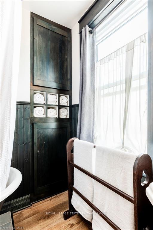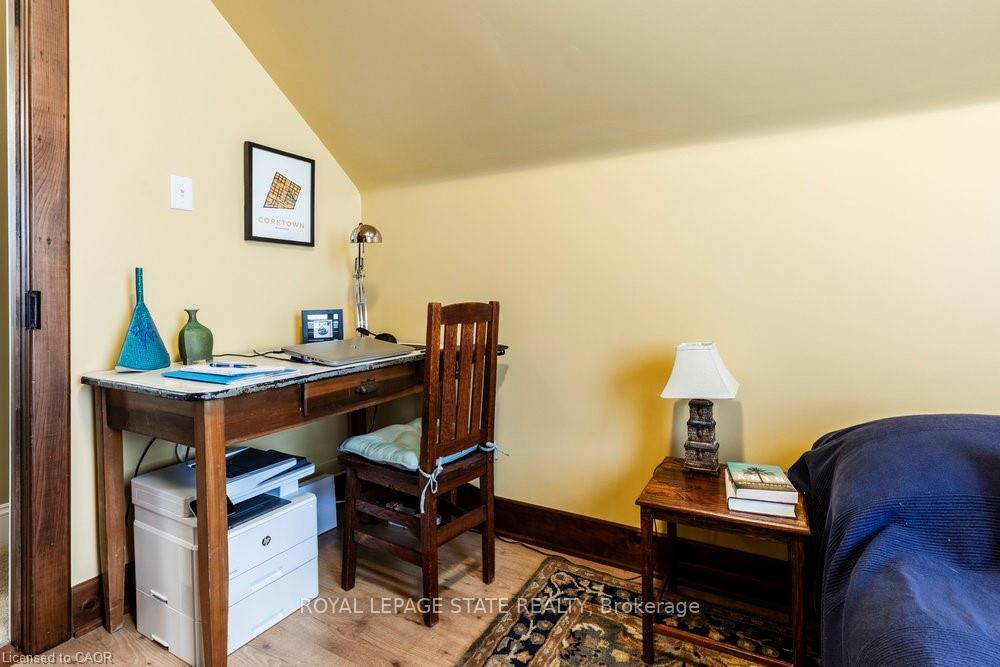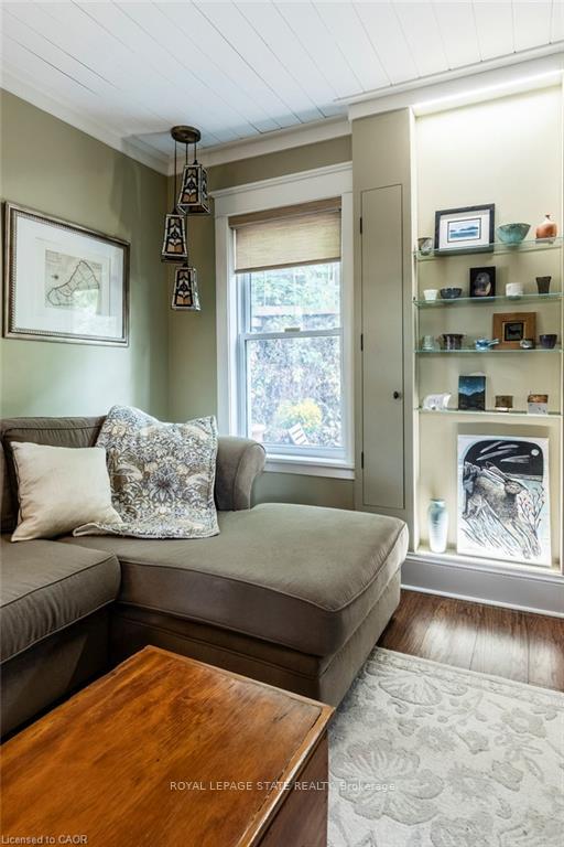 Outstanding transformation inside & out with no stone left unturned! Tucked away at the base of theescarpment, this thoughtfully renovated 2-storey, 2-bedroom, 1-bath home is full of character, creativity,and modern convenience. From its clever storage solutions to its private “secret garden” patio, every detail has been carefully designed to make the most of both space and style. Step inside to discover an updated kitchen that’s as functional as it is beautiful, featuring built-in banquette seating with custom cushions(and hidden storage!), a pull-out butcher block for added prep space, subway tile backsplash, and generous cabinetry. The living room offers a walkout to a stunning interlock and flagstone patio – a private oasisperfect for morning coffee or evening gatherings – w/ built-ins & glass display shelves to add ambianceand charm. Upstairs, the primary bedroom delights with a hidden “secret closet” concealed behind abookshelf, while the elegant 4-piece bathroom features a classic clawfoot tub and pedestal sink for a touchof vintage luxury. Additional highlights include two-car private parking – a rare and valuable find – and aunique sense of privacy and tranquility. This one-of-a-kind home offers the perfect blend of historiccharm, smart updates, and whimsical details. This Corktown gem is steps to St. Jo’s, the GO & amenities.A must-see for those seeking something truly special.