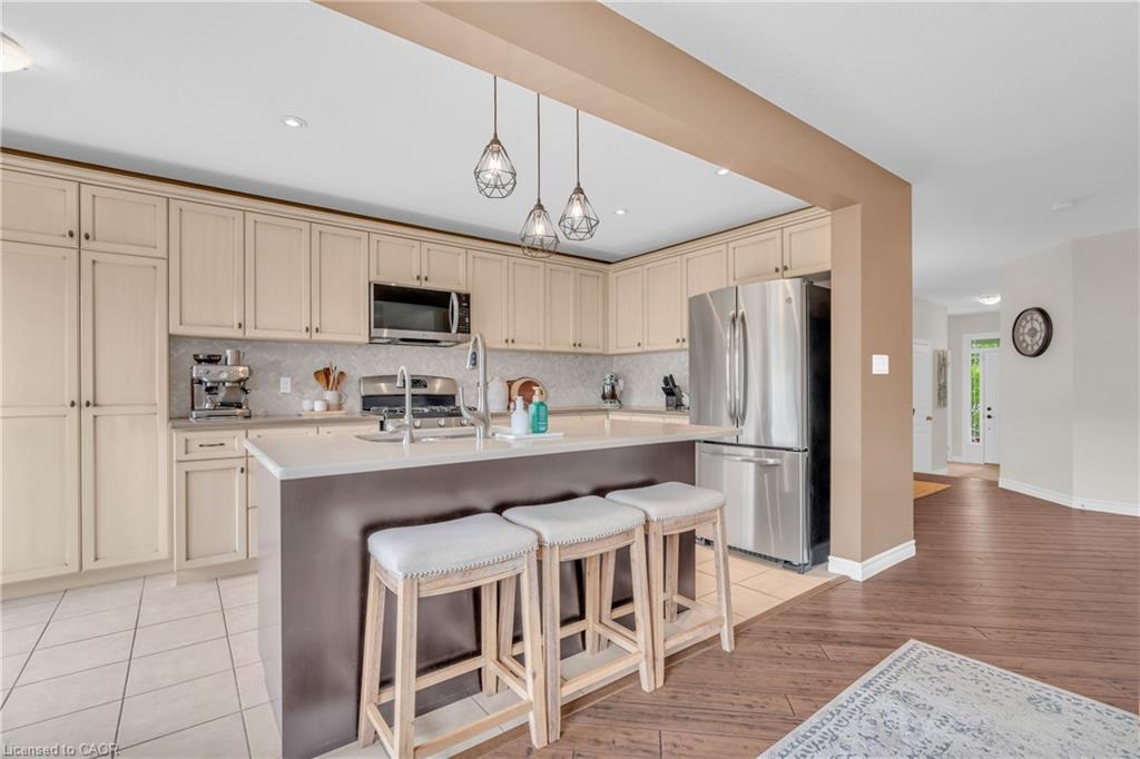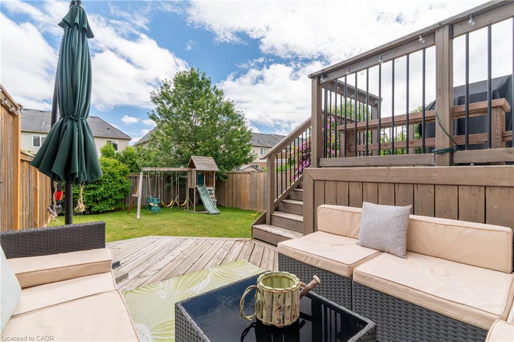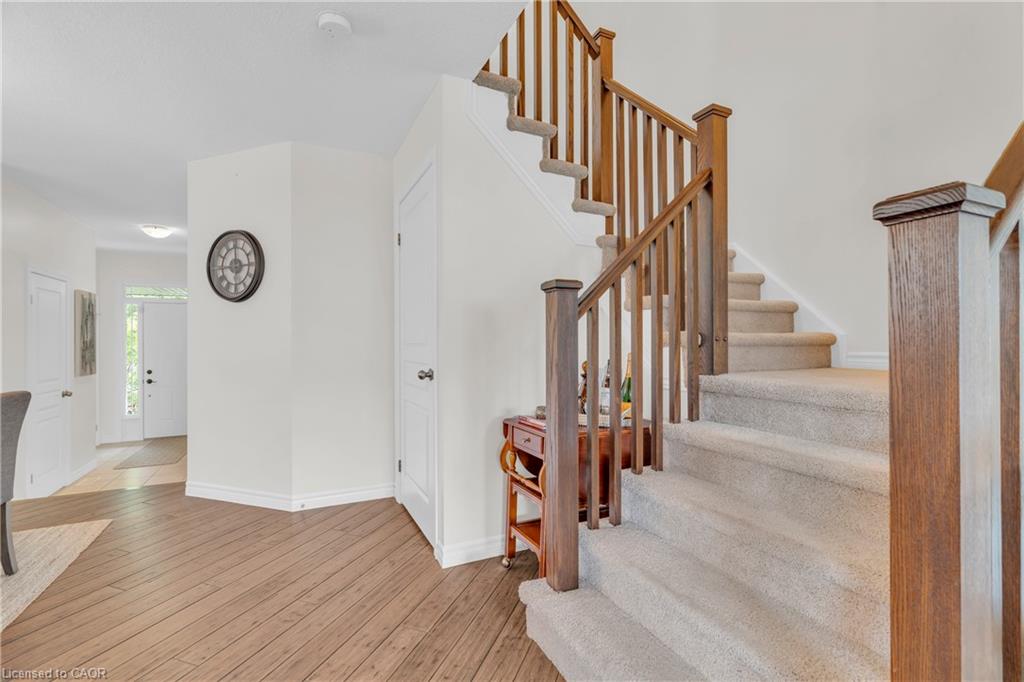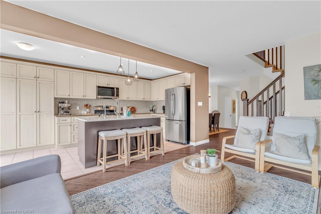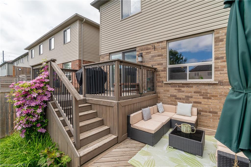 Welcome to 210 Couling Crescent, a beautifully upgraded semi-detached home located in Guelphs desirable East End. Offering over 1,700 sq ft of above-grade living space, this 3-bedroom, 2.5-bathroom home features thoughtful updates throughout, including a new furnace (2024), AC unit (2025), water softener, and an over-the-range microwave (2025). Each bedroom includes a walk-in closet, with the primary bedroom featuring upgraded built-in organizers for added convenience and style. The home is equipped with a gas line for BBQs and showcases premium builder upgrades such as diagonal walnut hardwood flooring and an extra window in the dining room that fills the space with natural light. The professionally landscaped yard offers great outdoor living with a two-tier deck and built-in storage underneath, perfect for entertaining or relaxing. Located close to Eastview Park, which features a new bike park, splash pad, soccer fields, and more. Families will appreciate the excellent nearby school options, including public, Catholic, and French immersion.