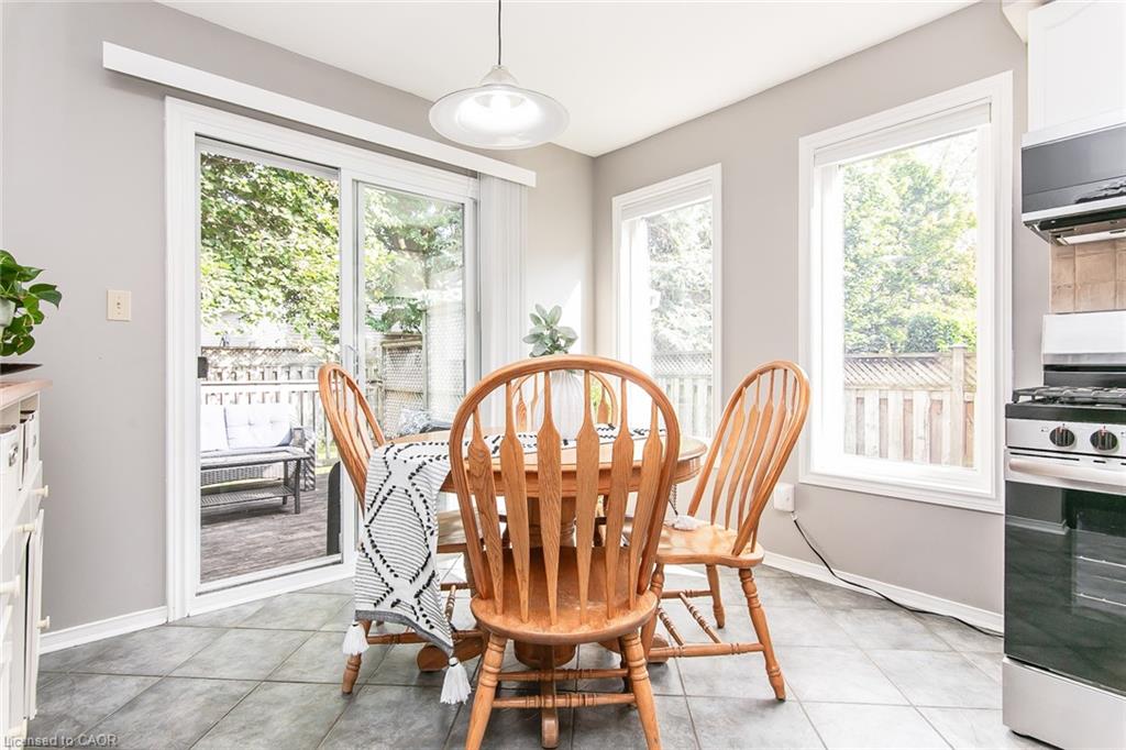 The sunny kitchen is the heart of the home, with plenty of windows that flood the space with natural light. Here, you’ll find ample cupboard space for all your essentials plus a convenient dinette.