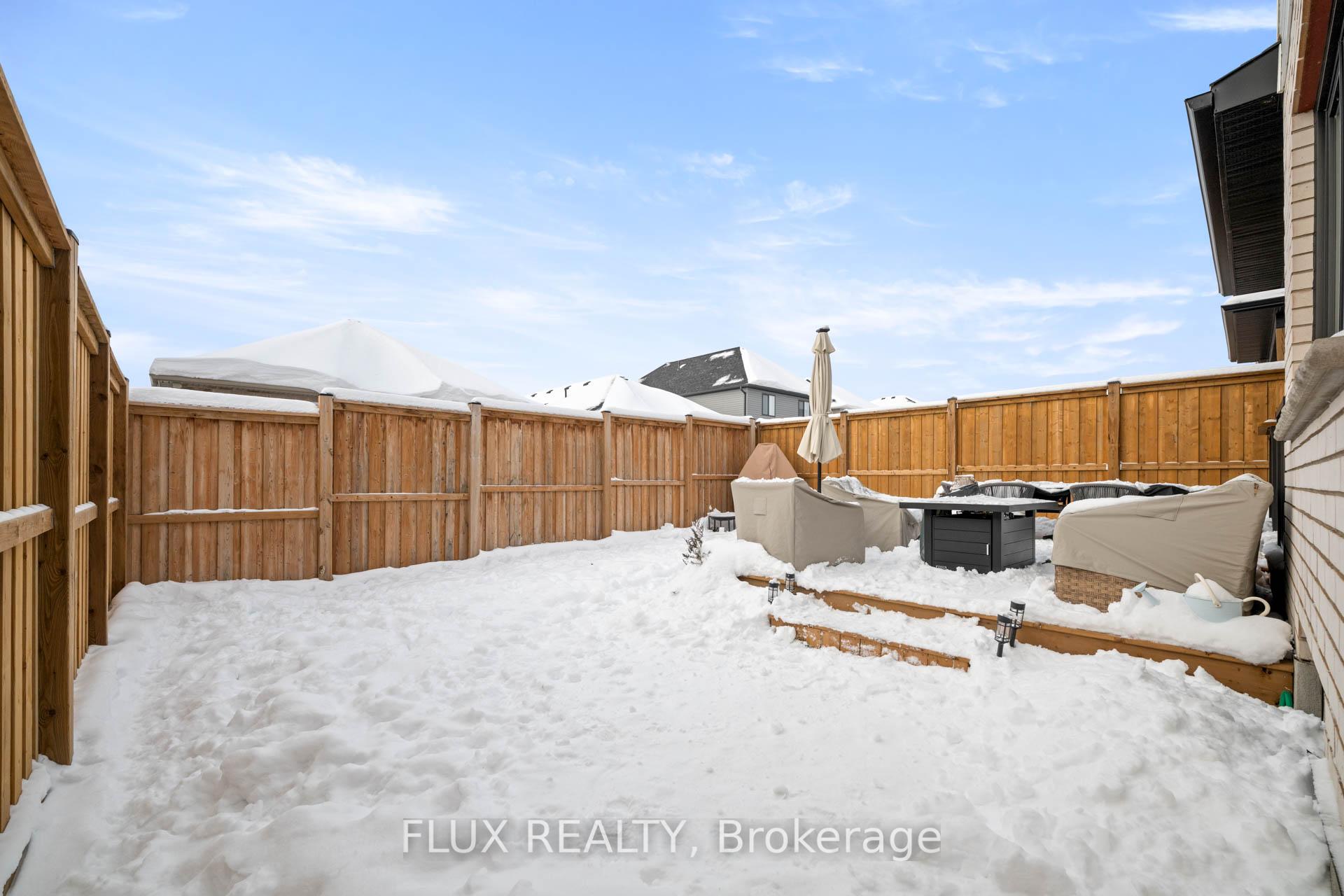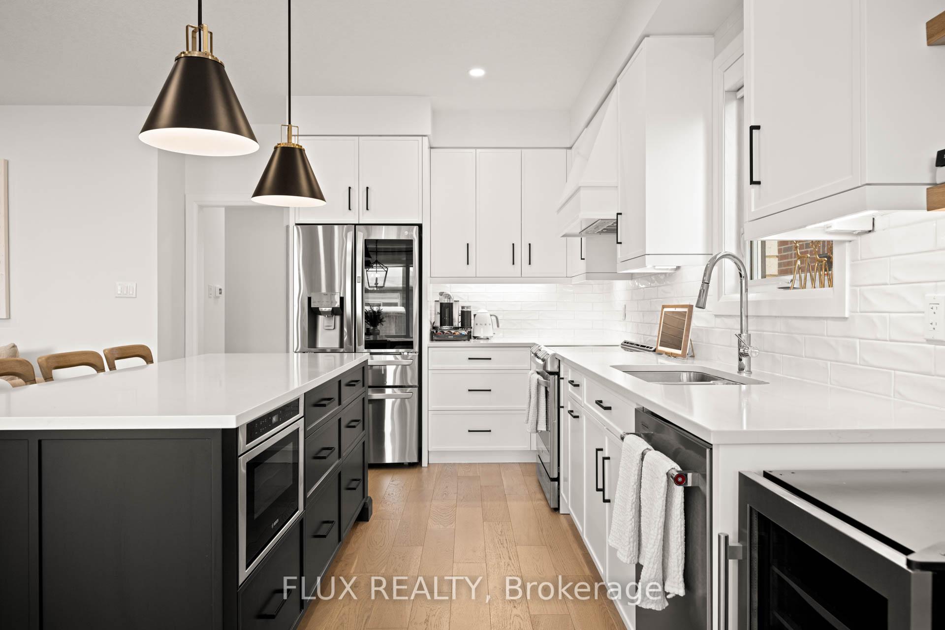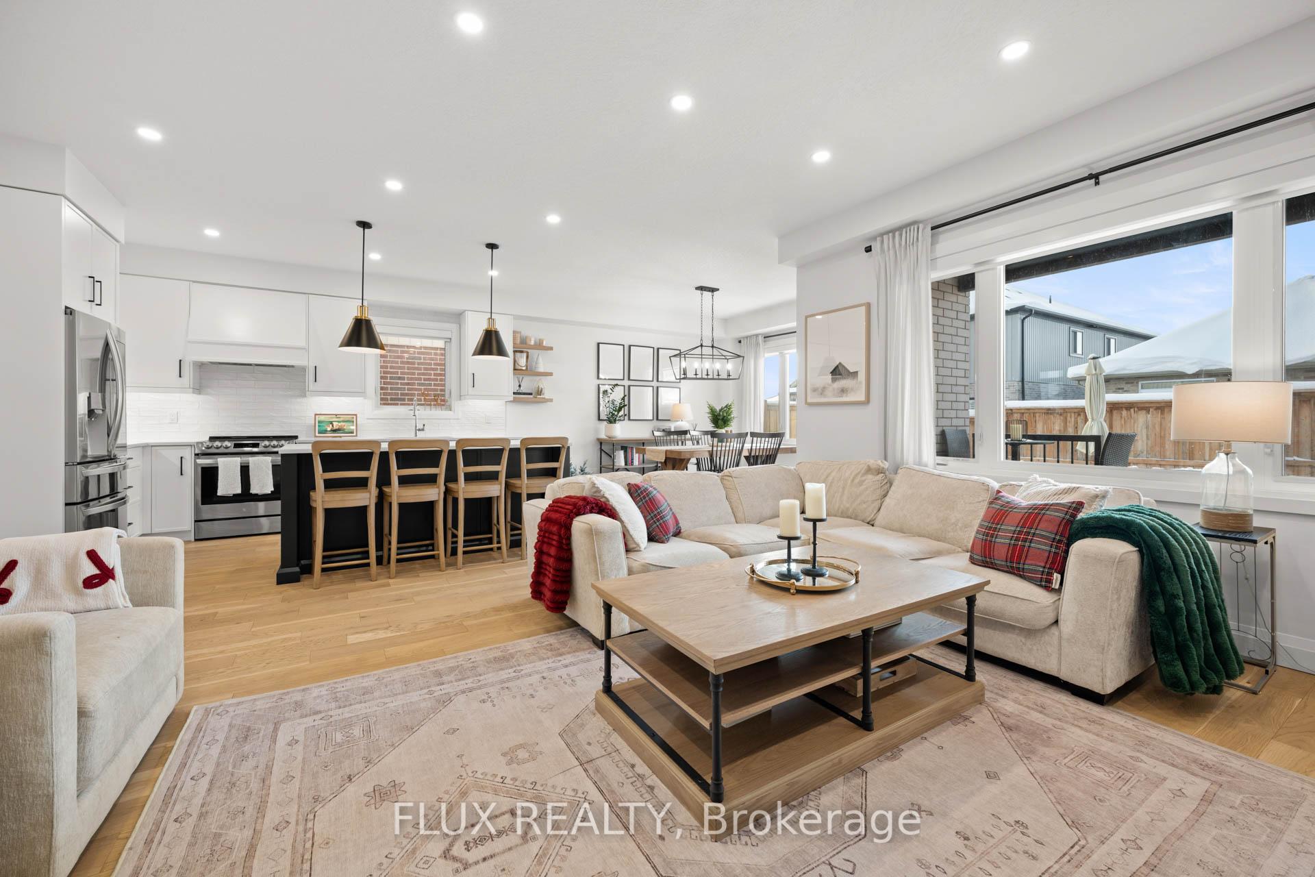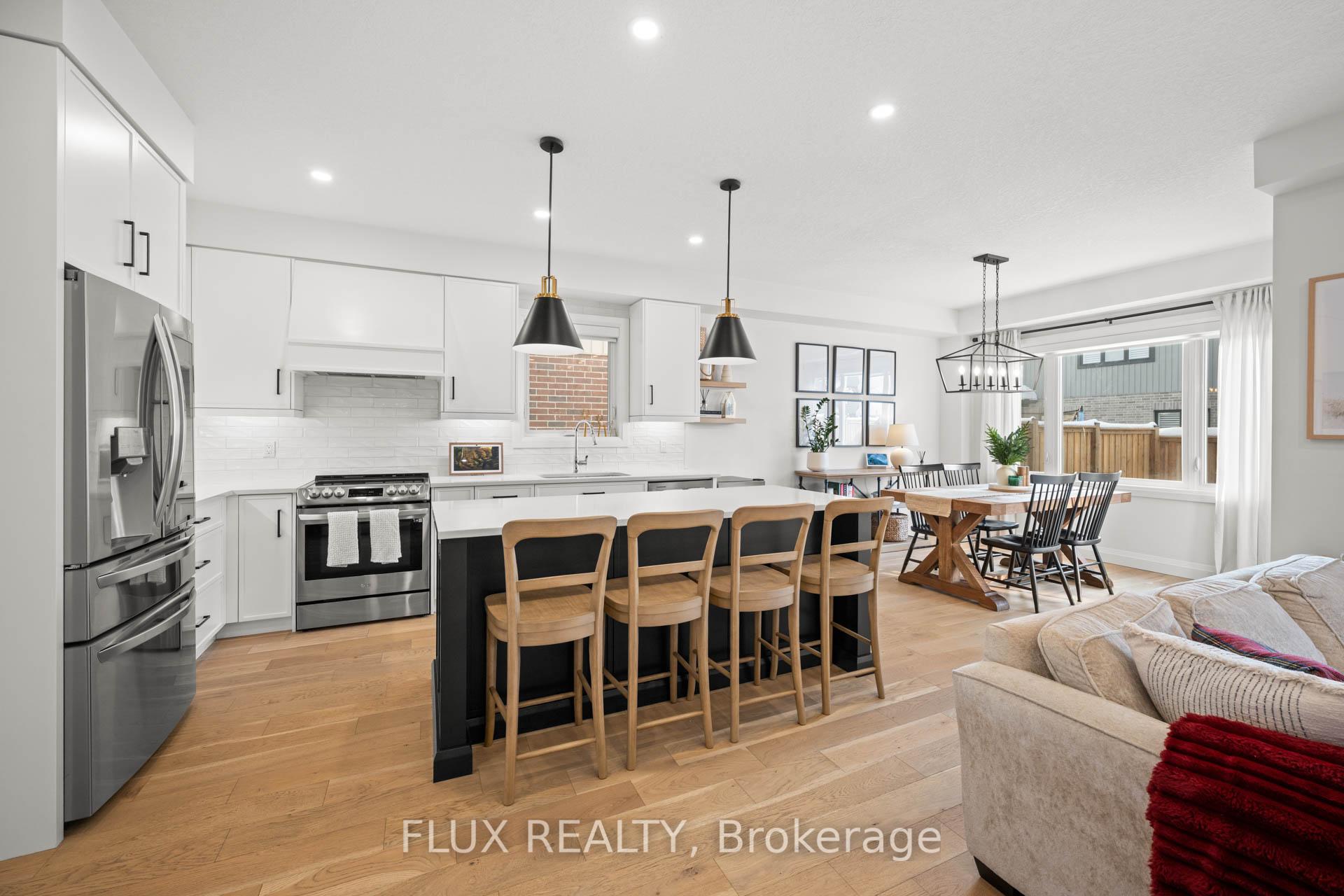 Welcome to this beautifully finished Montgomery Homes residence in the desirable Southwood Park community of Elmira. This thoughtfully upgraded 4-bedroom, 3-bath home offers over 2,200 sq. ft. of stylish, functional living space. Light-filled and inviting, the main floor features 9′ ceilings, hardwood flooring, and an open-concept kitchen, dining, and great room ideal for both everyday living and entertaining. The Chervin kitchen is equipped with high-end appliances, quartz countertops, and a large contrasting island, complemented by abundant pot lighting throughout. The dining area walks out to a finished deck overlooking a fully fenced backyard-perfect for relaxing, entertaining, or family enjoyment. A convenient laundry room and 2-piece powder room complete the main level. Upstairs, the hardwood staircase leads to a spacious primary retreat with french doors, double closets and a luxurious 5-piece ensuite featuring a freestanding soaker tub and glass-enclosed shower. Three additional generously sized bedrooms and a full main bath complete the upper level. All bathrooms feature Chervin cabinetry with floating vanities and quartz countertops. Surrounded by nature trails and parks, and just minutes to shopping with easy access to Waterloo, Kitchener, and Guelph, this home offers the perfect blend of small-town charm and city convenience. Elmira boasts beautiful parks, a splash pad, recreation centre, arena, pool, fitness facilities, and a vibrant downtown with local boutiques, restaurants, and essential services. A true turnkey opportunity in a welcoming, family-friendly community-this exceptional home is ready to be enjoyed. Book your private showing today.