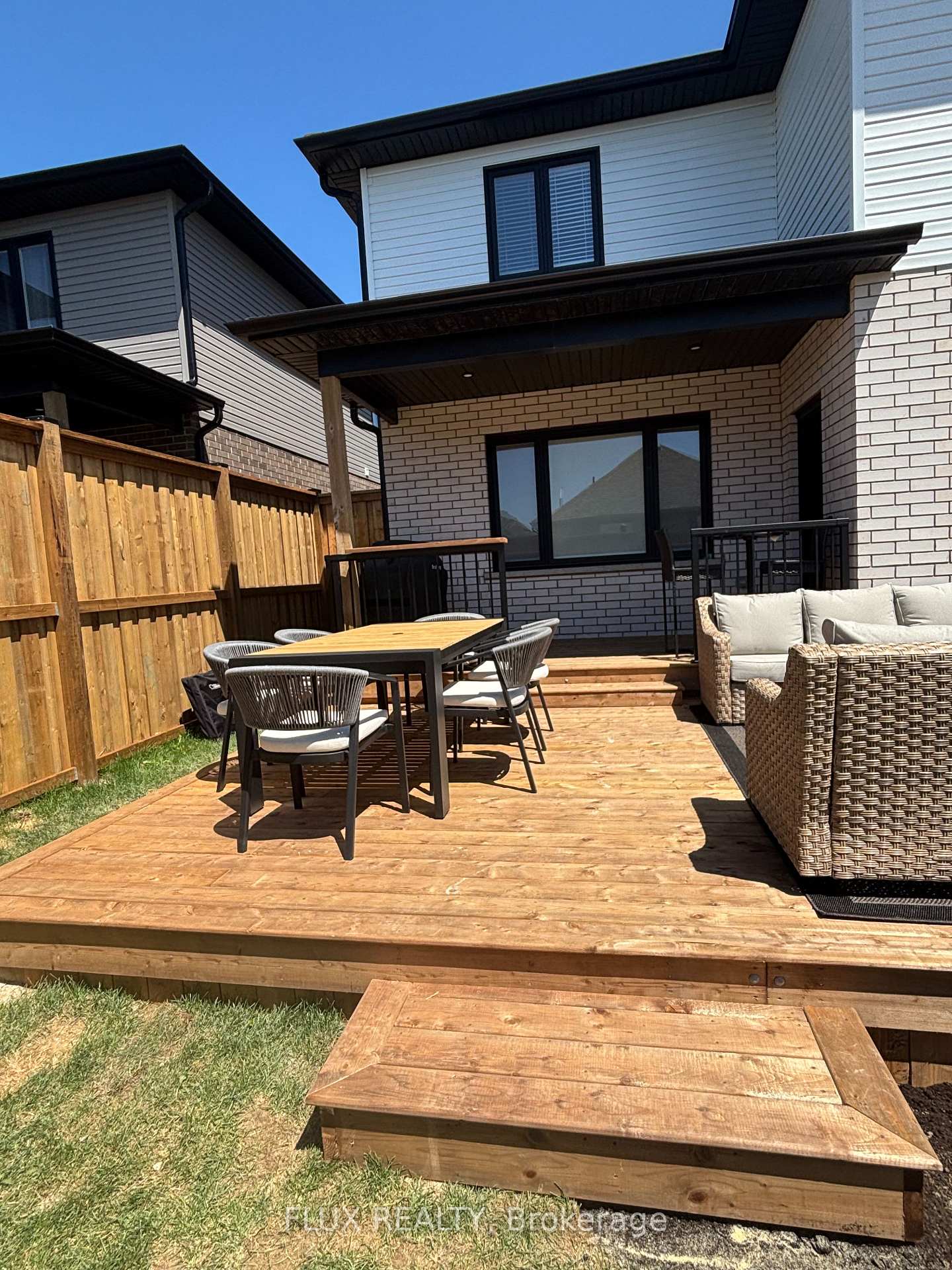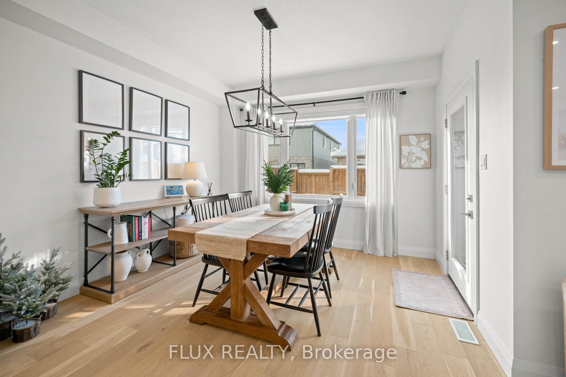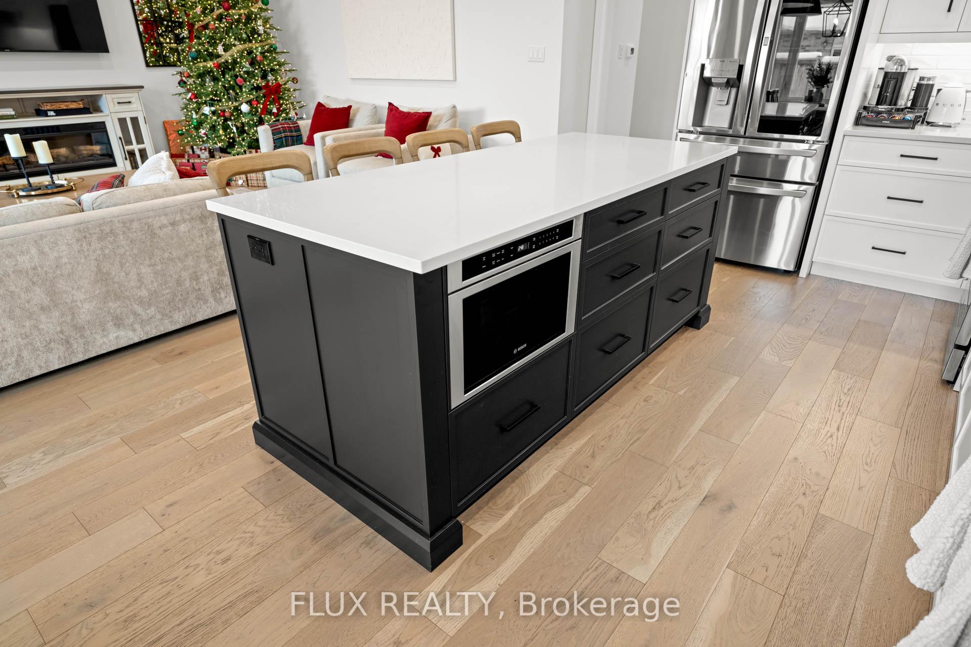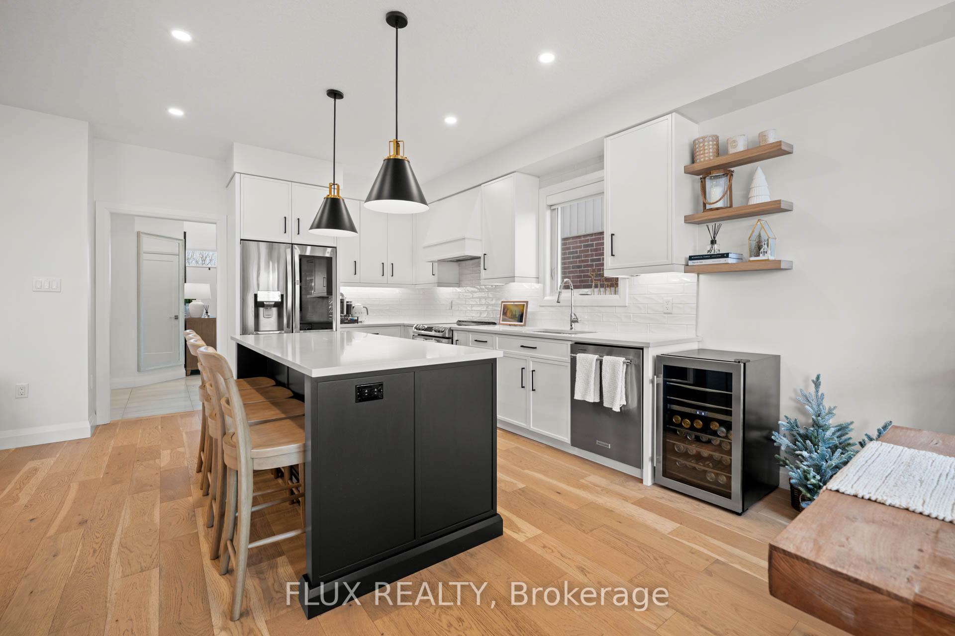 Welcome to this beautifully finished Montgomery Homes residence in the desirable Southwood Park community of Elmira. This thoughtfully upgraded 4-bedroom, 3-bath home offers over 2,200 sq. ft. of stylish, functional living space. Light-filled and inviting, the main floor features 9′ ceilings, hardwood flooring, and an open-concept kitchen, dining, and great room ideal for both everyday living and entertaining. The Chervin kitchen is equipped with high-end appliances, quartz countertops, and a large contrasting island, complemented by abundant pot lighting throughout. The dining area walks out to a finished deck overlooking a fully fenced backyard-perfect for relaxing, entertaining, or family enjoyment. A convenient laundry room and 2-piece powder room complete the main level. Upstairs, the hardwood staircase leads to a spacious primary retreat with french doors, double closets and a luxurious 5-piece ensuite featuring a freestanding soaker tub and glass-enclosed shower. Three additional generously sized bedrooms and a full main bath complete the upper level. All bathrooms feature Chervin cabinetry with floating vanities and quartz countertops. Surrounded by nature trails and parks, and just minutes to shopping with easy access to Waterloo, Kitchener, and Guelph, this home offers the perfect blend of small-town charm and city convenience. Elmira boasts beautiful parks, a splash pad, recreation centre, arena, pool, fitness facilities, and a vibrant downtown with local boutiques, restaurants, and essential services. A true turnkey opportunity in a welcoming, family-friendly community-this exceptional home is ready to be enjoyed. Book your private showing today.
