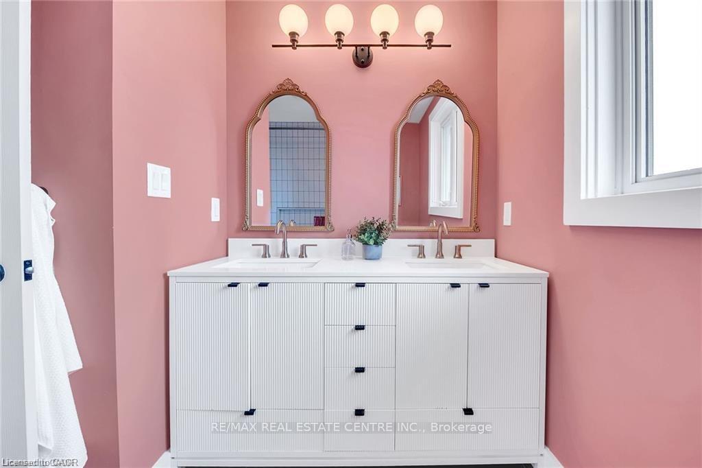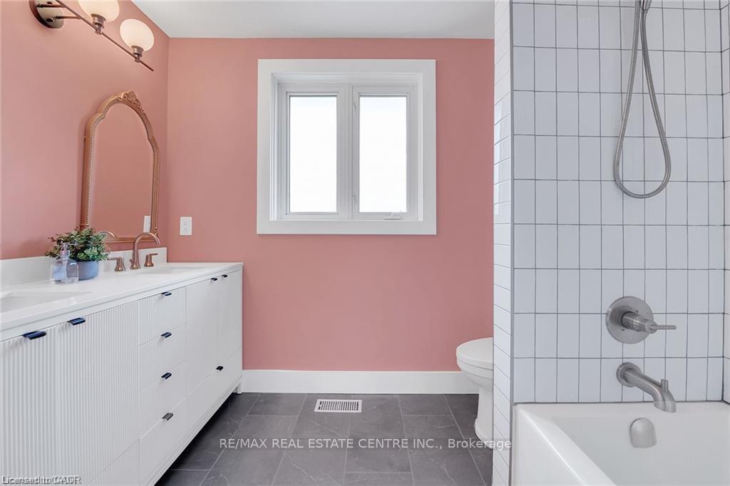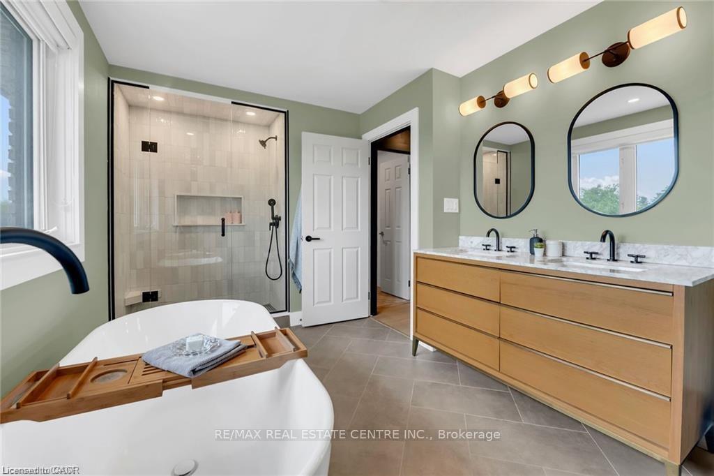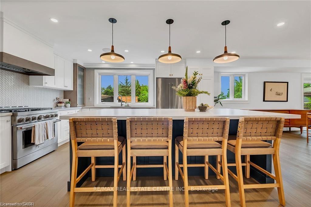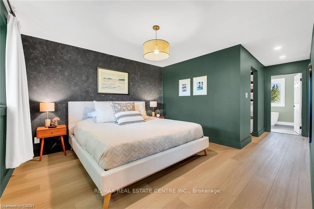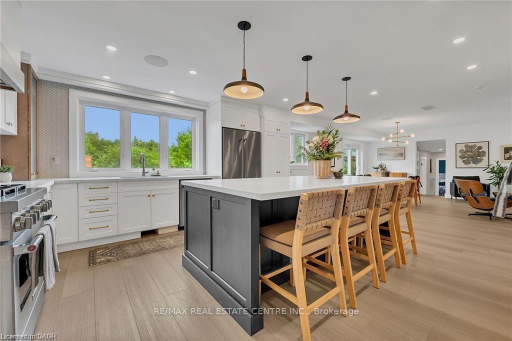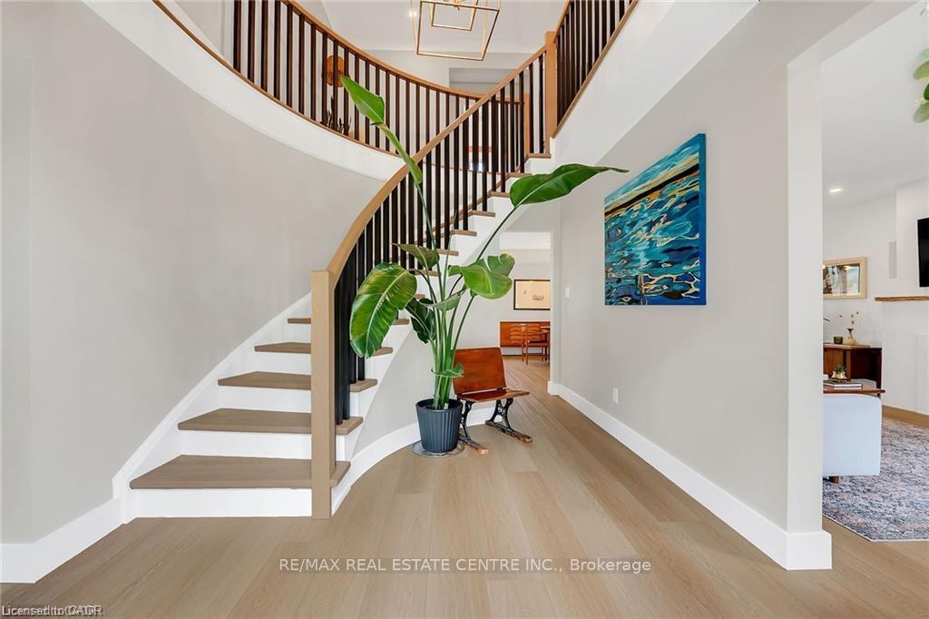 Welcome to 217 Jones Road-an extraordinary residence nestled in the prestigious and tranquil Fruitland Road neighbourhood of Stoney Creek. Set on a rare, fully fenced approx. 82.22′ x 200.42′ lot, home offers a peaceful, private retreat with exceptional outdoor space. Whether you envision entertaining on a grand scale, cultivating your own garden of fresh vegetables & fruit trees, or simply creating a backyard haven for family fun & relaxation. With over $400,000 in premium renovations, this meticulously redesigned home delivers refined living. The main flr features a beautifully appointed front office ideal for professionals, a stunning staircase centerpiece, a private wing with a bedrm-perfect for guests, in-laws, or multigenerational needs. Upstairs you’ll find 3 spacious bedrms, including a luxurious primary suite with spa-inspired 4-piece ensuite, along with the added convenience of bedrm-level laundry. The fully finished basement includes a 5th bedrm, 3-piece bathrm and is built on a core slab floor system, providing both acoustic privacy and the infrastructure for a potential self-contained in-law or income suite with separate access. Enjoy parking for 6+ cars in the expansive driveway plus a double garage. Enjoy the convenience of being just minutes from major retailers like Costco and Starbucks, boutique shopping, top dining spots, and all essential services. Easy connections to QEW, Red Hill Parkway, and local transit, making travel into Hamilton, Niagara, or the GTA smooth and efficient. For those who value lifestyle, the area is a gateway to Niagara wine country, farm-to-table markets, and seasonal fruit stands, all just a short drive away. Nearby conservation areas, scenic hiking trails, and access to Lake Ontario’s waterfront, perfect for weekend activities. Highly rated schools, community centres, & beautiful parks, & it’s easy to see why this location checks every box for families, professionals, and anyone seeking a balanced, enriched way of life.