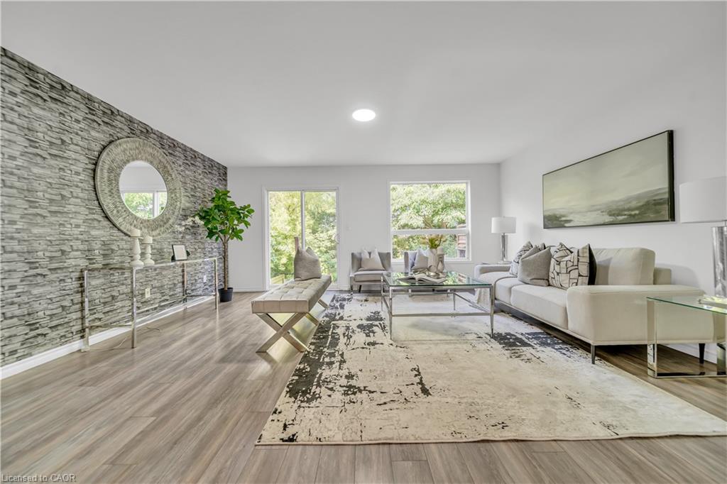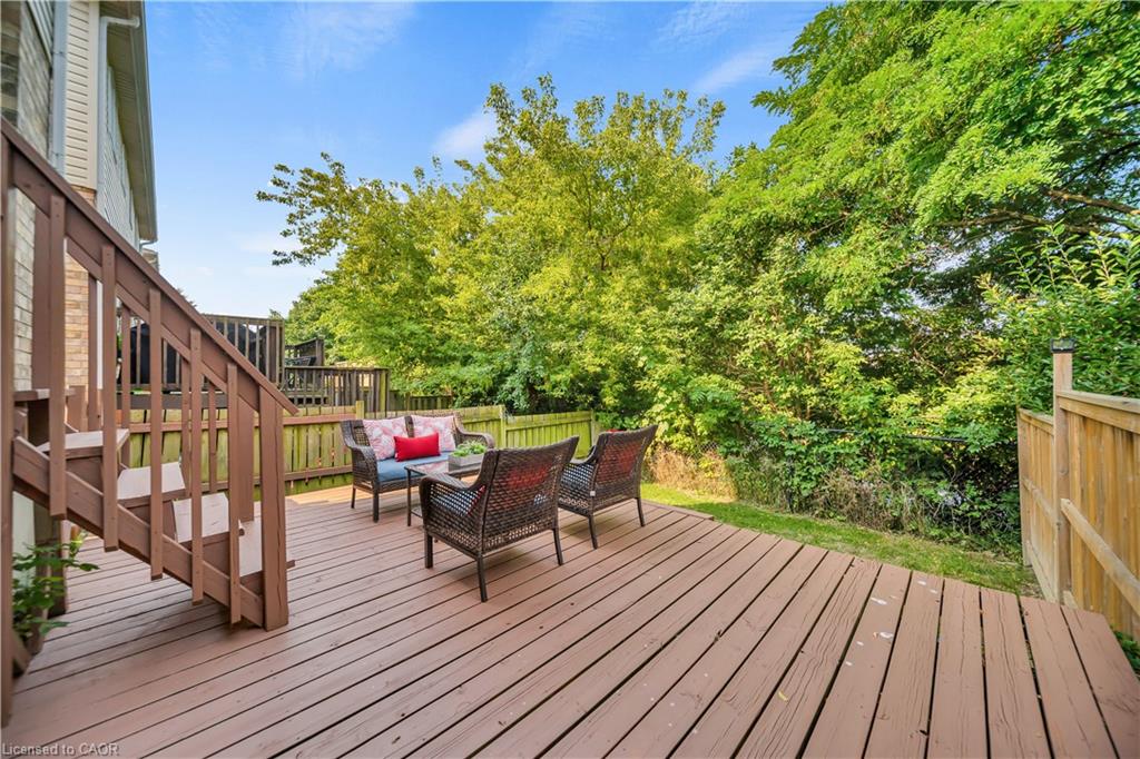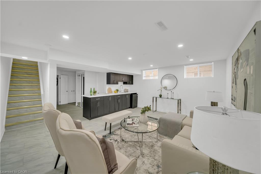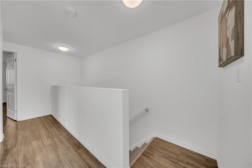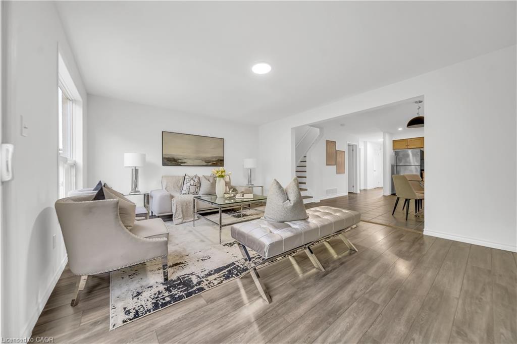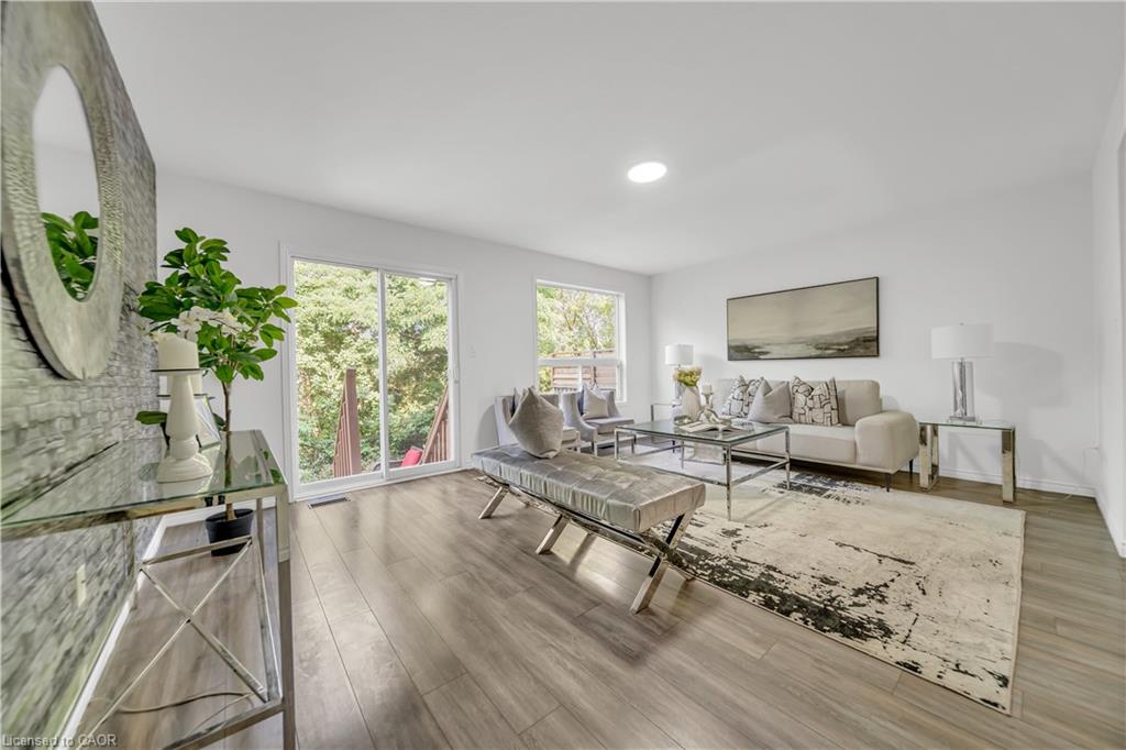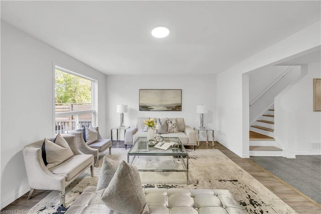 Welcome to 22 Chester Drive, Cambridge – A Turn-Key Gem in a Prime Location! Step into this beautifully maintained freehold townhouse nestled in one of Cambridge’s most desirable neighbourhoods. Move-in ready and immaculately presented, this carpet-free home offers modern updates, spacious living & an abundant natural light throughout. Freshly painted throughout, this stunning home features 3+1 bed, 3 baths with a fully finished basement and connected to the neighbouring property by the garage on the left. The main floor boasts an inviting open-concept layout with a spacious eat-in kitchen, offering abundant cabinetry, quality appliances & a layout perfect for cooking. The bright Living room is adorned with high-end laminate flooring & sliding doors that open to your private backyard oasis. A convenient main-floor powder room completes this level. Upstairs, you’ll find 3 generously sized bedrooms, including a massive primary suite with a walk-in closet. The updated 4pc bath offers shower/tub combo. Downstairs The professionally finished basement in 2023, completed as per legal code, adds valuable living space with a fourth bedroom, 3pc bath, kitchenette setup & a large recreation room – perfect for guests or in-law living. Step outside to your fully fenced backyard with no rear neighbours, offering maximum privacy. Enjoy summer BBQs, Host parties or enjoy morning coffee on the expansive deck. There’s even room for gardening. Notable updates include: Roof (2021), Hot water heater (2021), Furnace (2022), Washer & dryer (2023), Stove & range hood (2023), Modern light fixtures (2025) & Updated bathroom faucets. The garage is 1.5 with direct access to the backyard, driveway parking & an unbeatable location close to parks, schools, shopping, trails & transit. Whether you’re a first-time buyer, growing family, or looking for multi-generational living this house offers incredible value & lifestyle. Don’t miss your chance – book your private showing today before it’s gone!