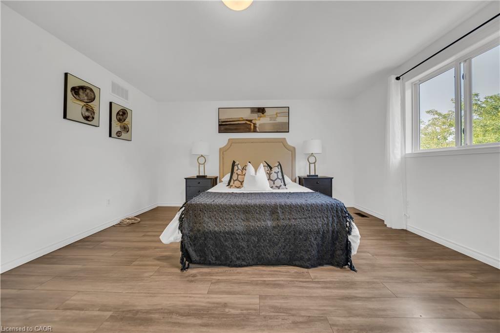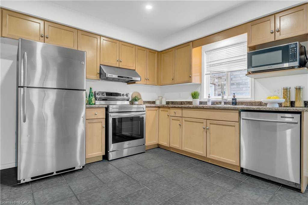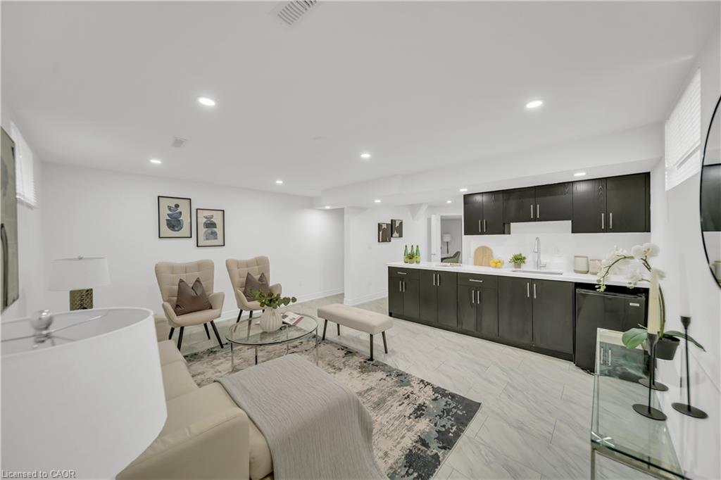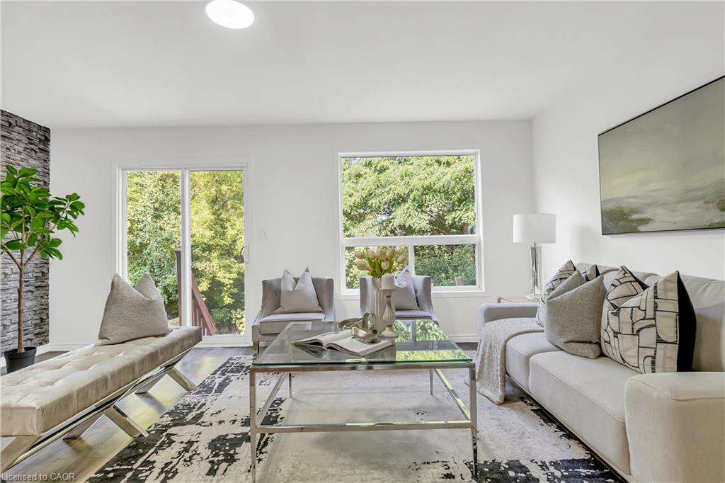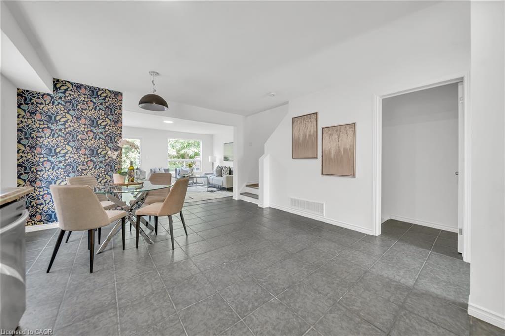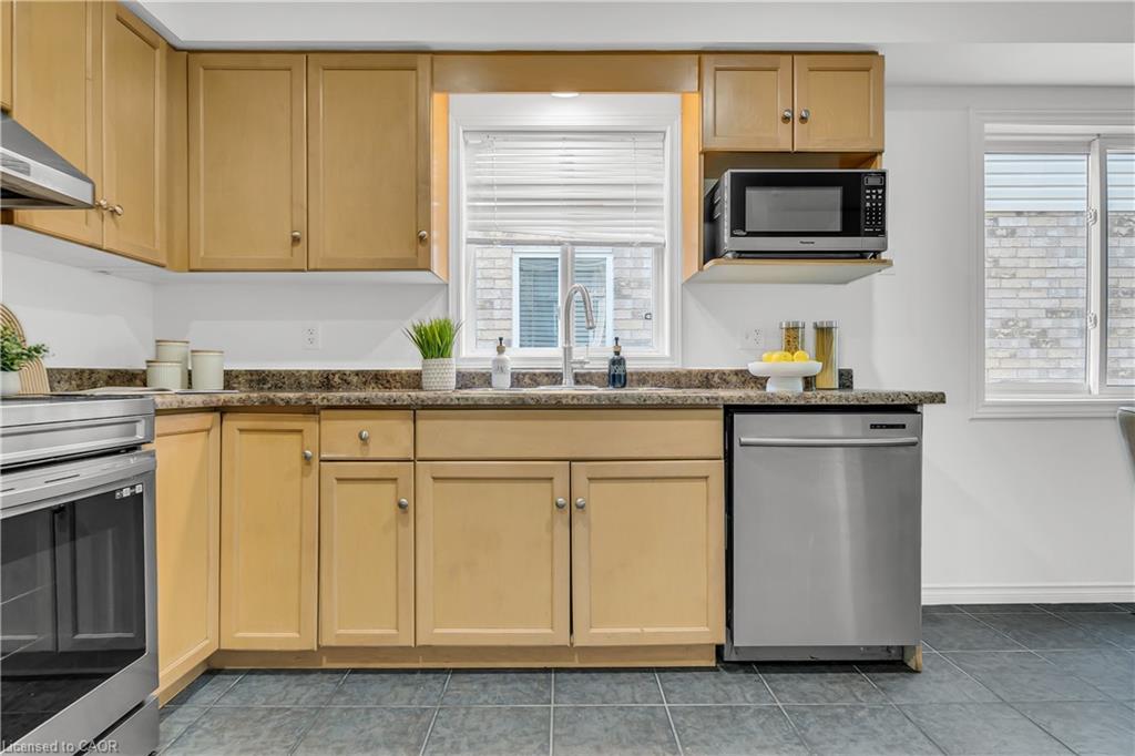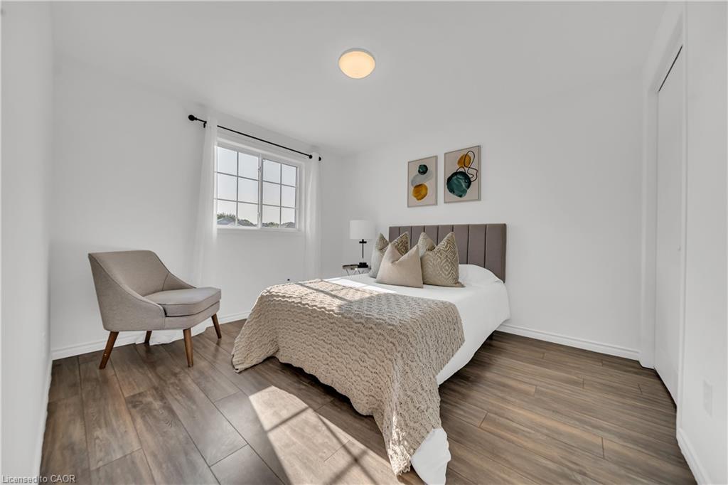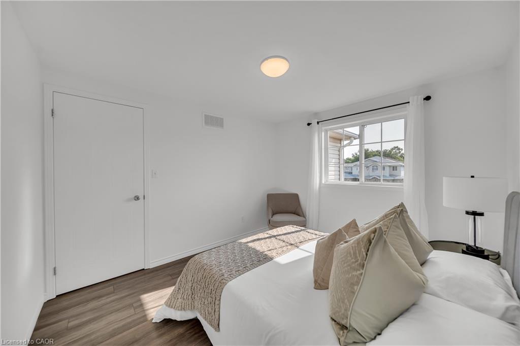 Welcome to 22 Chester Drive, Cambridge – A Turn-Key Gem in a Prime Location! Step into this beautifully maintained freehold townhouse nestled in one of Cambridge’s most desirable neighbourhoods. Move-in ready and immaculately presented, this carpet-free home offers modern updates, spacious living & an abundant natural light throughout. Freshly painted throughout, this stunning home features 3+1 bed, 3 baths with a fully finished basement and connected to the neighbouring property by the garage on the left. The main floor boasts an inviting open-concept layout with a spacious eat-in kitchen, offering abundant cabinetry, quality appliances & a layout perfect for cooking. The bright Living room is adorned with high-end laminate flooring & sliding doors that open to your private backyard oasis. A convenient main-floor powder room completes this level. Upstairs, you’ll find 3 generously sized bedrooms, including a massive primary suite with a walk-in closet. The updated 4pc bath offers shower/tub combo. Downstairs The professionally finished basement in 2023, completed as per legal code, adds valuable living space with a fourth bedroom, 3pc bath, kitchenette setup & a large recreation room – perfect for guests or in-law living. Step outside to your fully fenced backyard with no rear neighbours, offering maximum privacy. Enjoy summer BBQs, Host parties or enjoy morning coffee on the expansive deck. There’s even room for gardening. Notable updates include: Roof (2021), Hot water heater (2021), Furnace (2022), Washer & dryer (2023), Stove & range hood (2023), Modern light fixtures (2025) & Updated bathroom faucets. The garage is 1.5 with direct access to the backyard, driveway parking & an unbeatable location close to parks, schools, shopping, trails & transit. Whether you’re a first-time buyer, growing family, or looking for multi-generational living this house offers incredible value & lifestyle. Don’t miss your chance – book your private showing today before it’s gone!