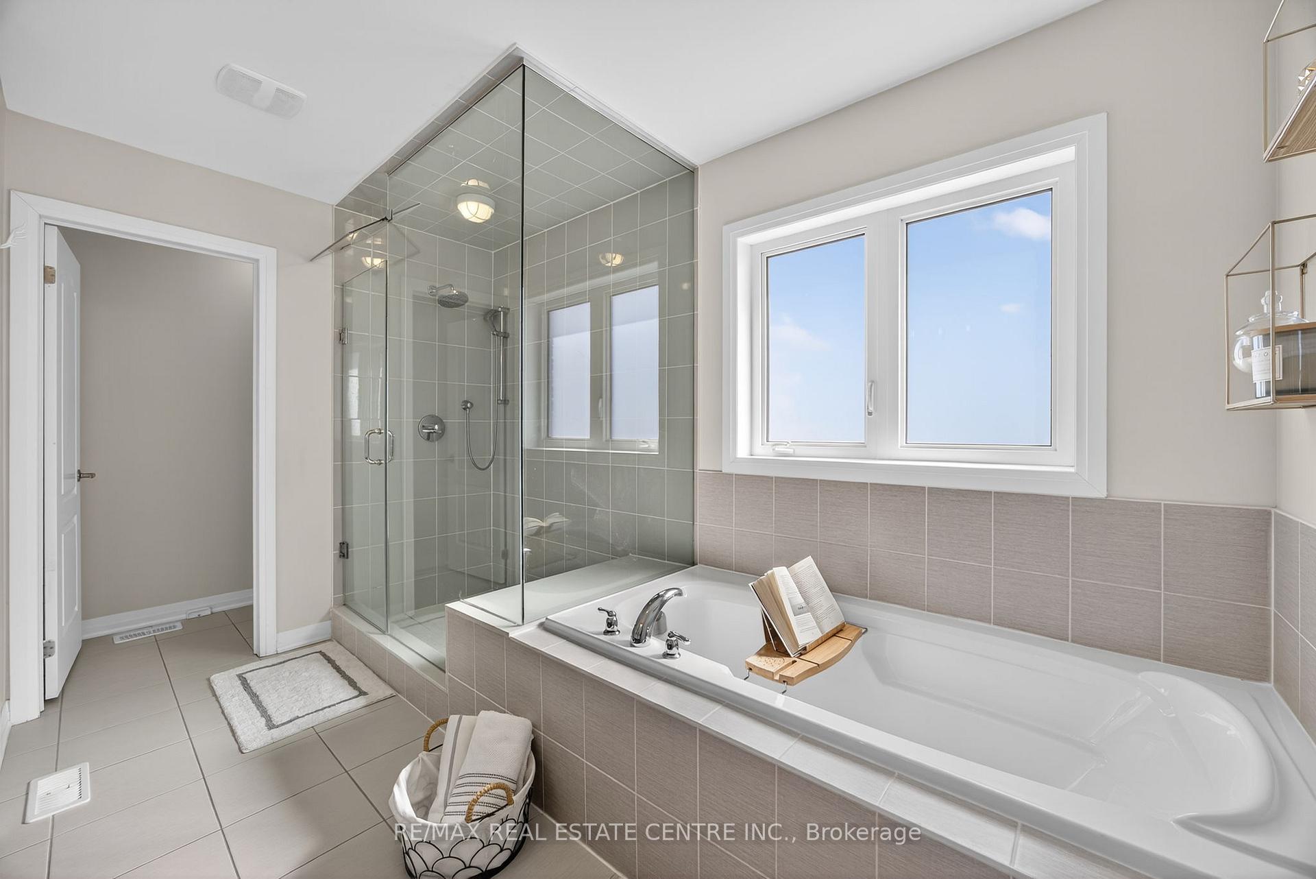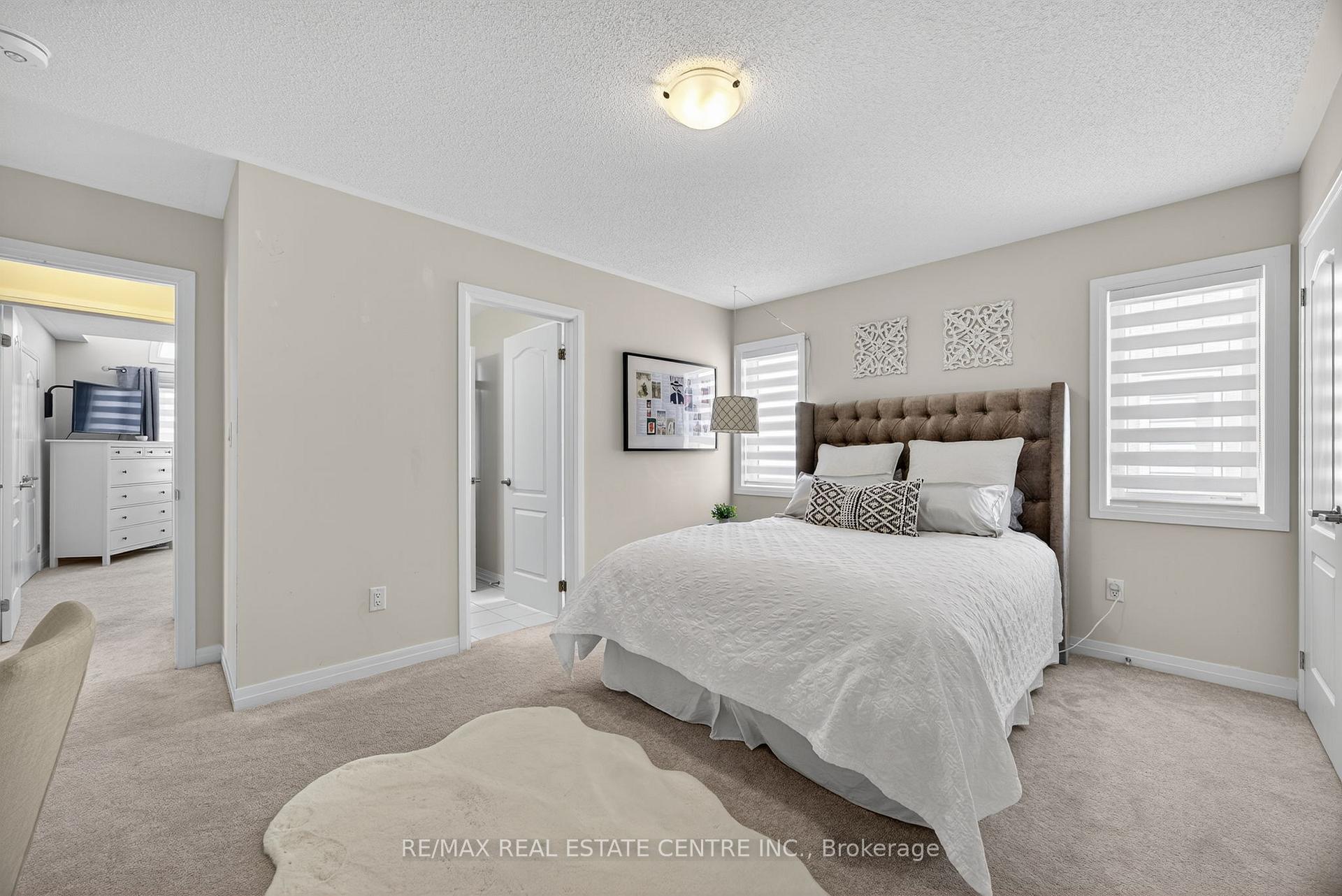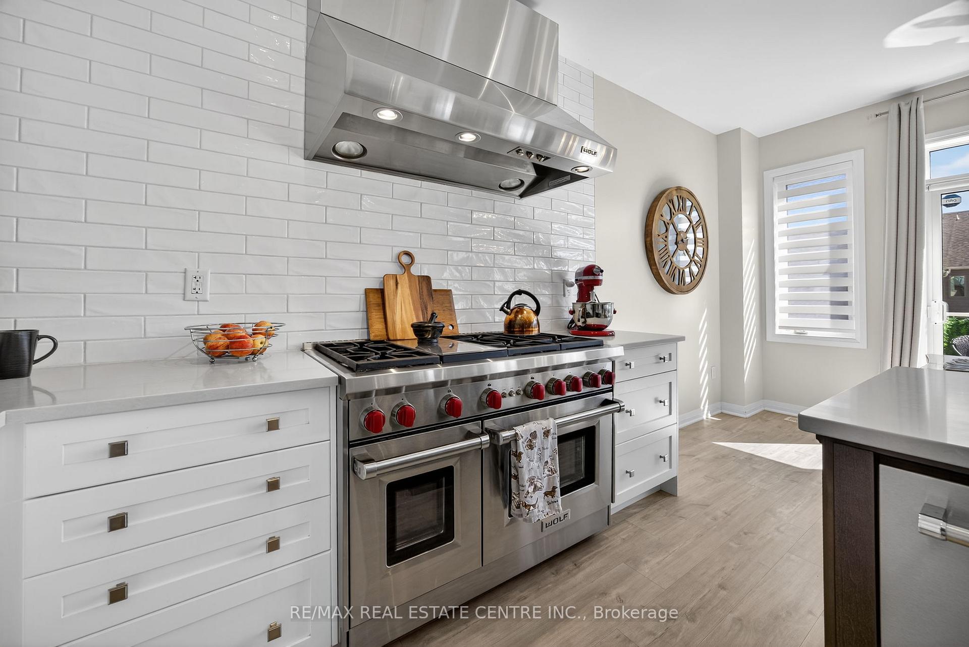 The largest model in this desirable enclave offering 2,990 Sq Ft of elegant, upgraded living space plus an unfinished walkout basement full of potential. Beautiful all-brick exterior on a 45-foot premium lot with no sidewalk in front and walking trails behind. Step inside from the covered front porch into a designer foyer with slatted wood accents, sculptural lighting, and a clear sense of sophistication. The main floor features 9 ft ceilings, 8 ft doors, and wide openings that create an open, airy feel throughout. A private office, formal dining room, and bright living area with gas fireplace flow seamlessly into the chef’s kitchen, showcasing a 6-burner Wolf double oven, quartz counters, wraparound backsplash, and a walk-in pantry, along with thoughtful extras like a breakfast bar island with upgraded pendant lighting and a reverse osmosis system. Southern exposure fills the kitchen, living room, and yard with natural light all day, while the unfinished walkout basement offers endless potential-perfect for an in-law suite, recreation area, or home gym. The main level features hard-surface flooring throughout, complemented by upgraded lighting and window treatments.Upstairs, four bedrooms and three full baths include a primary retreat with double-door entry, a massive walk-in closet, and a luxury ensuite with glass shower, soaker tub, double sinks, and a smart toilet.Set in a family-friendly community surrounded by ponds, parks, schools, and shops, this home combines elegant design, everyday comfort, and endless versatility.