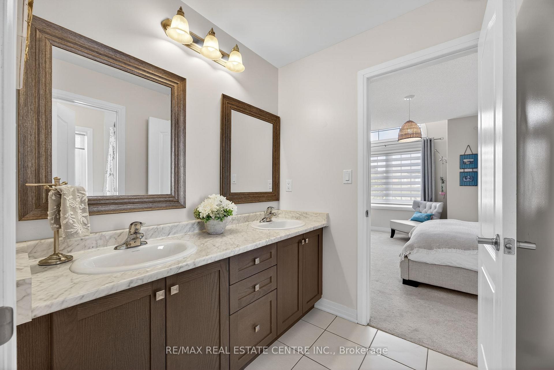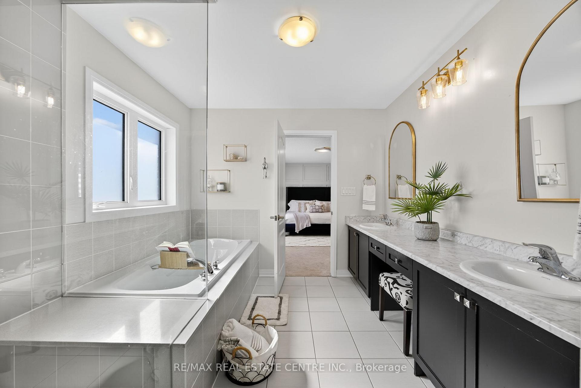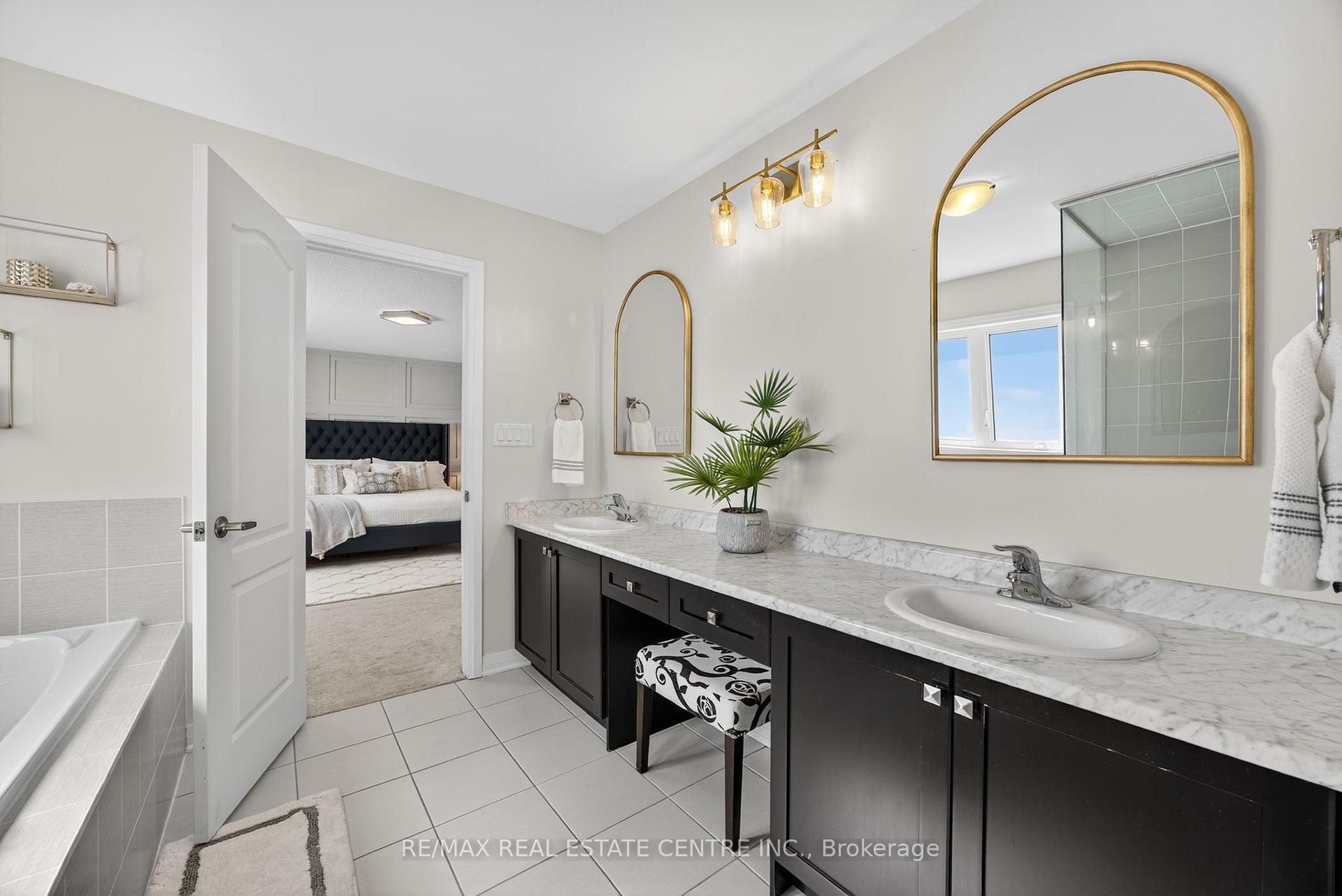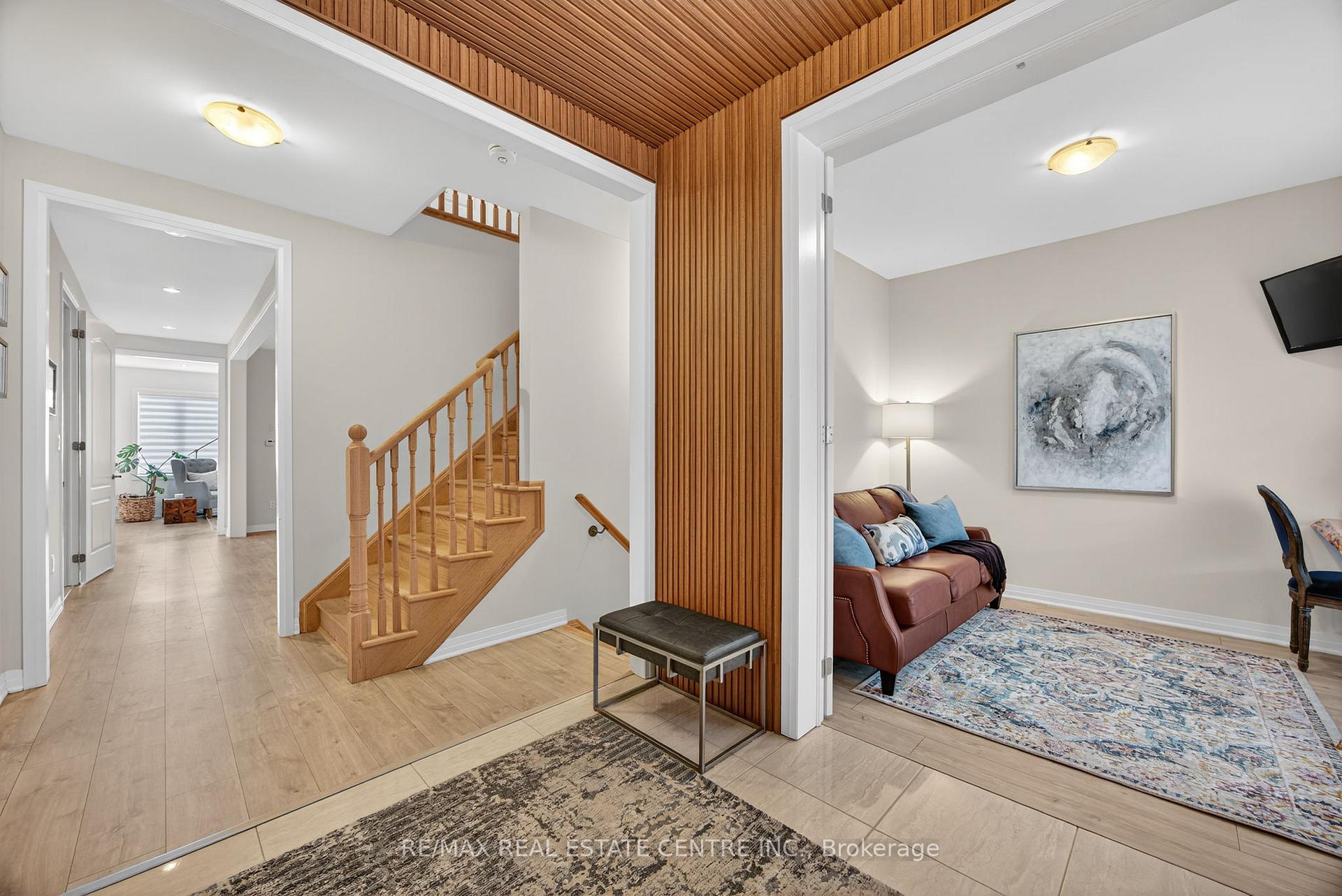 The largest model in this desirable enclave offering 2,990 Sq Ft of elegant, upgraded living space plus an unfinished walkout basement full of potential. Beautiful all-brick exterior on a 45-foot premium lot with no sidewalk in front and walking trails behind. Step inside from the covered front porch into a designer foyer with slatted wood accents, sculptural lighting, and a clear sense of sophistication. The main floor features 9 ft ceilings, 8 ft doors, and wide openings that create an open, airy feel throughout. A private office, formal dining room, and bright living area with gas fireplace flow seamlessly into the chef’s kitchen, showcasing a 6-burner Wolf double oven, quartz counters, wraparound backsplash, and a walk-in pantry, along with thoughtful extras like a breakfast bar island with upgraded pendant lighting and a reverse osmosis system. Southern exposure fills the kitchen, living room, and yard with natural light all day, while the unfinished walkout basement offers endless potential-perfect for an in-law suite, recreation area, or home gym. The main level features hard-surface flooring throughout, complemented by upgraded lighting and window treatments.Upstairs, four bedrooms and three full baths include a primary retreat with double-door entry, a massive walk-in closet, and a luxury ensuite with glass shower, soaker tub, double sinks, and a smart toilet.Set in a family-friendly community surrounded by ponds, parks, schools, and shops, this home combines elegant design, everyday comfort, and endless versatility.