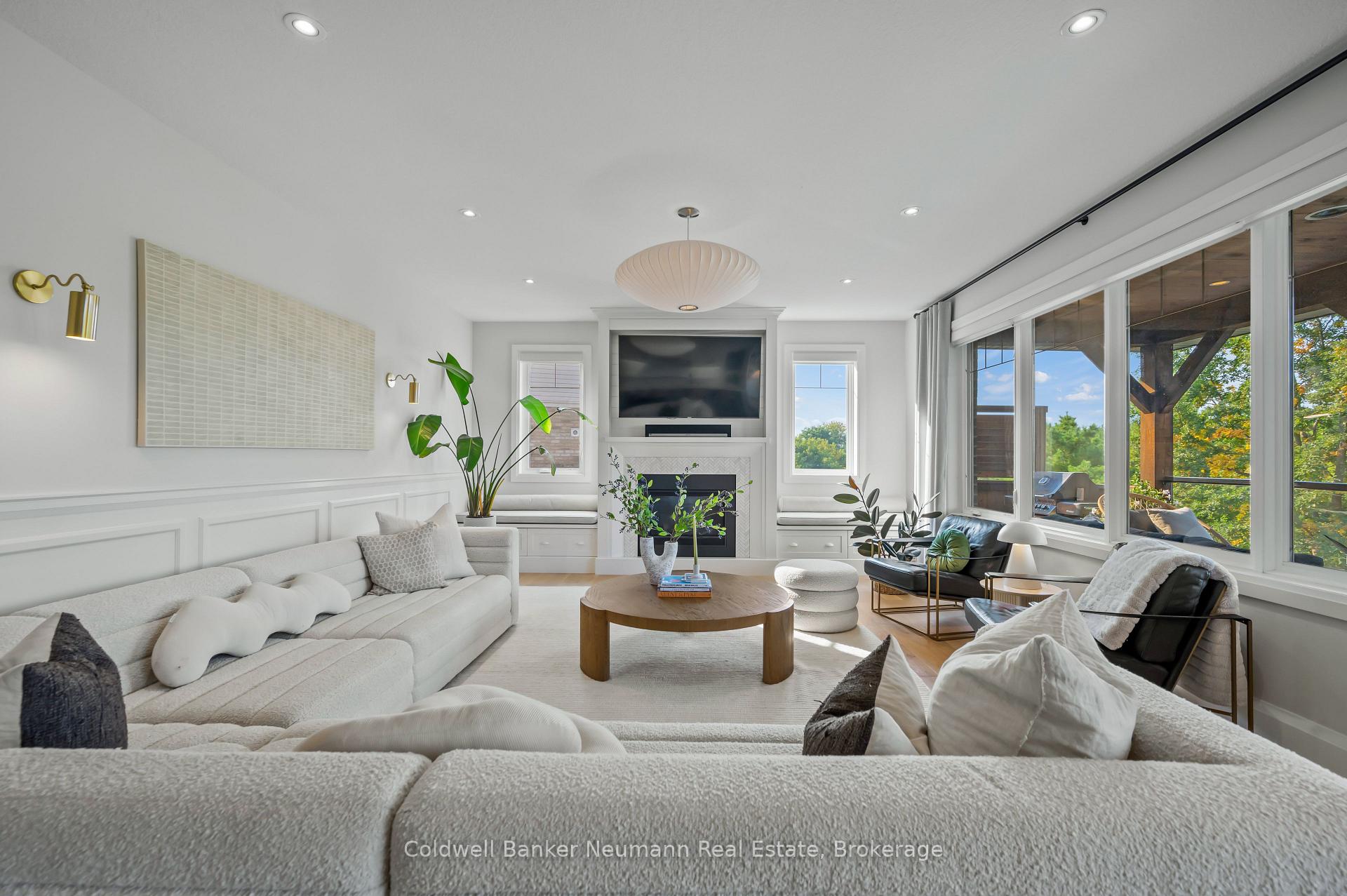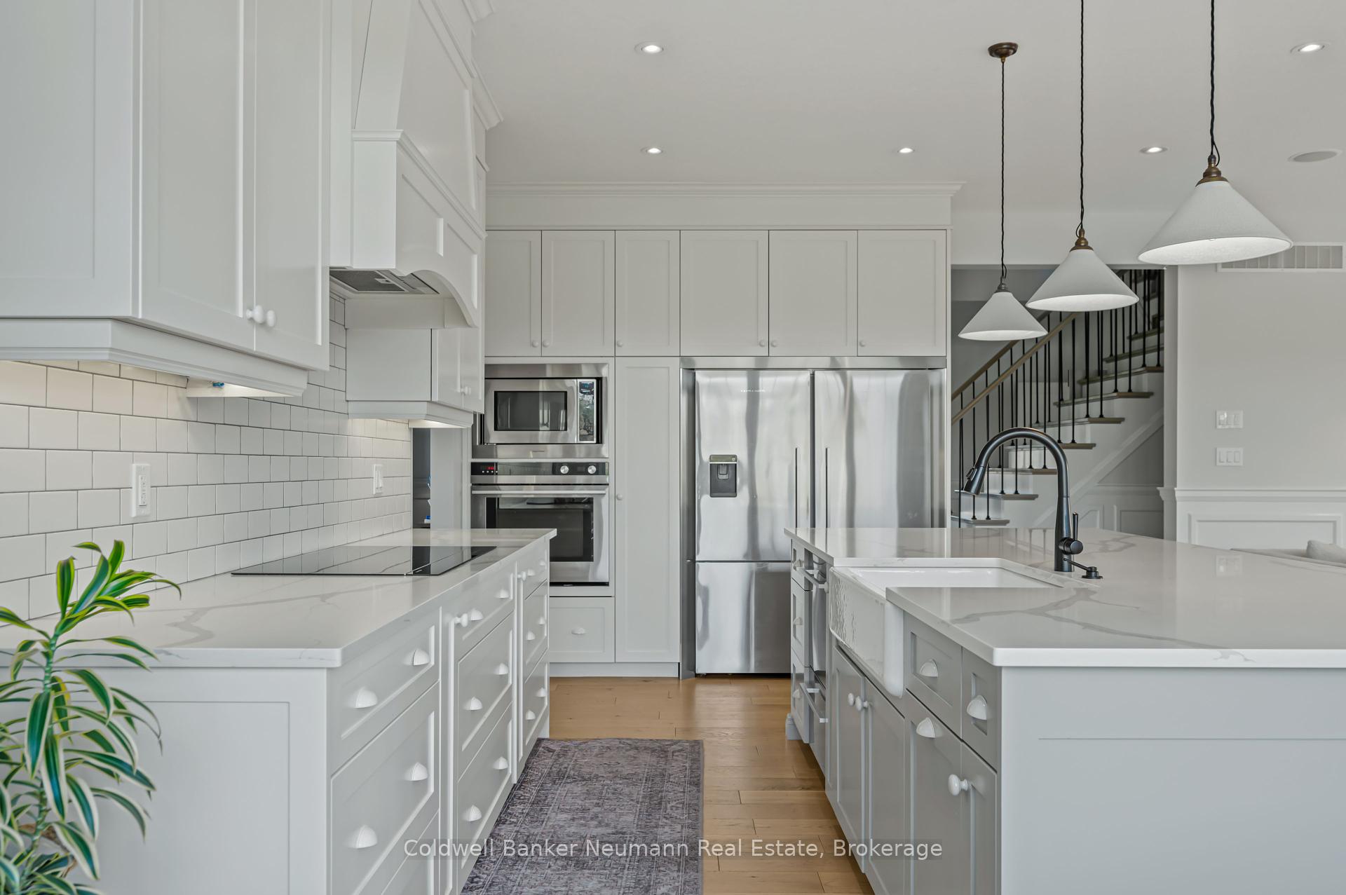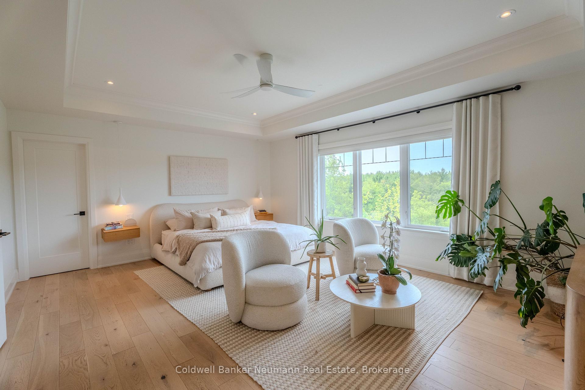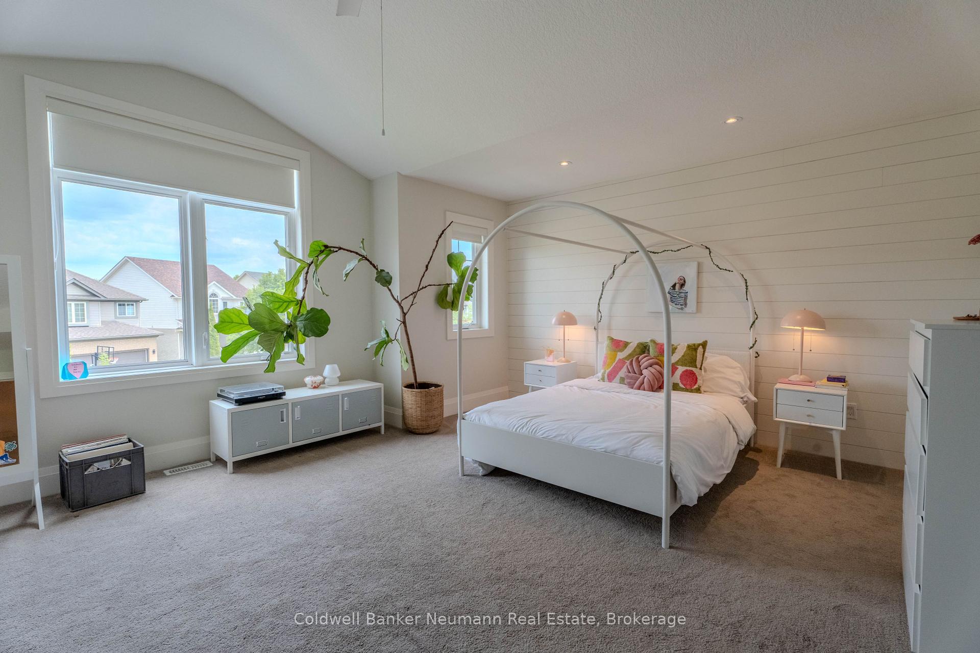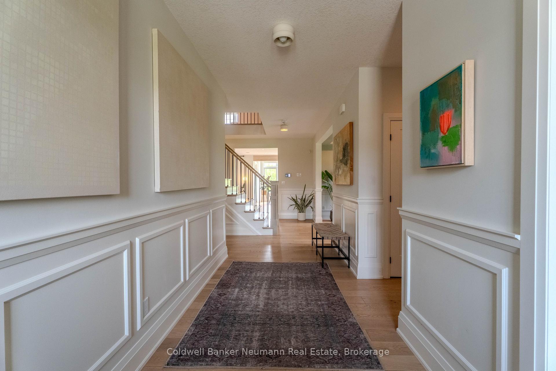 Situated on an expansive pie-shaped lot surrounded by nature, this stunning residence is thoughtfully crafted with every detail in mind. This isnt a home; its a designer resort perfect for single or multi-generational families who want to live a full life of activities and luxury. The backyard oasis features a luxurious free-form saltwater pool complete with a natural jump rock and cascading waterfall, an extensive stamped concrete patio, a grand timber-framed cabana, and a 6-person hot tub, all surrounded by professionally landscaped gardens. A stone staircase leads to a sunken interlock patio, creating multiple spaces for entertaining, alongside an activity lawn for games and sports. The bright, modern kitchen offers west-facing sunset views from the island, a functional and stylish butlers pantry, top-of-the-line appliances, and flows to the living room and balcony, creating a warm atmosphere to spend hours with your family. High ceilings and oversized windows maximize the space and light, delivering peaceful comfort as you enjoy each room. The primary bedroom feels like a five-star hotel suite with a sitting area, forest views, and an ensuite of serenity. The fully finished lower level provides secondary accommodations ideal for your family or guests, and a large space offering versatility for additional living space, or a gym/games room. With a theatre room, walkout to the stunning backyard and an additional large bedroom with ensuite, the lower level is an entertainment space friends and family will want to enjoy. Beyond your backyard is an extensive trail network for hiking, dog walking, cross country skiing or world-class mountain biking, with the entrance directly beside your home. Downtown Guelph is a 15 minute ride via bike trail, with Riverside Park and Guelph Lake a short walk away. A showcase of luxury, nature and design, this calibre of home promises to impress at every turn and is a rare turnkey offering in the Guelph luxury market.