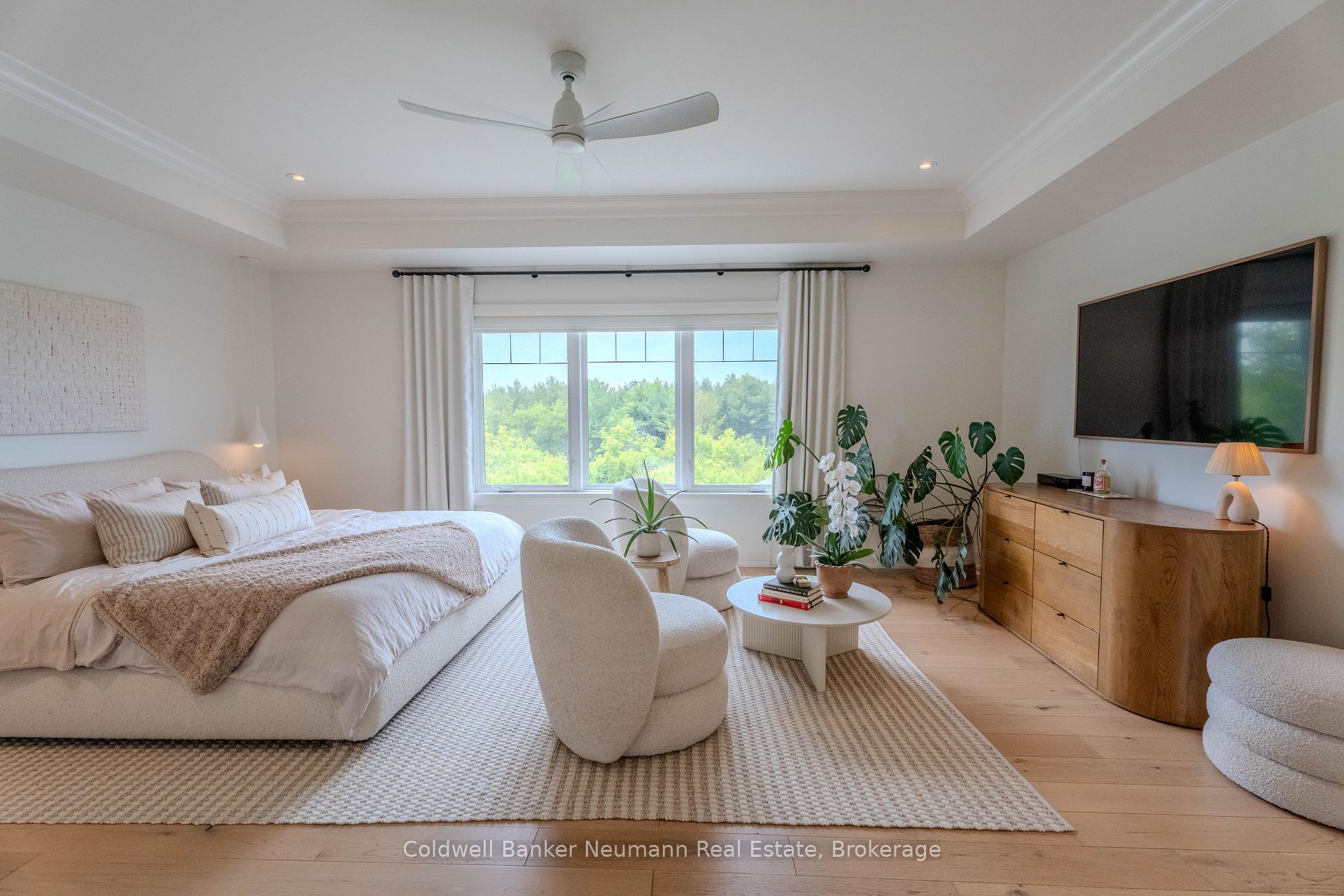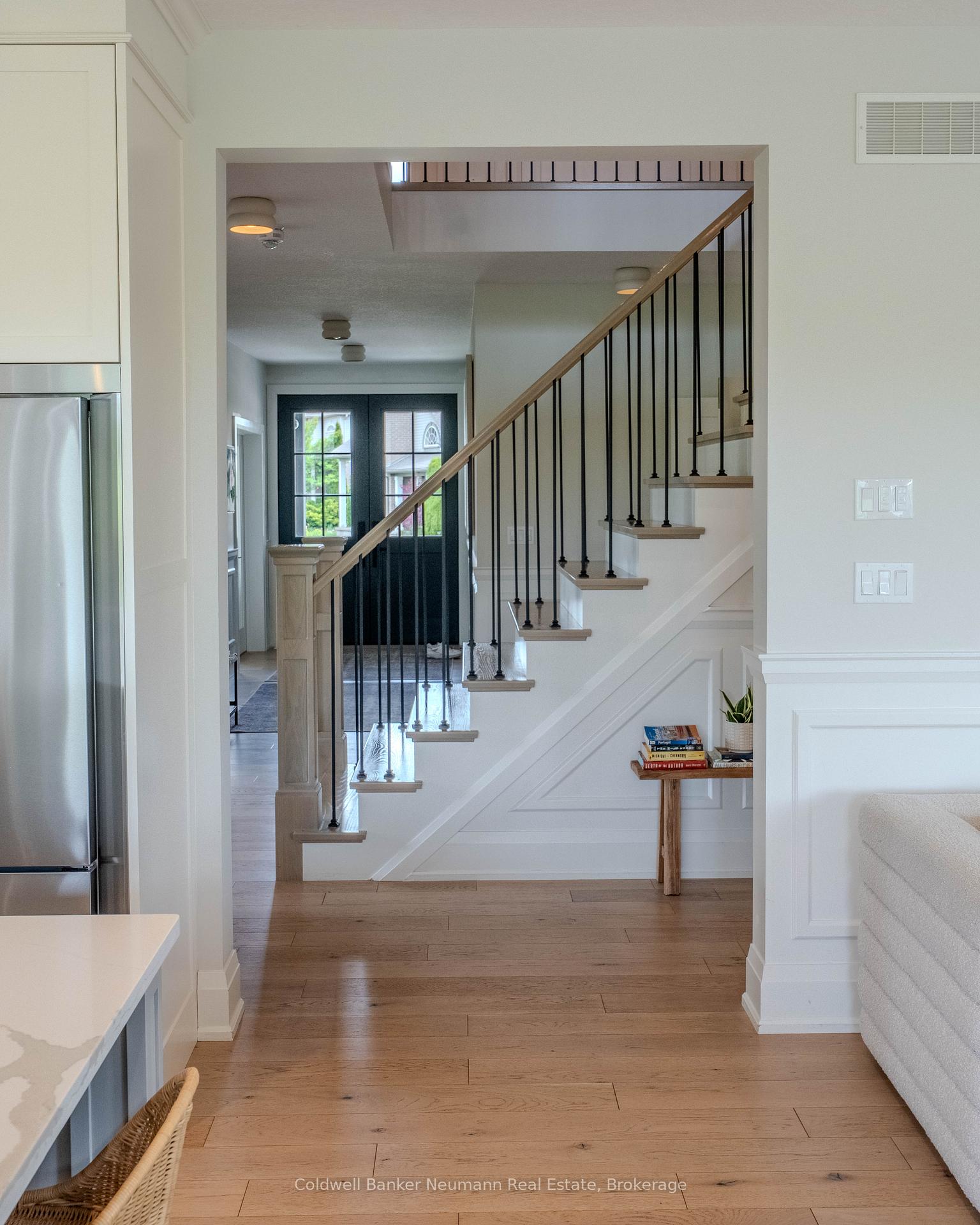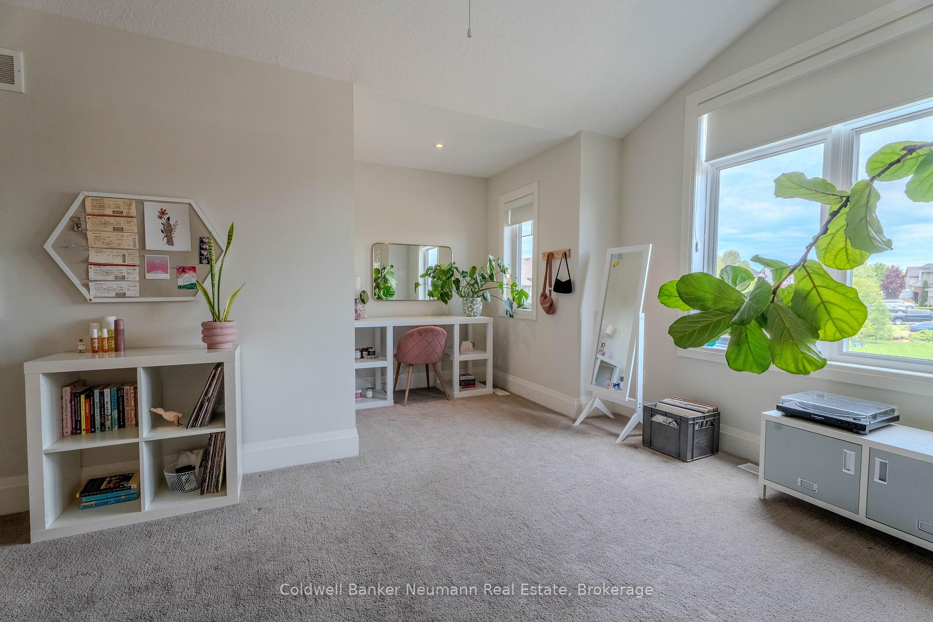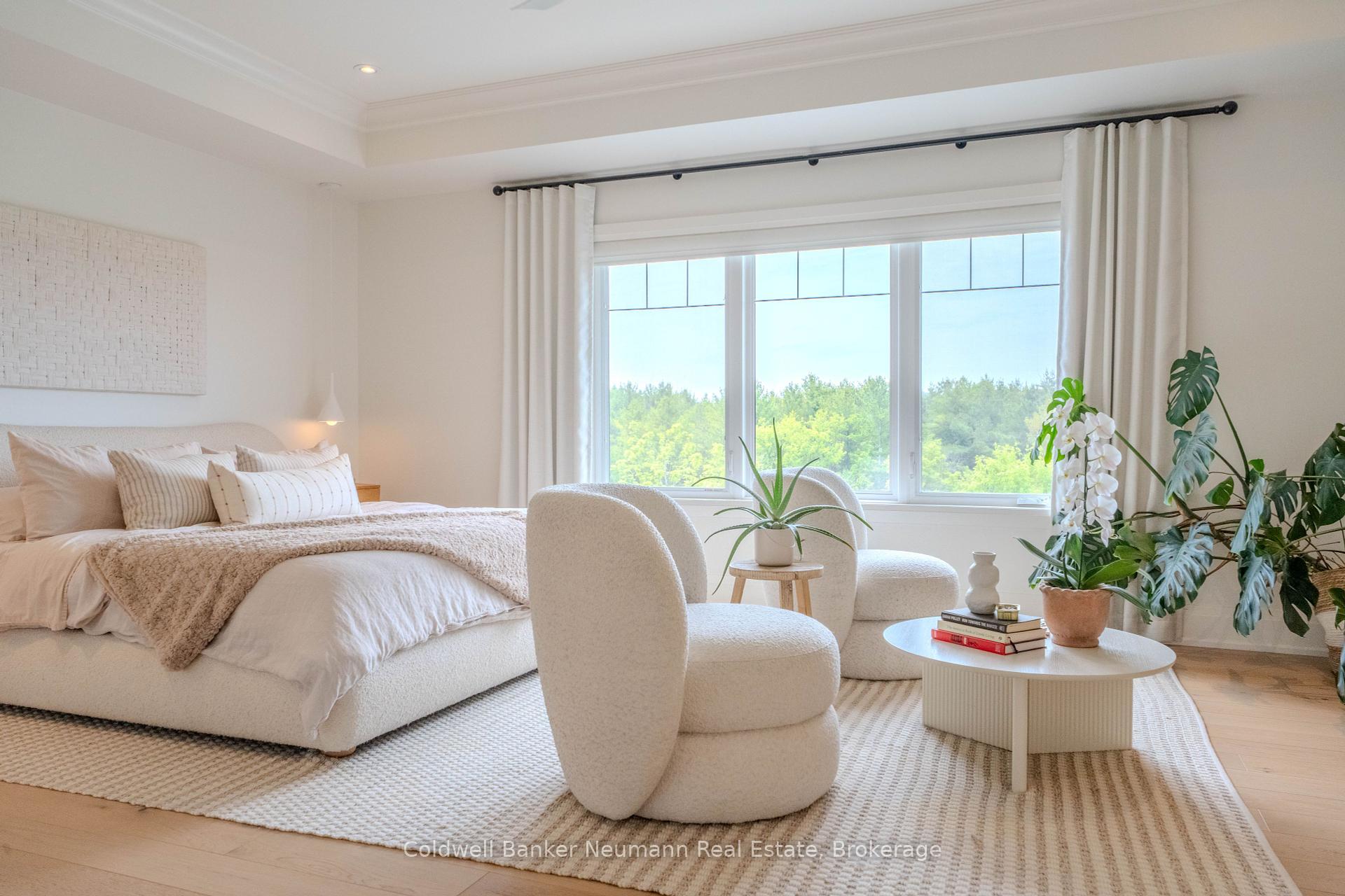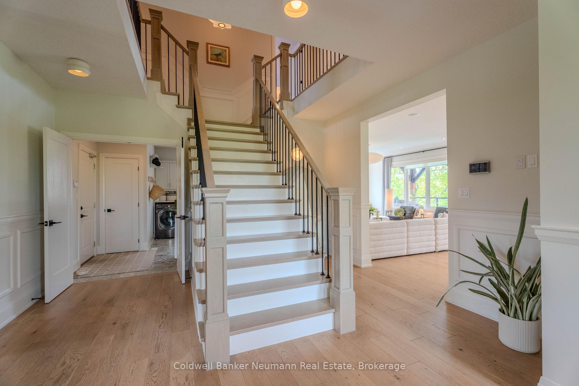 Situated on an expansive pie-shaped lot surrounded by nature, this stunning residence is thoughtfully crafted with every detail in mind. This isnt a home; its a designer resort perfect for single or multi-generational families who want to live a full life of activities and luxury. The backyard oasis features a luxurious free-form saltwater pool complete with a natural jump rock and cascading waterfall, an extensive stamped concrete patio, a grand timber-framed cabana, and a 6-person hot tub, all surrounded by professionally landscaped gardens. A stone staircase leads to a sunken interlock patio, creating multiple spaces for entertaining, alongside an activity lawn for games and sports. The bright, modern kitchen offers west-facing sunset views from the island, a functional and stylish butlers pantry, top-of-the-line appliances, and flows to the living room and balcony, creating a warm atmosphere to spend hours with your family. High ceilings and oversized windows maximize the space and light, delivering peaceful comfort as you enjoy each room. The primary bedroom feels like a five-star hotel suite with a sitting area, forest views, and an ensuite of serenity. The fully finished lower level provides secondary accommodations ideal for your family or guests, and a large space offering versatility for additional living space, or a gym/games room. With a theatre room, walkout to the stunning backyard and an additional large bedroom with ensuite, the lower level is an entertainment space friends and family will want to enjoy. Beyond your backyard is an extensive trail network for hiking, dog walking, cross country skiing or world-class mountain biking, with the entrance directly beside your home. Downtown Guelph is a 15 minute ride via bike trail, with Riverside Park and Guelph Lake a short walk away. A showcase of luxury, nature and design, this calibre of home promises to impress at every turn and is a rare turnkey offering in the Guelph luxury market.