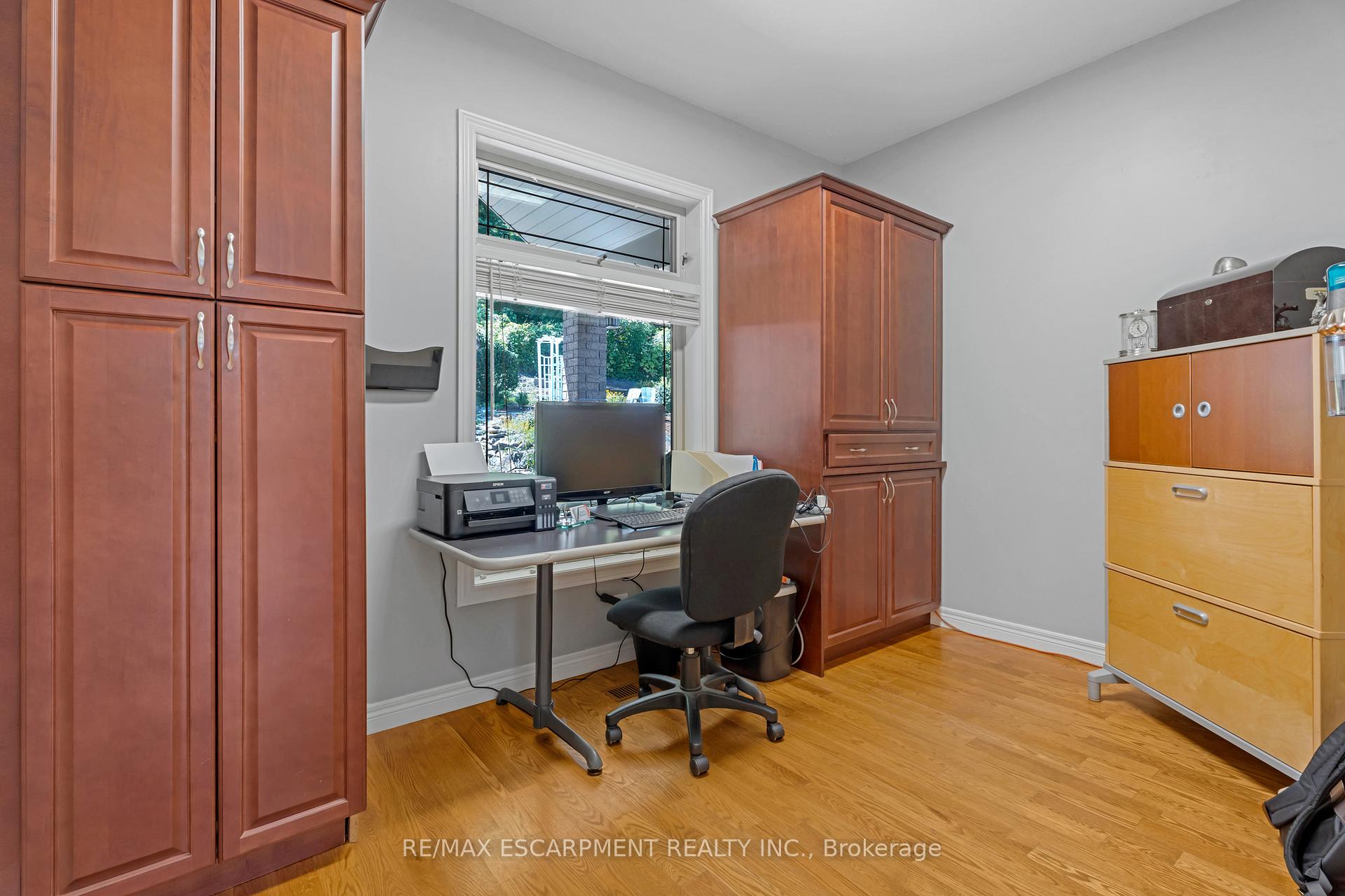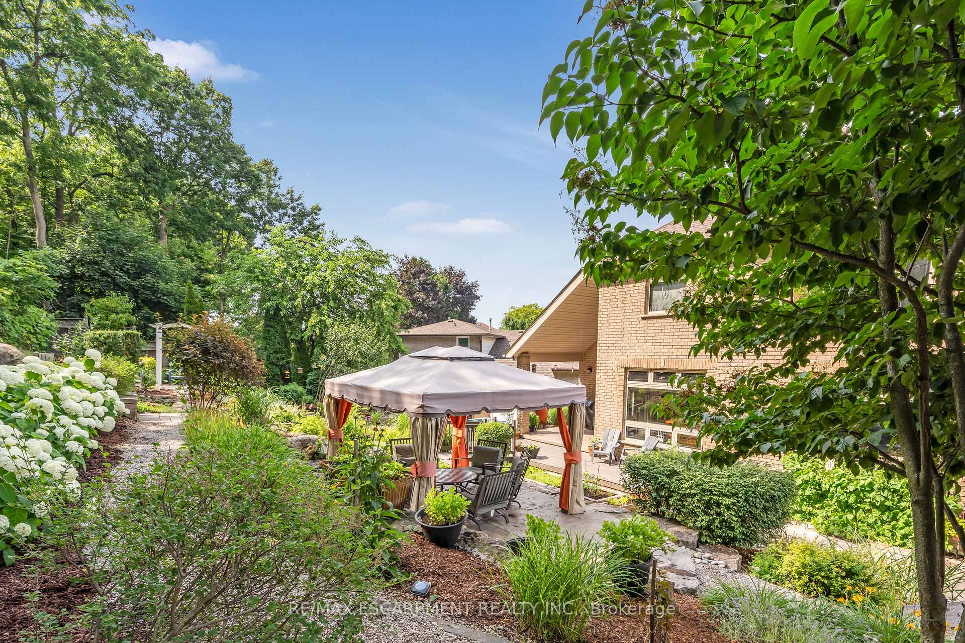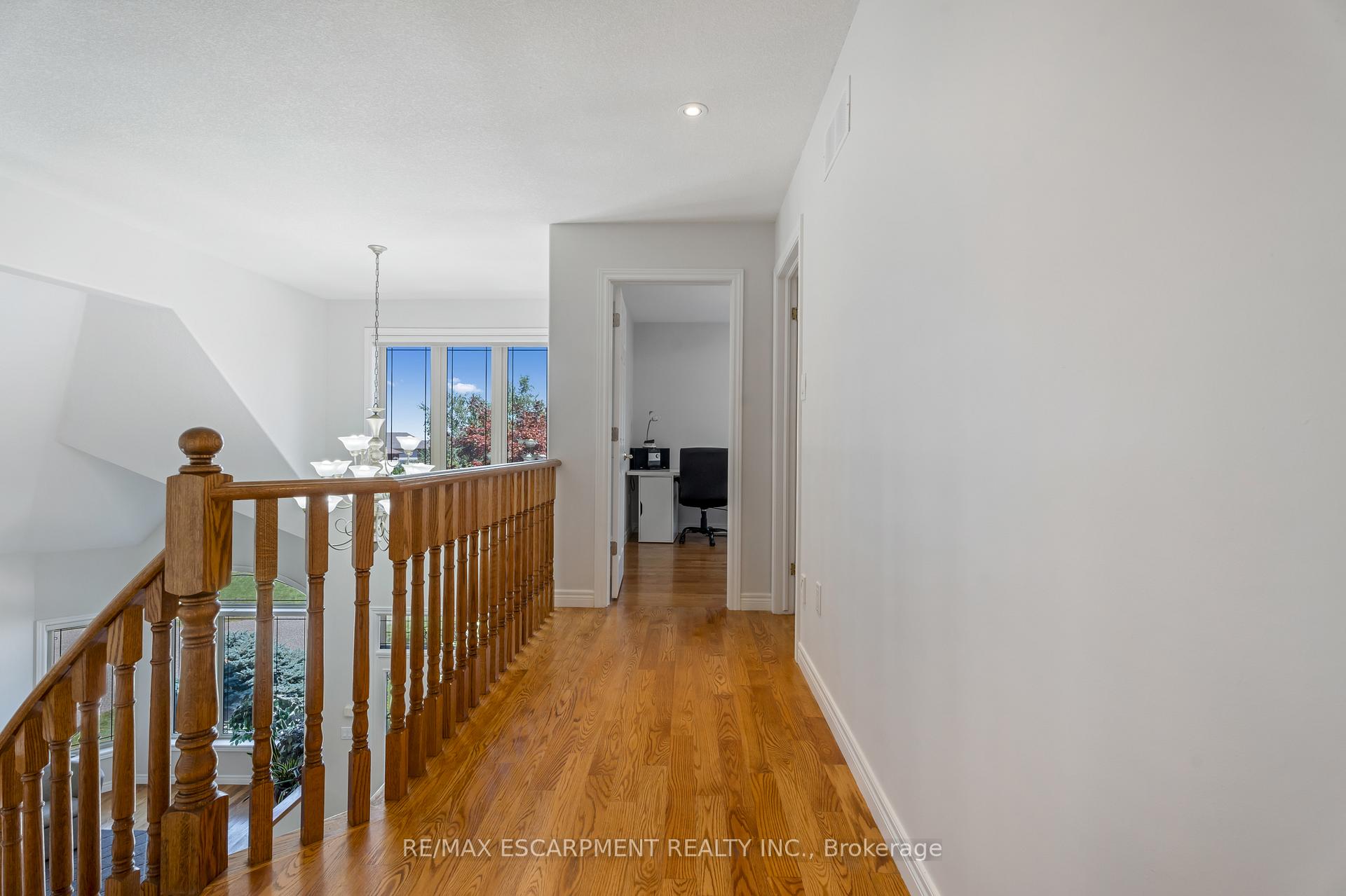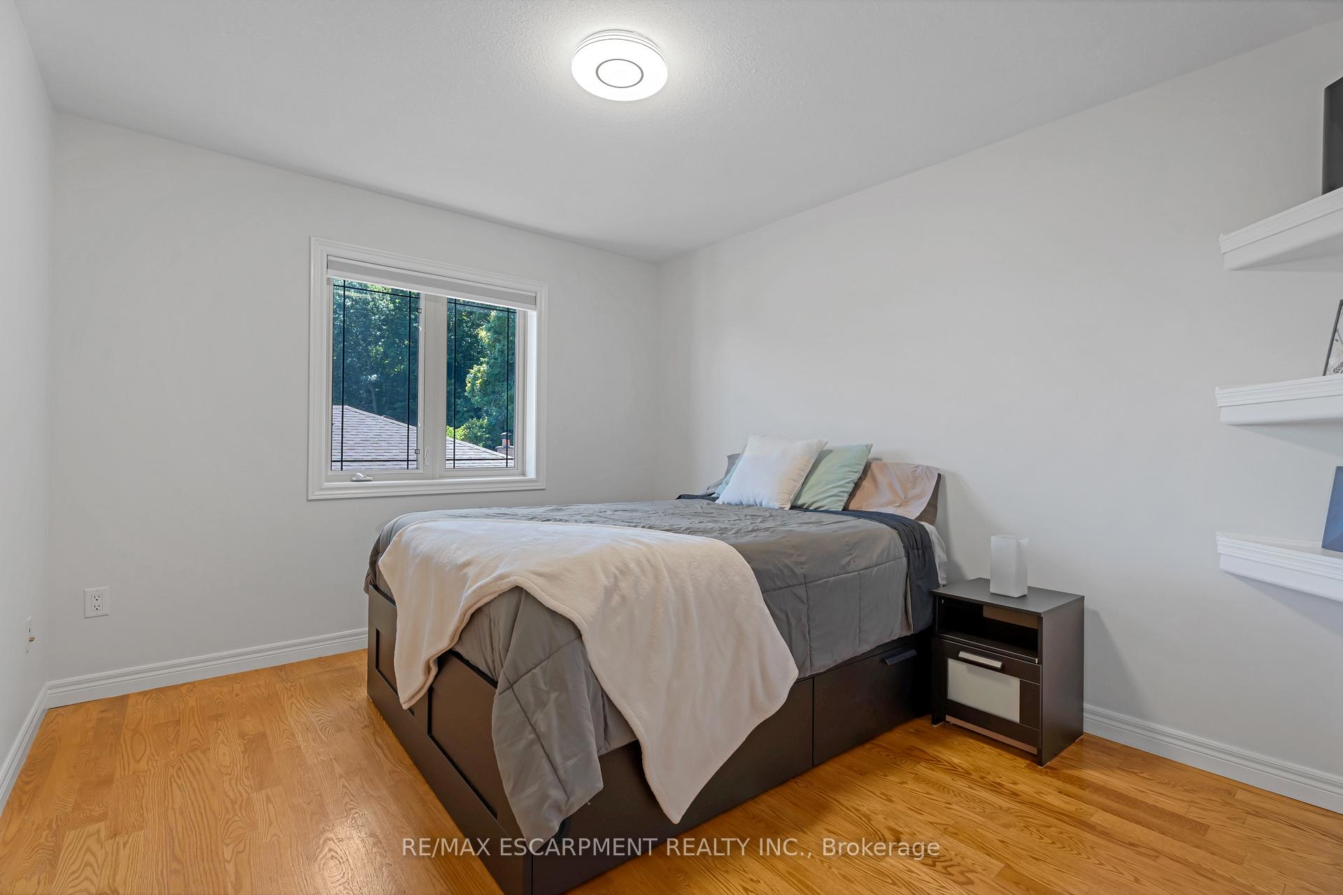 Custom built in 2003 and nestled beneath the Niagara Escarpment on a quiet crescent, this meticulously maintained 4+1 bedroom home offers breathtaking views and a tranquil, cottage-like setting. Soaring ceilings, oversized windows, and rounded corners add elegance and natural light throughout. The freshly painted interior features new kitchen appliances with gas cooktop option, all under a 5-year warranty. The spacious primary bedroom features a two-sided gas fireplace shared with the spa like ensuite creating the ultimate retreat. Walk-in closets in every bedroom, central vac, RO water at all sinks, and two fruit cellars enhance everyday living. The finished basement with 9ft ceilings, separate entrance, and roughed-in kitchen offers in-law or income potential. Step outside to a pie-shaped private lot backing onto lush green space with a multi-tiered waterfall and hot tuba true backyard oasis. The oversized exposed aggregate driveway fits 6 cars. Move-in ready and surrounded by nature, this home combines comfort, luxury, and lifestyle in one exceptional package.