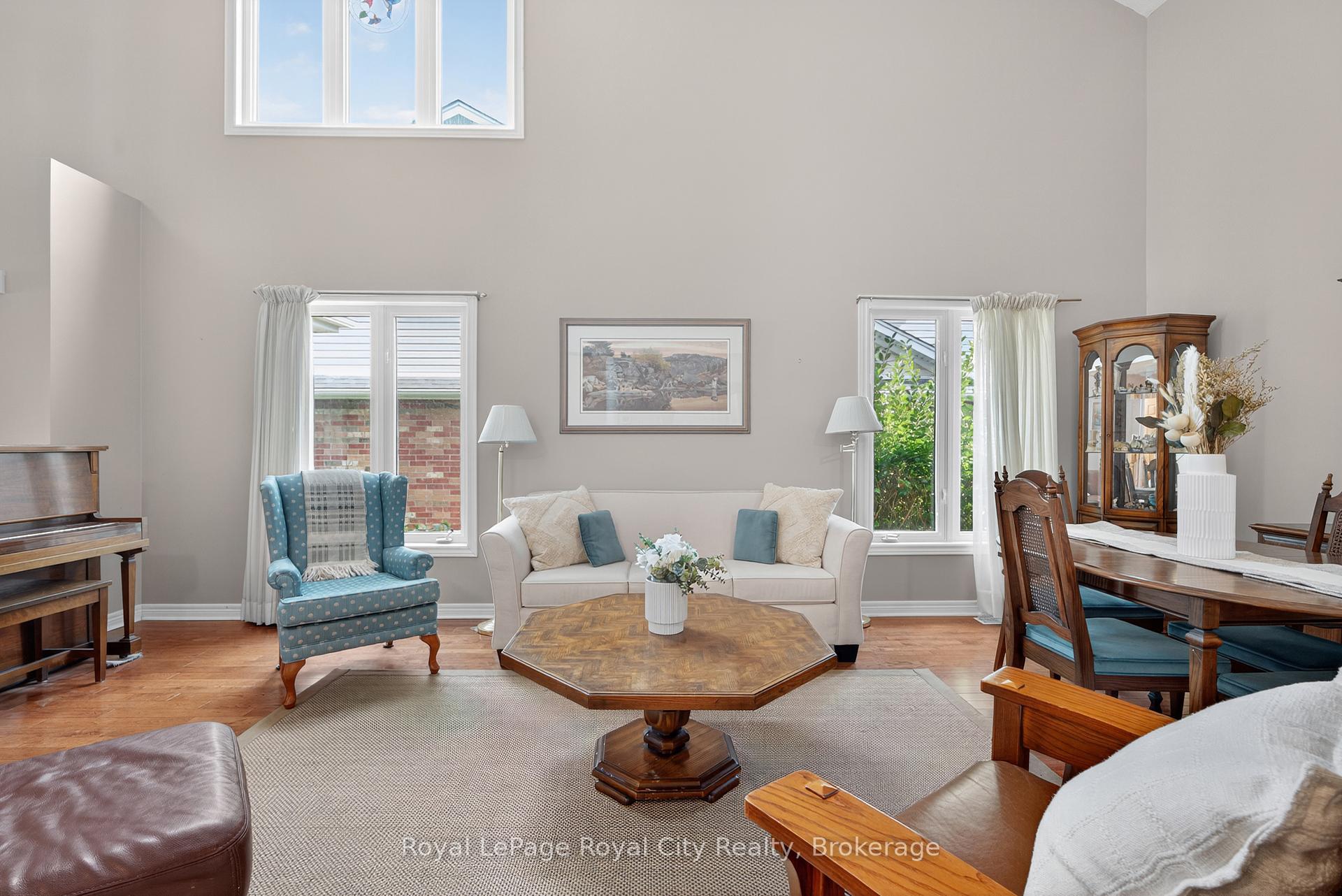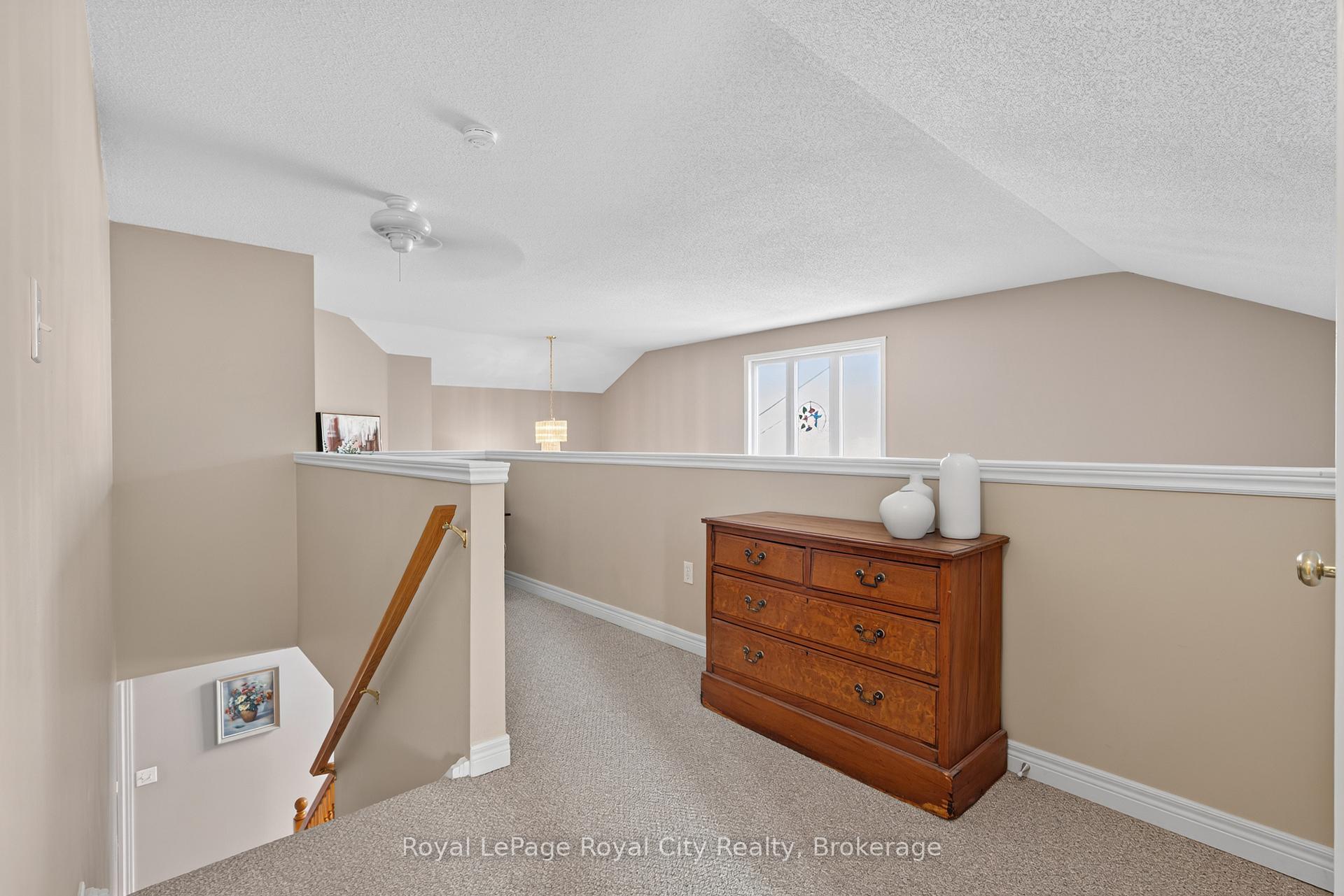 This end-unit semi-detached freehold bungaloft is a rare find in East End Guelph. With soaring ceilings, oversized windows, and sunlight streaming in from every angle, the home feels open, bright, and welcoming. The main-floor accessible primary suite, features a full ensuite, making everyday living easy and comfortable. You’ll also love the convenience of main-floor laundry, plus a den that offers flexible space perfect as a home office, cozy sitting room, or even a potential third bedroom. Upstairs, the loft features a bright bedroom with a walk-in closet, an inviting light-filled reading nook, and a full bathroom, providing comfort and versatility for family or guests. The home includes three full bathrooms, accommodating everyone with ease. The living area is spacious and practical, while the cozy kitchen opens to the backyard via a sliding door perfect for casual meals or outdoor entertaining. Storage will never be an issue, with ample closets throughout and a double-car garage plus two driveway spots, totaling four parking spaces. The basement is partially finished and ready for your finishing touches giving you the opportunity to create additional living space exactly how you want it. Set in a friendly, welcoming neighbourhood, this home is surrounded by well-maintained homes and neighbours who look out for one another, creating a true sense of belonging. With schools, shopping including Grange & Victoria Plaza and walking trails nearby, this is a place where you can settle in for the long term and enjoy all stages of life in one home. 22 Thornton Street isn’t just a home – its where convenience meets comfort, with a little extra sparkle.