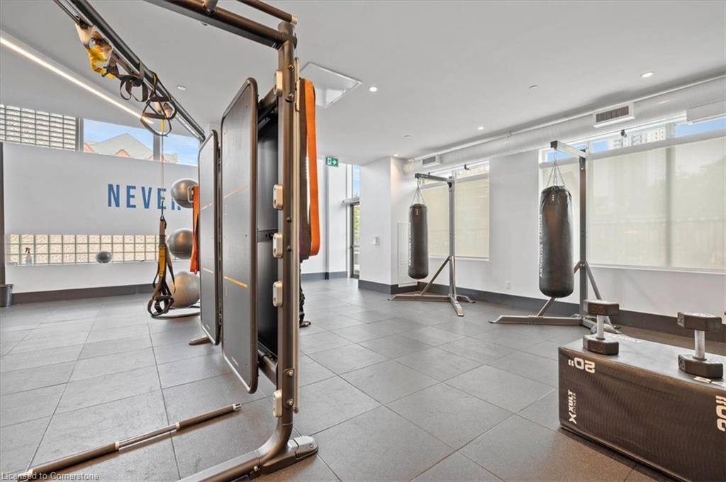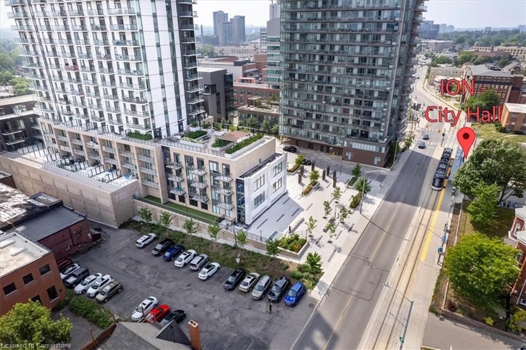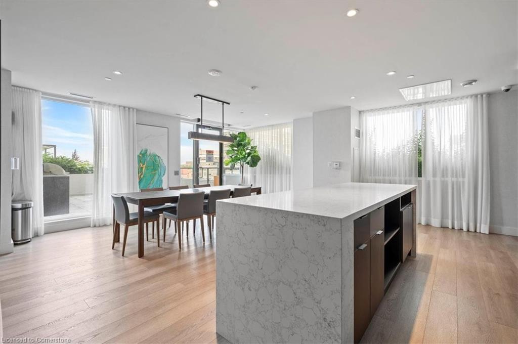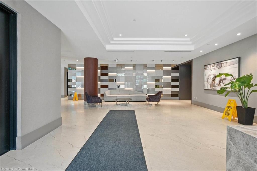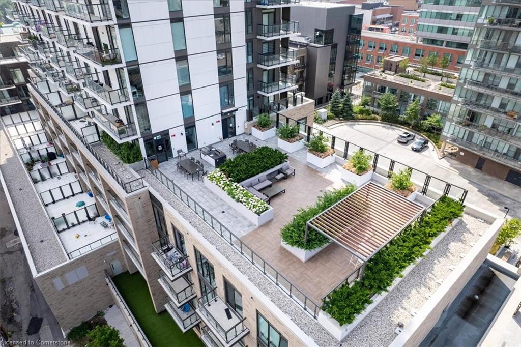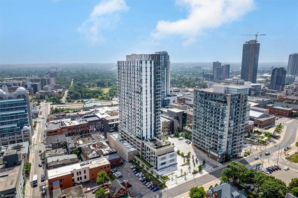 One of the most successfully integrated condo buildings in the downtown core, reconstructing the John Forsyth Shirt Company, Duke Street level façade & capturing the historic landmark while moving the city forward with urban renewal. The building amenities are impressive; a clean and modern lobby with a full time concierge service offers comfortable sitting spaces and opens up to the ground level state of the art fitness centre, complete with heavy bags and exercise bikes and surrounded by windows connecting you to the outdoors. Truly unique is your ability to take your fitness journey outside to the 25th floor, roof top running track while you enjoy the stunning 360 degree views. When its time to relax or entertain larger groups, take advantage of the 5th floor, furnished patio and party room, overlooking the Duke street forecourt. The building also includes car wash station, dog wash station, and artificial turf dog walk. This one bedroom unit layout maximizes utility of the space and achieves a grand feel with the tall ceilings, open concept, and large windows. The eat in kitchen with centre island, contemporary cabinetry, stainless steel appliances, and quartz countertops is open to the versatile dinette and living room space, which sits parallel to the bedroom and both overlook the 122 sq ft private patio; bringing the total size of the unit to 769 sq ft. The interior floor is finished in luxury vinyl plank and the patio with large pavers. The unit is located to offer a great view of the rich DTK architectural facades and Bobby O’Brien’s patio with the live entertainment. Short walking distance to Victoria park, charming cafés, popular restaurants, boutique shops, and LRT. Downtown Kitchener is changing to become a popular urban centre and now is the time to take advantage. Don’t miss out!