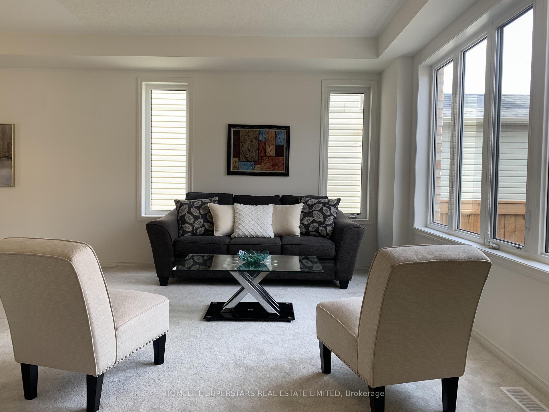 Beautiful Two Storey End unit Townhouse like Semi, like new hardly lived in, New Storybrook Subdivision in Beautiful Fergus, Bigger than some of the detached houses and that too at much lower price and full double garage as well.Prestine condition, Seeing is Believing, Very spacious 2100 sqft, with Three Big Bedrooms, Three Washrooms and Full size Double Garage plus you can park another car on the driveway. Also there is visitor parking right in front of the garage. Stunning layout with 9ft Ceiling as you enter. On the right is Living/Dining combo and on the left is Wide Staircase up. Moving forward you have Beautiful open concept Upgraded Kitchen with Tall White Cabinetry, Two tone Kitchen with light grey island, SS Appliances. Huge island faces Breakfast area and open concept Family room with Gas Fireplace and Walk out to the Fenced Patio. Laundry room on the main floor and entrance to Double Garage from inside. Upstairs you have Huge primary Bedroom with 5pc ensuite and huge W/I Closet, Two spacious bedrooms and another Full washroom.Lots of extra Windows and abundant Sunshine. Great practical Layout. Extra Visitor’s parking right in front of the Garage. AC already installed. Upgraded premium brick house, Beautifully staged. Huge Unfinished Basement presents endless opportunities for future expansion. Photos won’t do justice, you have to come and see it. Just 5 min drive to Wallmart, Home hardware, Canadian tire, Freshco, Lcbo, Downtown Fergus , Restaurants, New Hospital , Beautiful Elora and other amenities. New elementary school already opened in September 2025.