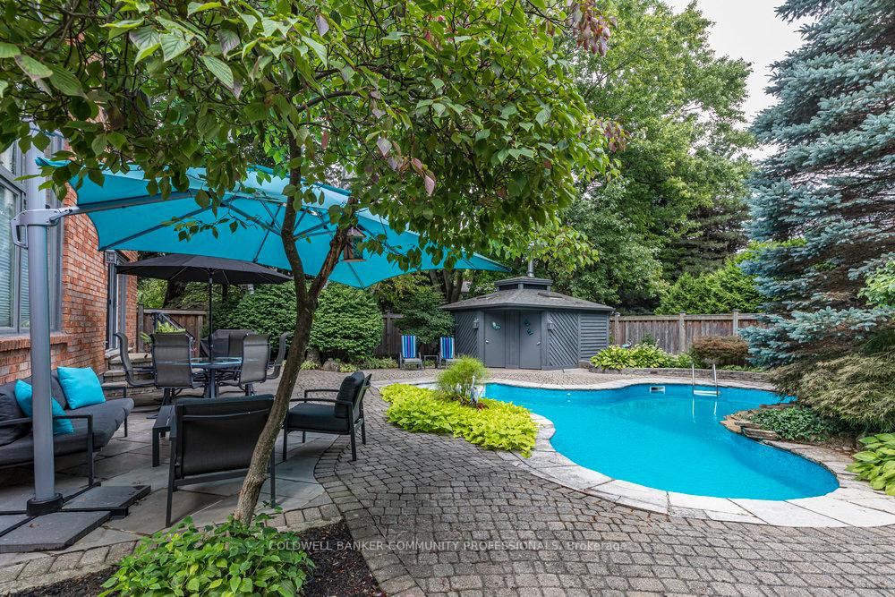 A home of classic distinction – 223 Briar Hill Crescent is a timeless family residence. Its stately brick façade, arched windows, & gabled roofline showcase refined Colonial-inspired architecture that feels both elegant & welcoming. Thoughtful updates, including a double garage and a beautifully landscaped front entry enhance its curb appeal in a mature, tree-lined setting. Inside, the traditional floorplan was designed with both living & entertaining in mind. The sunken living room offers a warm welcome, while the dramatic great room impresses with open-to-above ceilings. The formal dining area provides the perfect setting for family gatherings, while the updated kitchen & convenient mudroom adds everyday functionality. Upstairs, 4-bedrooms, 2-full baths, plus a dedicated home office provide the versatility that families need. The lower level expands the living space with a large rec room, den, full bath, & abundant storage. Outdoors, the fully fenced yard is a private retreat surrounded by mature trees. An inground pool with waterfall feature, pool shed/change room create the perfect summer escape, while interlock pathways & patio space complete this inviting setting. Ancaster Heights is a coveted neighbourhood, known for its executive homes, and quiet, family-friendly atmosphere. Minutes to the Ancaster Village, Meadowlands shopping center, & top-rated schools, it combines convenience with upscale charm. Easy access to HWY 403, and the LINC, makes it a breeze for commuters.