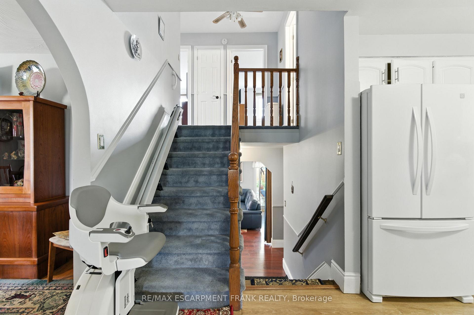 Pride of ownership shines throughout this beautifully maintained 4-level backsplit with 4 beds and 2 full baths, offering space, comfort, and convenience with a magnificent location. Set across from a large park, beside excellent schools, and minutes from highway access and trails, this home is set in a serene setting yet close to everything. Gorgeous gardens and a big front porch welcome you, complemented by a concrete drive and attached 1.5-car garage with inside entry from the basement. Inside, natural light fills the generous living and dining rooms, perfect for gatherings. The spacious kitchen is ideal for family life, while upstairs you’ll find three large bedrooms and a full bath with a double vanity. The lower level offers a great family room with fireplace, and walkout to the backyard, and complemented with a bedroom and full bath and separate side entrance. The basement adds even more functionality with a rec room, full laundry room, cold room, and a massive crawl space for storage, along with garage access. Out back, enjoy lush flower beds, a concrete patio with retractable awning, shed, and a covered sitting area designed for comfort and relaxation. A truly special home where every detail has been cared for, ready for its next proud owners. Everything is taken care of with the shingles (2025) just replaced, furnace + central air (2017), and all the appliances recently purchased, you can move in and not worry about a thing!