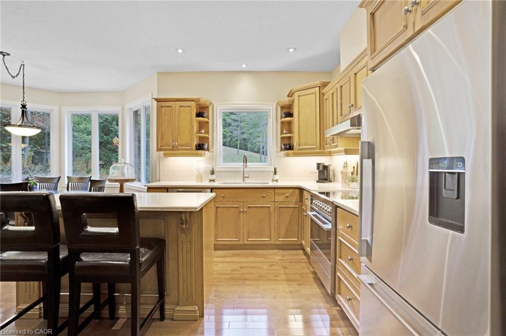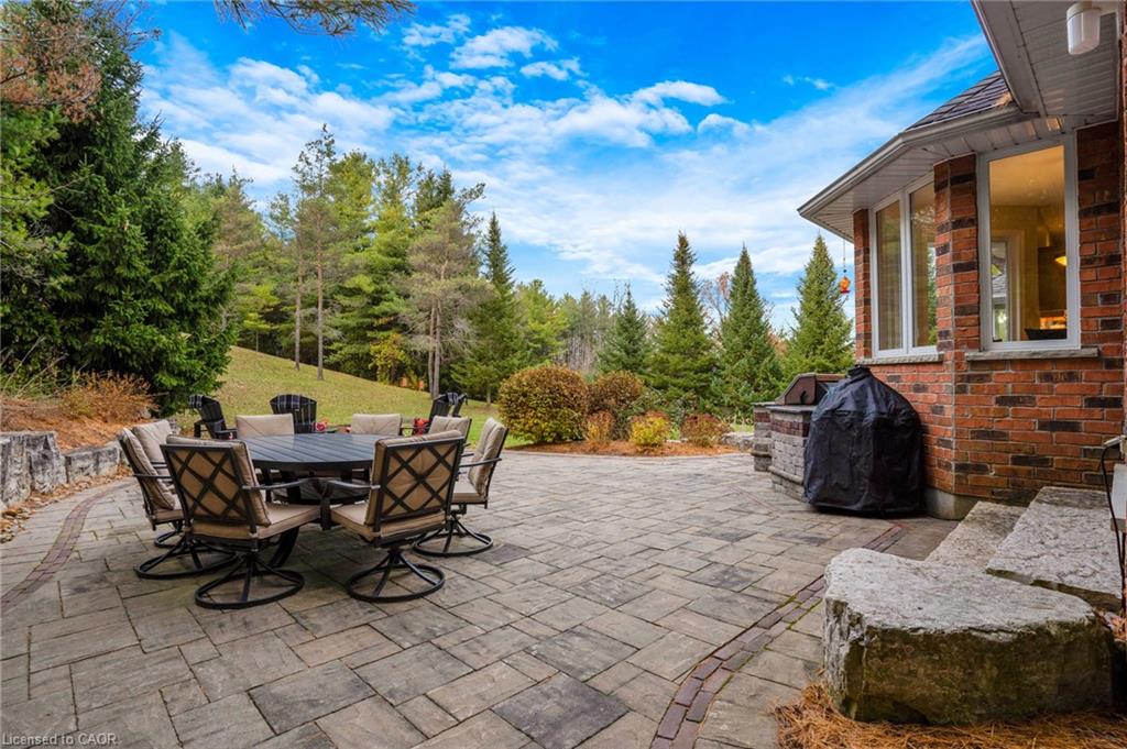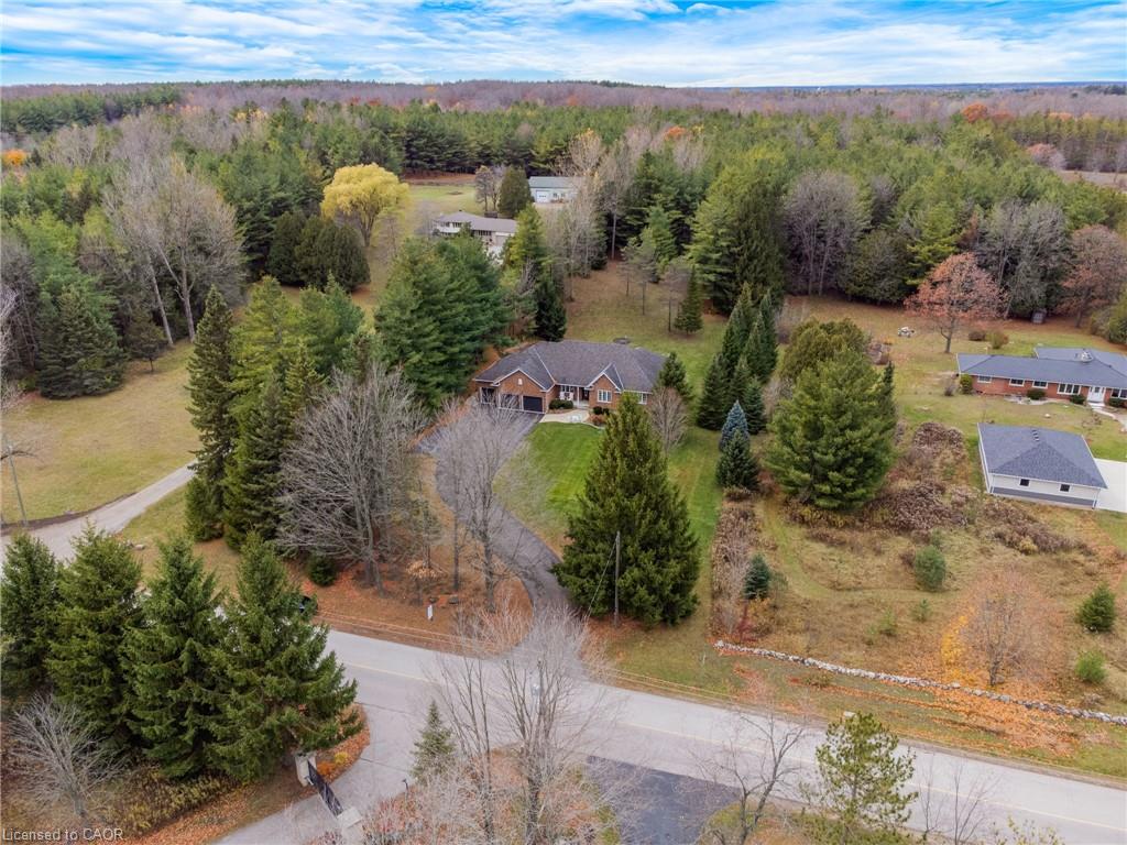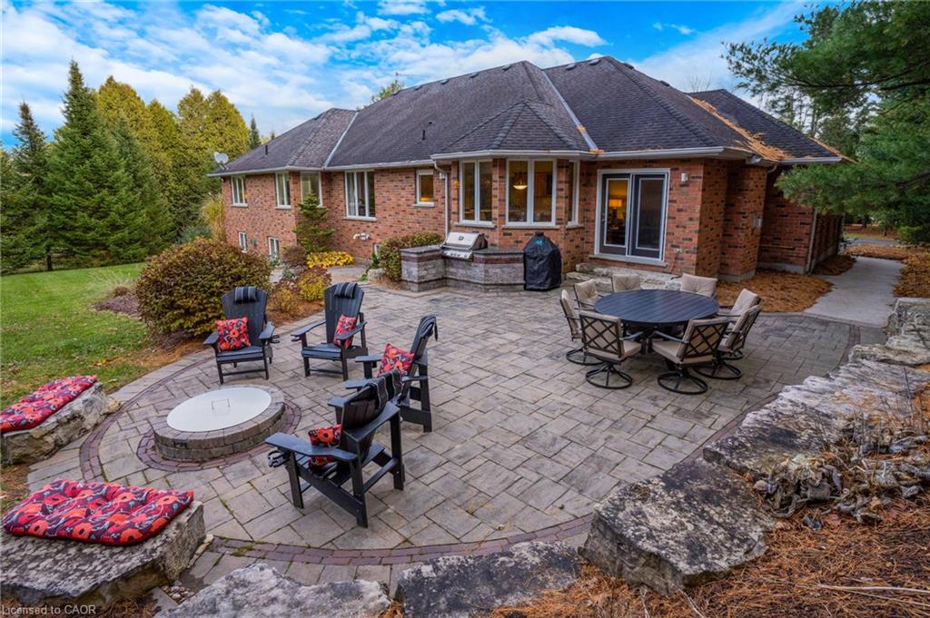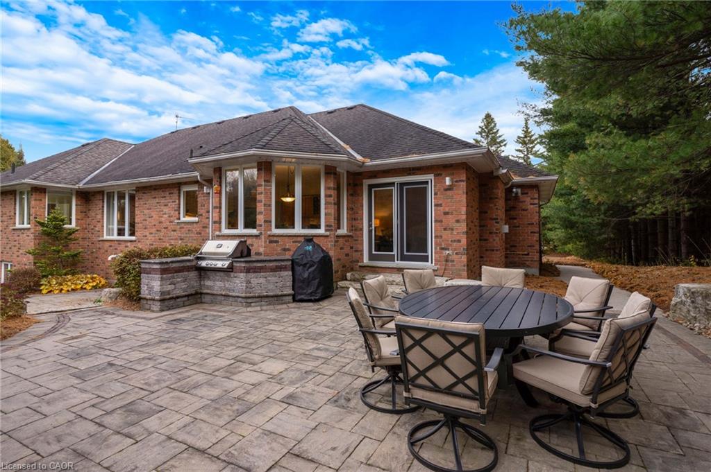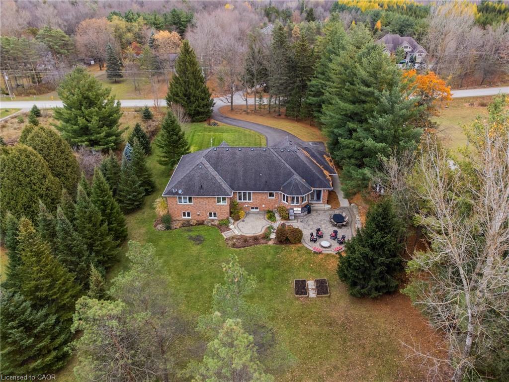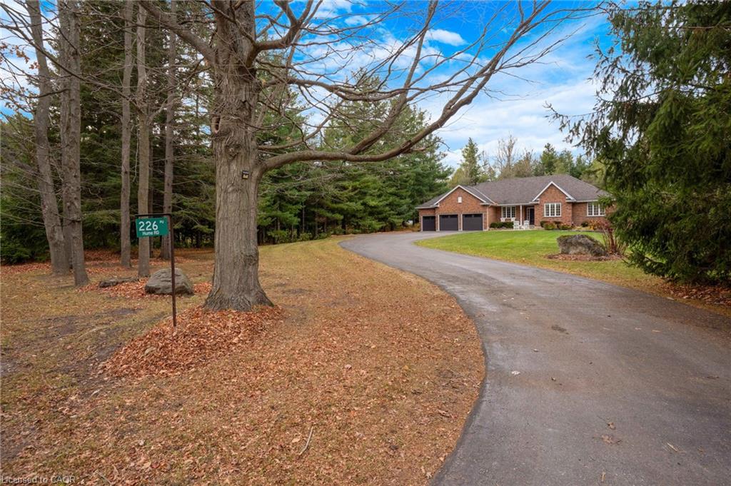 Are you seeking something that is unique and custom? Then book your showing at 226 Hume Road, a Sloot-built bungalow nestled on 4.5 acres of privacy, nature, and refined living. The main floor is almost 2,500 SF and features 9-FT ceilings & fully finished walk-up basement offering another 2,300 SF. Upon entry, the main floor has open-concept living and dining area with hardwood floors. The spacious kitchen has maple cabinetry, quartz counters, Fisher & Paykel appliances, an island and a Miele dishwasher. The adjacent dinette is open to the family room with a fireplace plus a garden door to the exterior patio. The east wing houses four bedrooms, including a generous primary suite with a 4-piece ensuite—complete with heated floors, a separate soaker tub, barrier-free shower, and a walk-in closet. On the main floor you’ll also find the 4-piece family bath , a 2pc bath, laundry w/inside entry from the garage. The finished basement is incredible offering many features; A Rec Room w/fireplace, pool table, enclosed gym, wet bar, drinks fridge, and Fisher & Paykel dishwasher, a large gaming area or perfect space for your hobbies, a 5th bedroom (currently an office), a full bathroom (2025), cold room, utility/storage space, and a hallway leading to the walk-up from the garage. The driveway has parking for 8–10 vehicles, plus a triple car garage w/upper storage, a man door, its own furnace, and a convenient walk-up to the basement. The lot offers 156 feet of frontage, with approximately 2 acres of cleared land and 2.5 acres of forested trails. A stamped concrete walkway leads you to a two-tiered patio w/built-in BBQ and fire pit, ideal for entertaining. Whether you’re seeking space, privacy, or a home that blends elegance with functionality, 226 Hume Road delivers it all, on one of Puslinch’s most coveted roads. Please take a moment to review the marketing video, floor plans, and 360-degree photography to get a better grasp of this exceptional property.