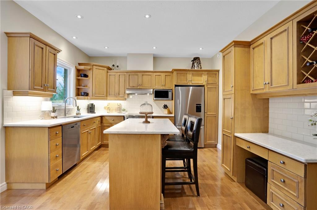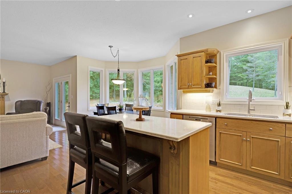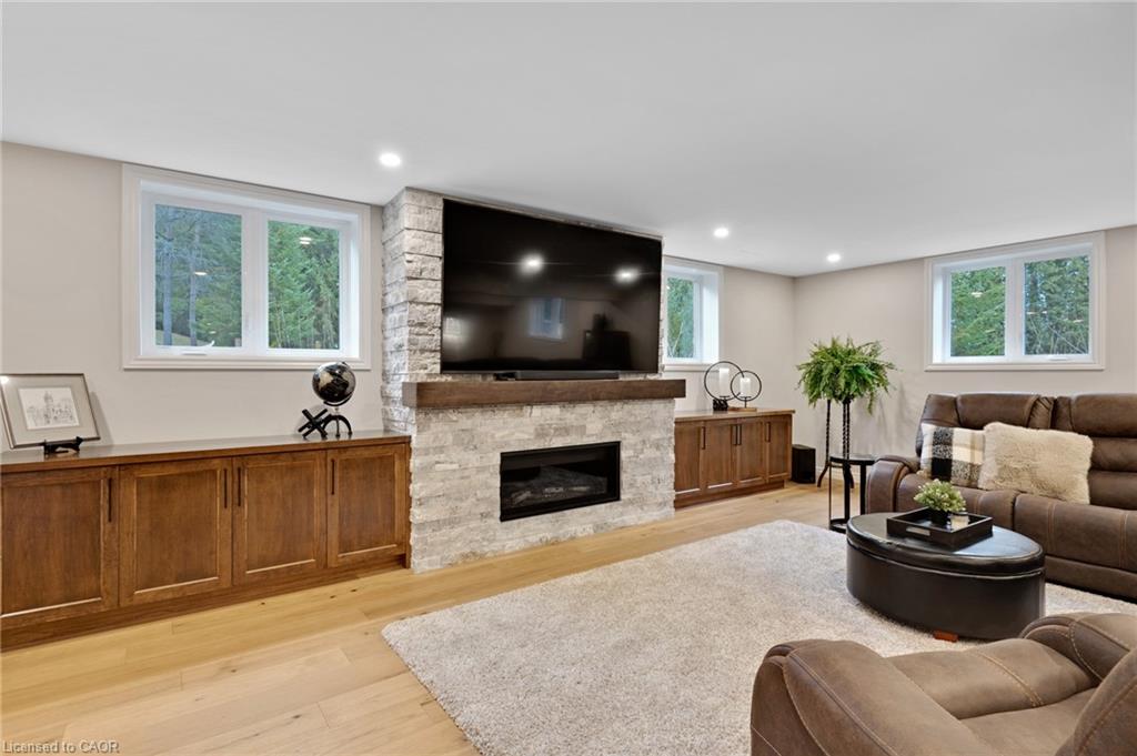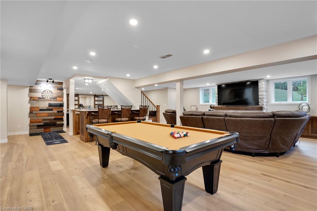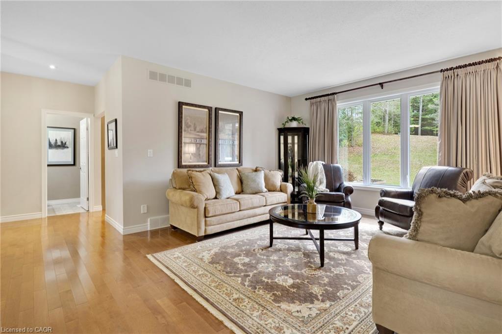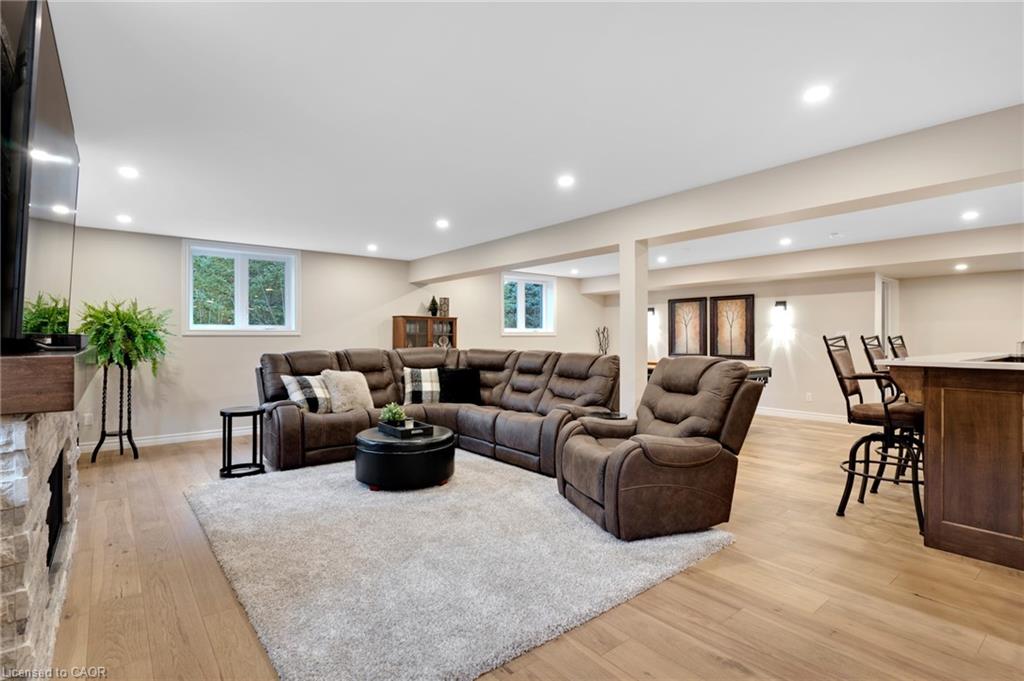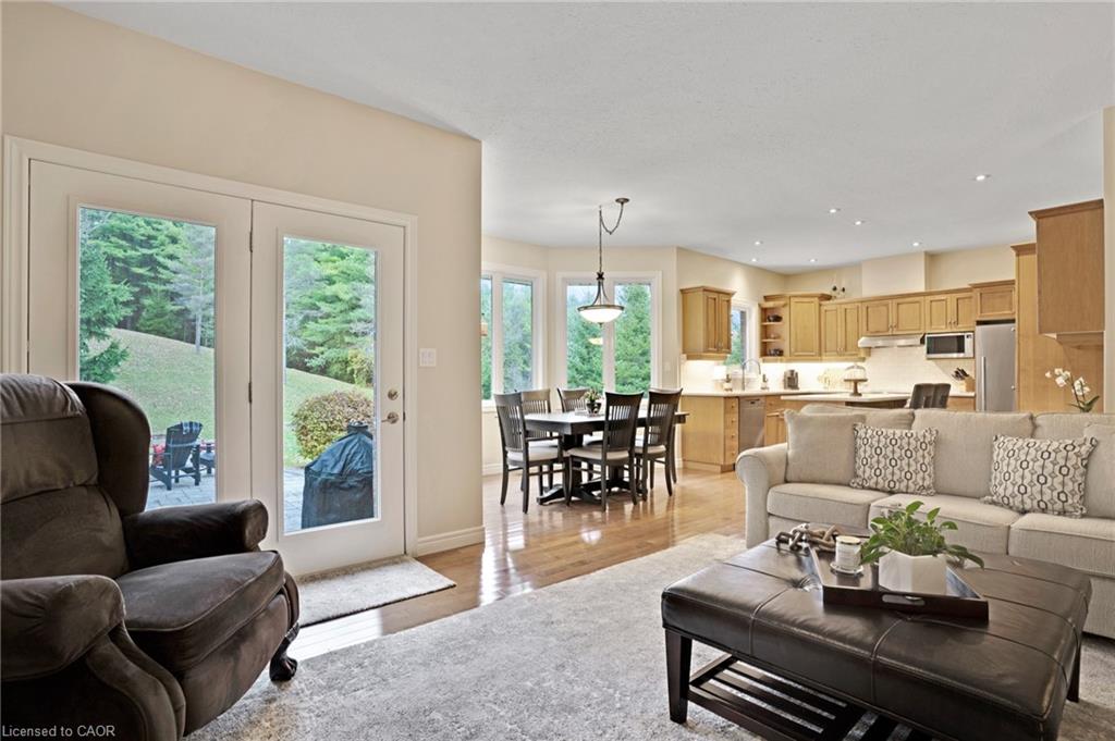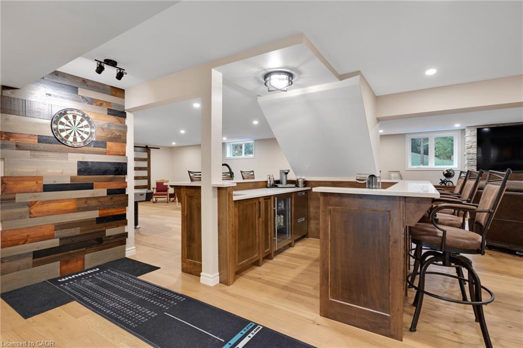 Are you seeking something that is unique and custom? Then book your showing at 226 Hume Road, a Sloot-built bungalow nestled on 4.5 acres of privacy, nature, and refined living. The main floor is almost 2,500 SF and features 9-FT ceilings & fully finished walk-up basement offering another 2,300 SF. Upon entry, the main floor has open-concept living and dining area with hardwood floors. The spacious kitchen has maple cabinetry, quartz counters, Fisher & Paykel appliances, an island and a Miele dishwasher. The adjacent dinette is open to the family room with a fireplace plus a garden door to the exterior patio. The east wing houses four bedrooms, including a generous primary suite with a 4-piece ensuite—complete with heated floors, a separate soaker tub, barrier-free shower, and a walk-in closet. On the main floor you’ll also find the 4-piece family bath , a 2pc bath, laundry w/inside entry from the garage. The finished basement is incredible offering many features; A Rec Room w/fireplace, pool table, enclosed gym, wet bar, drinks fridge, and Fisher & Paykel dishwasher, a large gaming area or perfect space for your hobbies, a 5th bedroom (currently an office), a full bathroom (2025), cold room, utility/storage space, and a hallway leading to the walk-up from the garage. The driveway has parking for 8–10 vehicles, plus a triple car garage w/upper storage, a man door, its own furnace, and a convenient walk-up to the basement. The lot offers 156 feet of frontage, with approximately 2 acres of cleared land and 2.5 acres of forested trails. A stamped concrete walkway leads you to a two-tiered patio w/built-in BBQ and fire pit, ideal for entertaining. Whether you’re seeking space, privacy, or a home that blends elegance with functionality, 226 Hume Road delivers it all, on one of Puslinch’s most coveted roads. Please take a moment to review the marketing video, floor plans, and 360-degree photography to get a better grasp of this exceptional property.