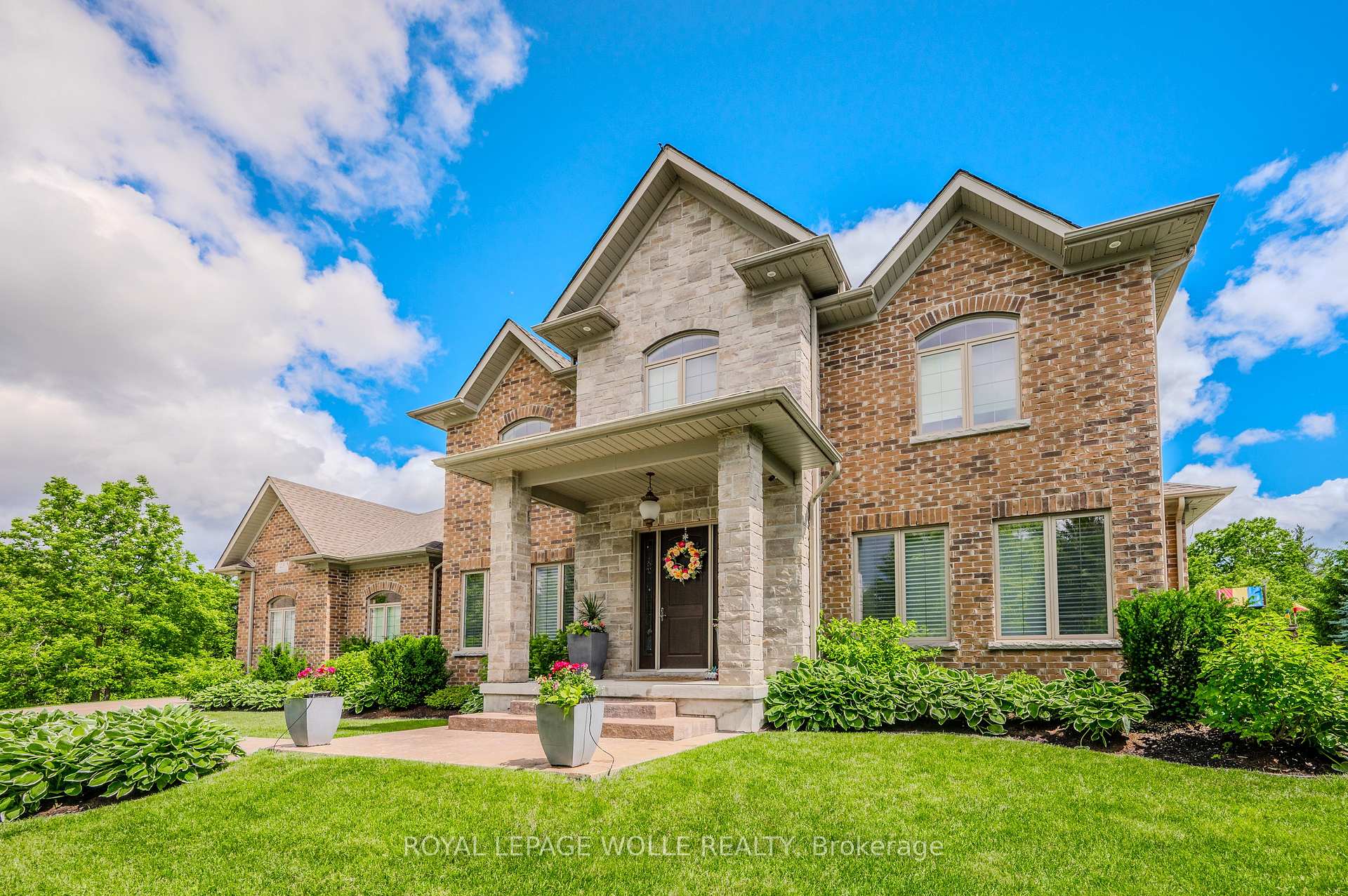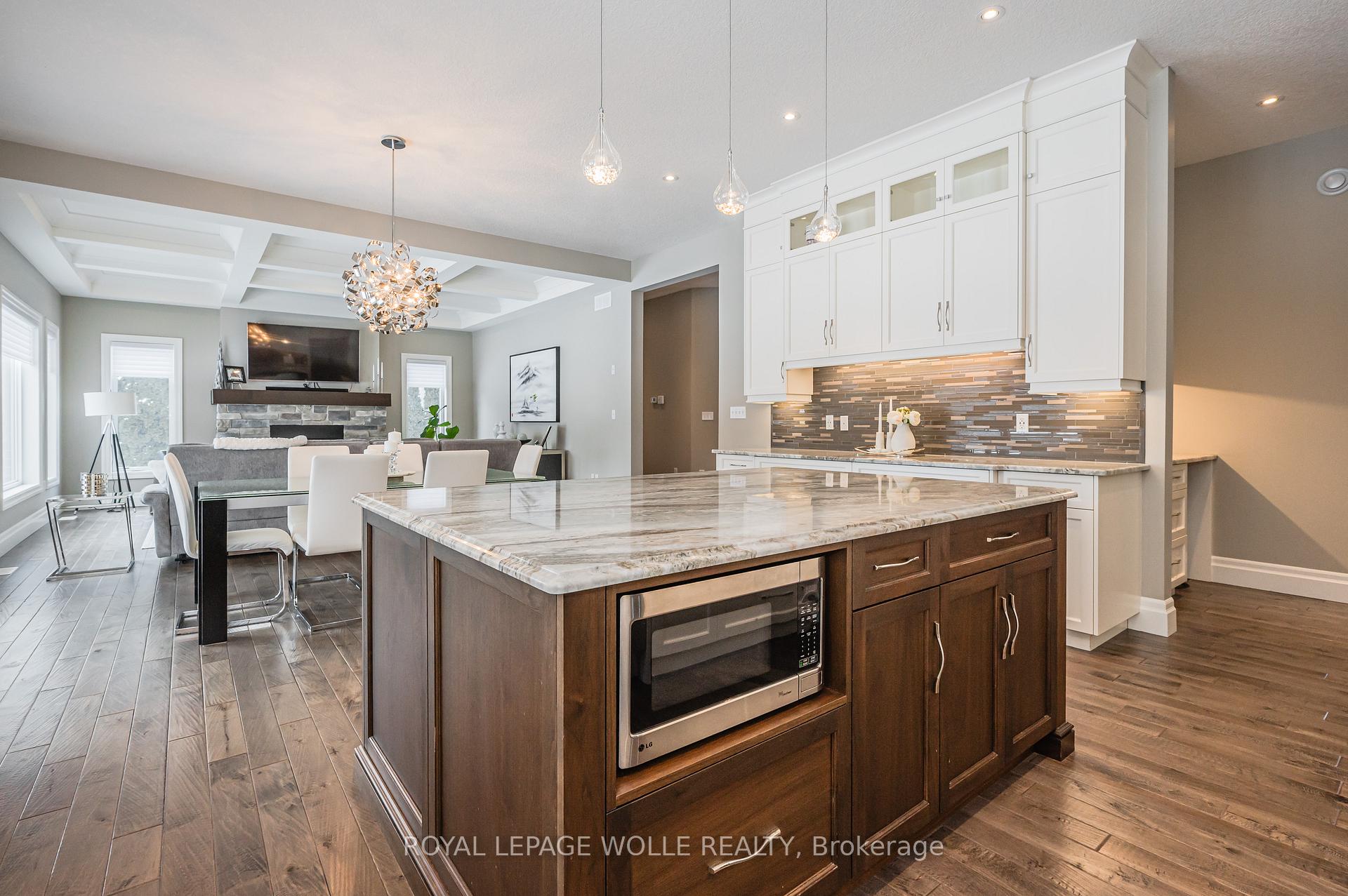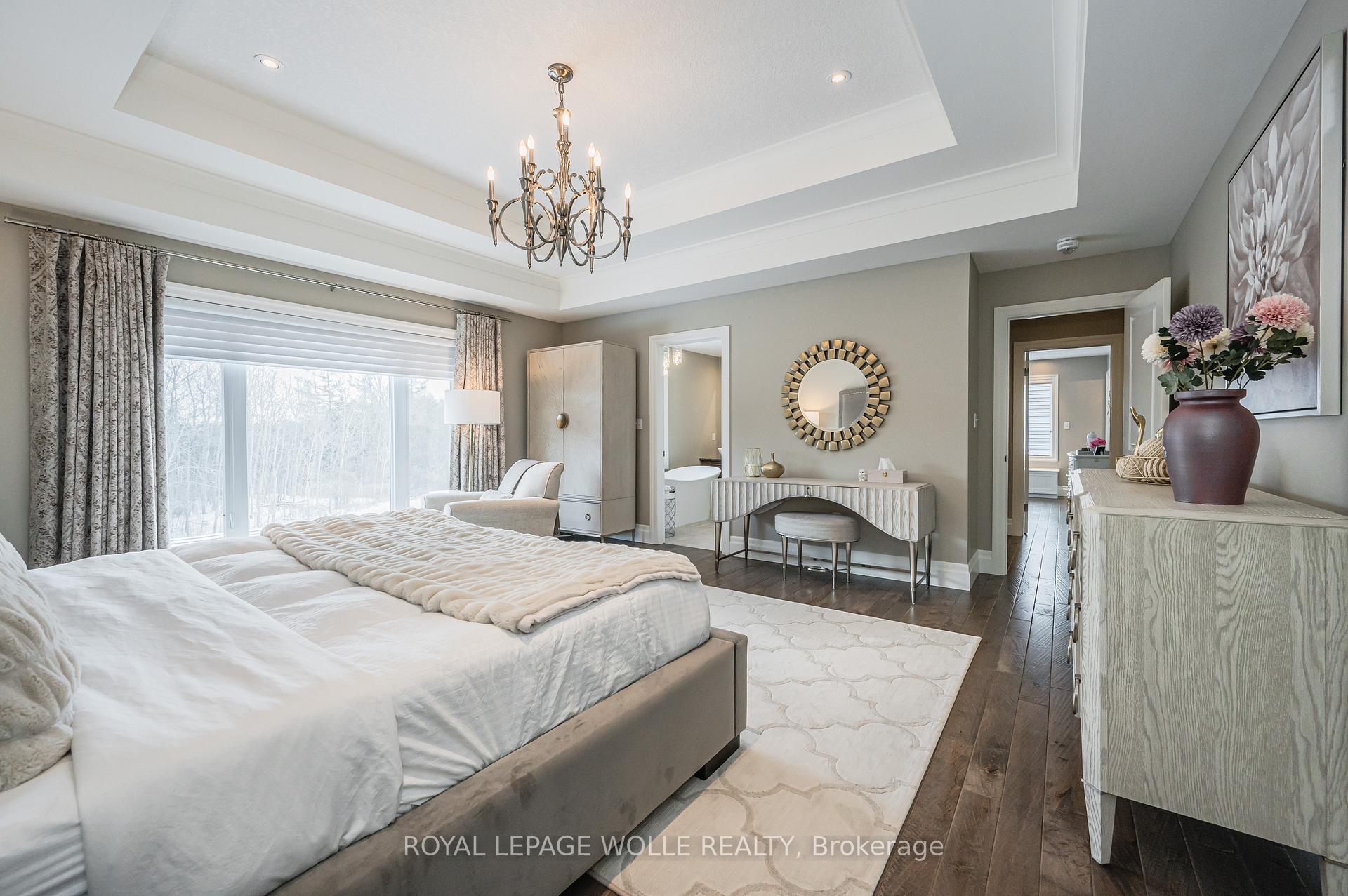 This 4+1 bed/4.5 bath home is set upon a SPRAWLING 0.88-acre RAVINE TREED LOT. This CUSTOM-BUILT home boasts 5851.91 fully finished square feet. Enjoy the grandeur of the front stone/brick exterior w/TRIPLE CAR GARAGE. A front foyer is flanked by a formal living room & distinguished dining room. The main floor unfolds with PREMIUM HAND-SCRAPED HARDWOOD FLOORS, leading to the family room adorned with a COZY GAS FIREPLACE, complete with a STONE SURROUND MANTLE & COFFERED WAFFLE CEILING. Towering 10-FOOT CEILINGS accentuated by 9-foot 4 hinged doors, windows w/ENCHANTING VIEWS of the expansive backyard retreat. The CUSTOM CHERVIN KITCHEN exudes a two tone theme, featuring a custom WALNUT WOOD CENTER ISLAND and CEILING-HEIGHT TALL CABINETRY. High-end THERMADOR STAINLESS APPLIANCES, incl. a 6-burner gas stove, elevate the culinary experience, while a MOSAIC TILE backsplash adds a touch of sophistication. The kitchen seamlessly flows into a Butler’s Servery & WALK-IN PANTRY. A main floor den/office w/custom built-ins is complemented by a convenient 2-piece powder room, main floor laundry, & mudroom w/garage access. Ascend the IRON-RAILED HARDWOOD stairs where the opulent primary bedroom awaits. Hand Scraped Hardwood flows through the 2nd floor. A custom double tray ceiling & walk-in closet w/organizing systems & the luxuriously appointed ensuite beckons with a FLOATING TUB, oversized glass-enclosed walk-in shower, & double vanity. A second bedroom w/ensuite bath & two other bedrooms sharing a JACK’N’JILL BATHROOM. The recently finished lower level offers a large additional living area w/5th bedroom & 3pc bath & games/media area with space for a home gym or hobby room; a convenient sep. walk-up access for ideal multigenerational living with a rough-in for a full kitchenette & 2nd washer/dryer rough-in. A rare opportunity to own a home that epitomizes the pinnacle of modern living. Situated close to 401 ACCESS and mere minutes from an array of shopping amenities.