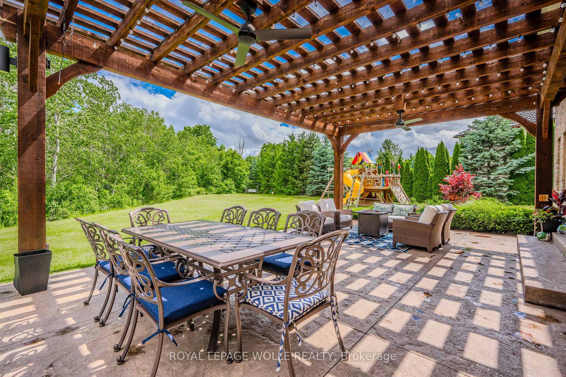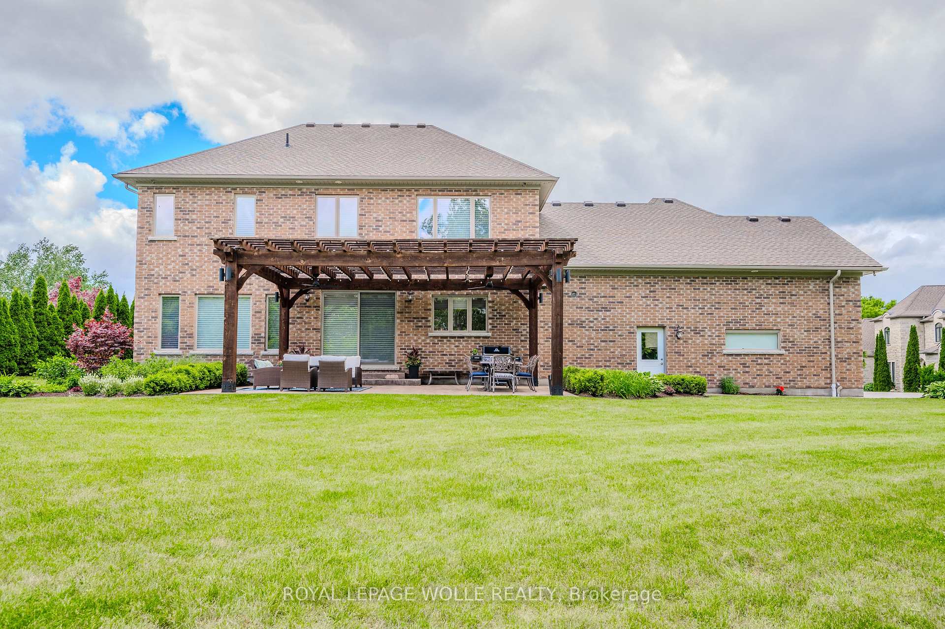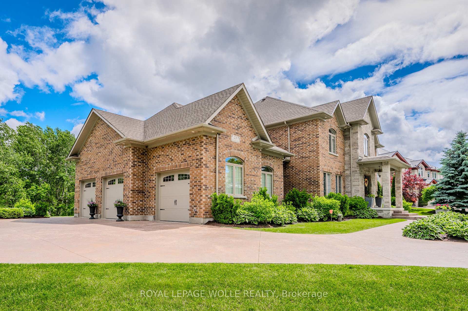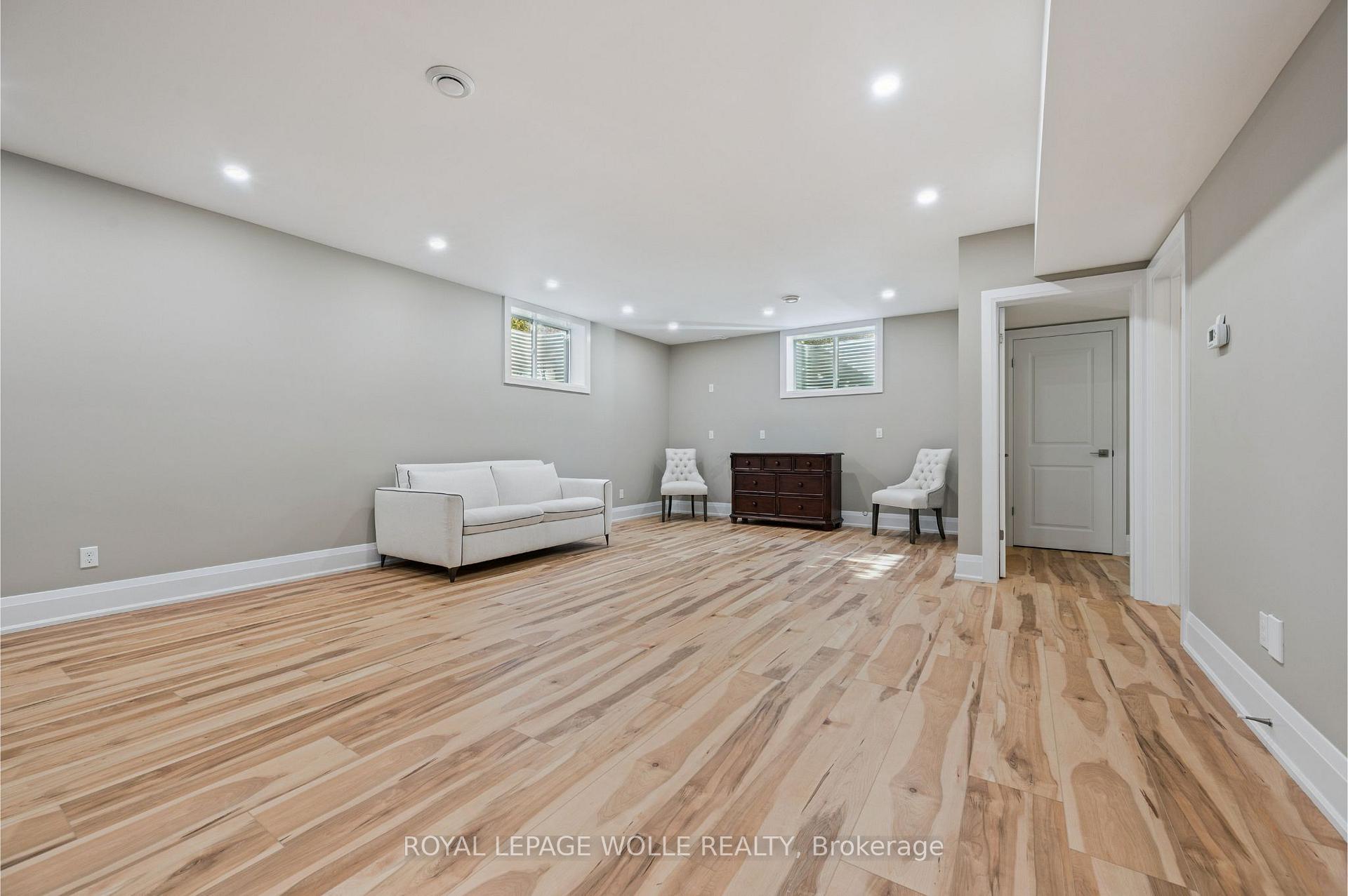 This 4+1 bed/4.5 bath home is set upon a SPRAWLING 0.88-acre RAVINE TREED LOT. This CUSTOM-BUILT home boasts 5851.91 fully finished square feet. Enjoy the grandeur of the front stone/brick exterior w/TRIPLE CAR GARAGE. A front foyer is flanked by a formal living room & distinguished dining room. The main floor unfolds with PREMIUM HAND-SCRAPED HARDWOOD FLOORS, leading to the family room adorned with a COZY GAS FIREPLACE, complete with a STONE SURROUND MANTLE & COFFERED WAFFLE CEILING. Towering 10-FOOT CEILINGS accentuated by 9-foot 4 hinged doors, windows w/ENCHANTING VIEWS of the expansive backyard retreat. The CUSTOM CHERVIN KITCHEN exudes a two tone theme, featuring a custom WALNUT WOOD CENTER ISLAND and CEILING-HEIGHT TALL CABINETRY. High-end THERMADOR STAINLESS APPLIANCES, incl. a 6-burner gas stove, elevate the culinary experience, while a MOSAIC TILE backsplash adds a touch of sophistication. The kitchen seamlessly flows into a Butler’s Servery & WALK-IN PANTRY. A main floor den/office w/custom built-ins is complemented by a convenient 2-piece powder room, main floor laundry, & mudroom w/garage access. Ascend the IRON-RAILED HARDWOOD stairs where the opulent primary bedroom awaits. Hand Scraped Hardwood flows through the 2nd floor. A custom double tray ceiling & walk-in closet w/organizing systems & the luxuriously appointed ensuite beckons with a FLOATING TUB, oversized glass-enclosed walk-in shower, & double vanity. A second bedroom w/ensuite bath & two other bedrooms sharing a JACK’N’JILL BATHROOM. The recently finished lower level offers a large additional living area w/5th bedroom & 3pc bath & games/media area with space for a home gym or hobby room; a convenient sep. walk-up access for ideal multigenerational living with a rough-in for a full kitchenette & 2nd washer/dryer rough-in. A rare opportunity to own a home that epitomizes the pinnacle of modern living. Situated close to 401 ACCESS and mere minutes from an array of shopping amenities.