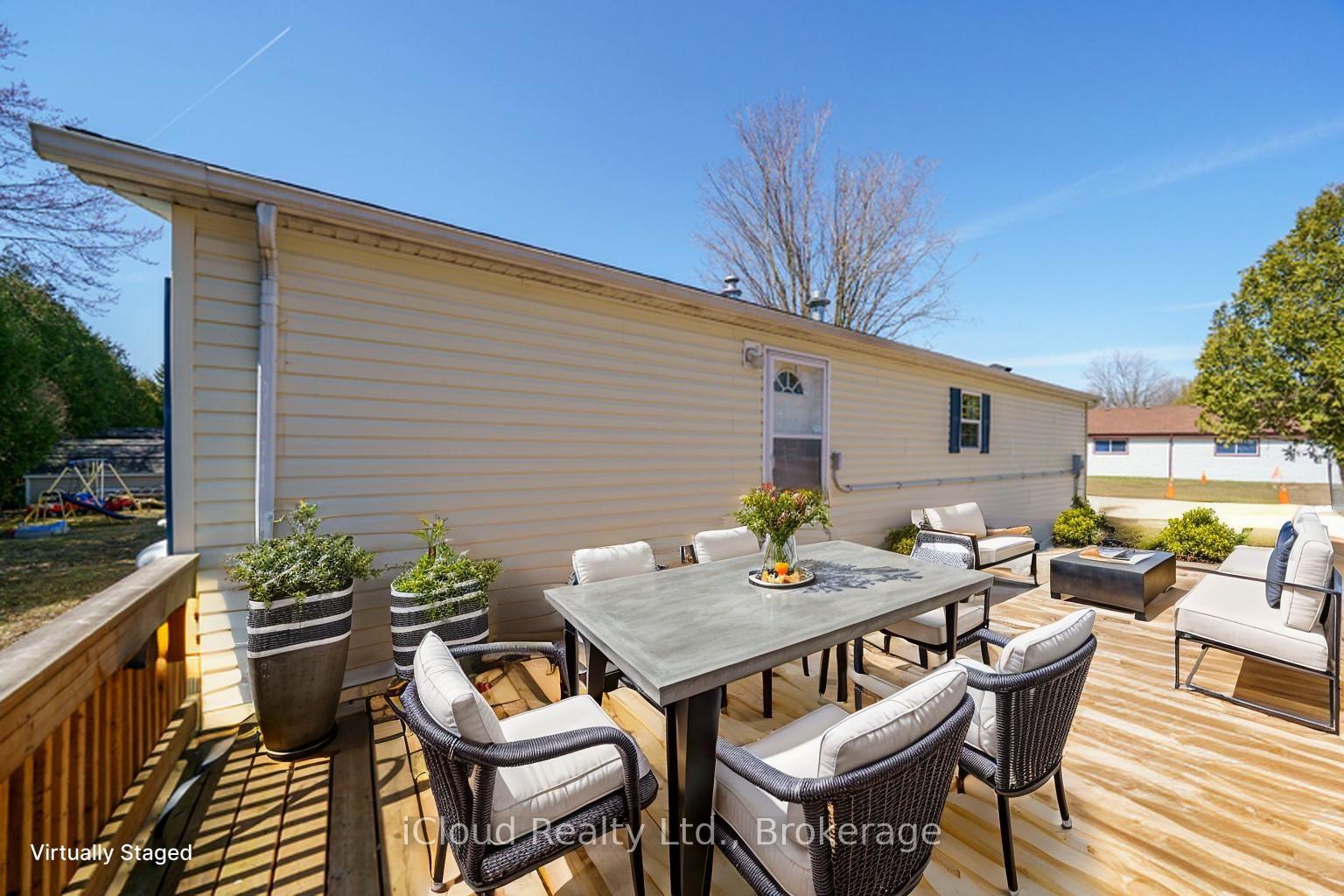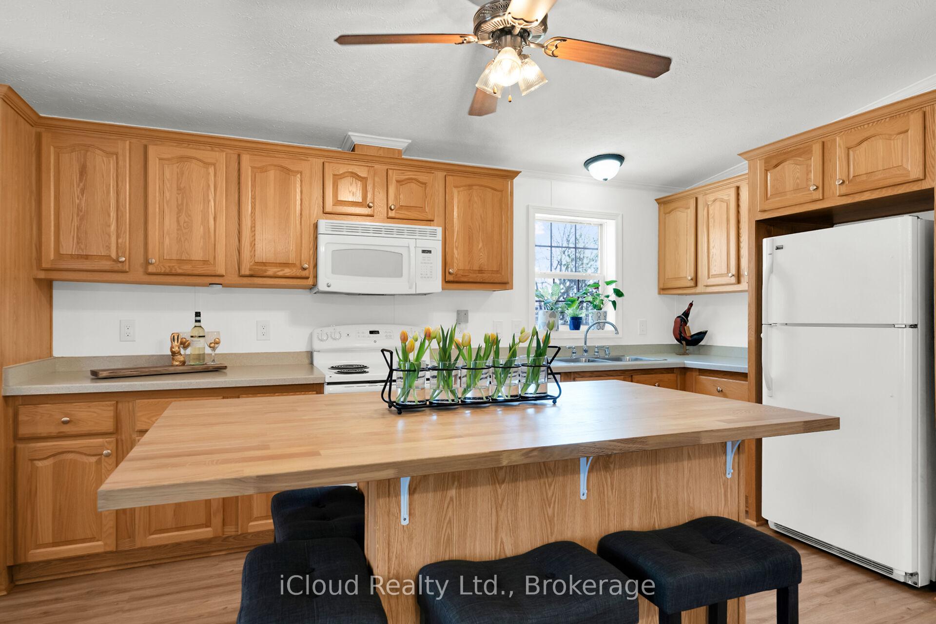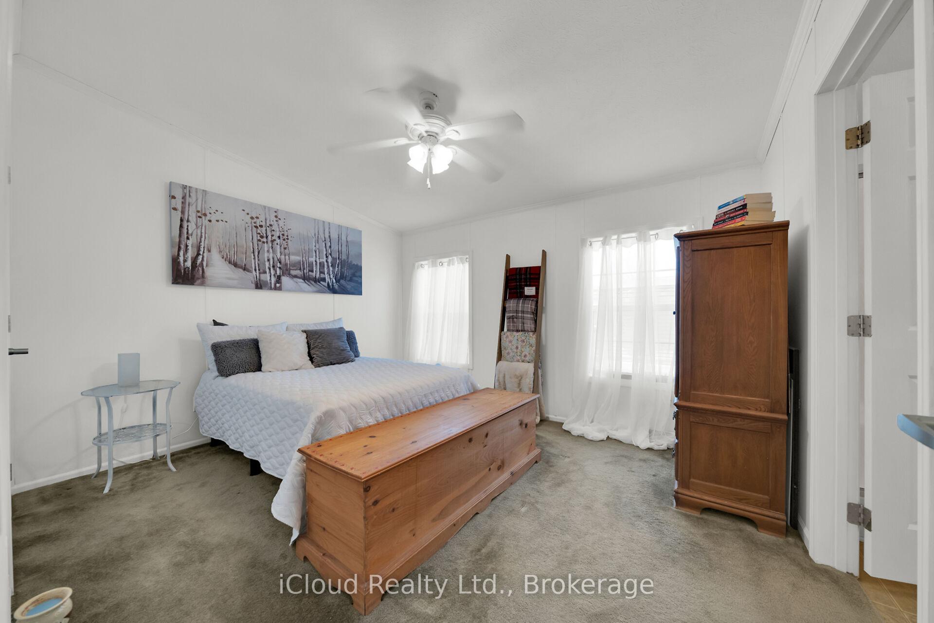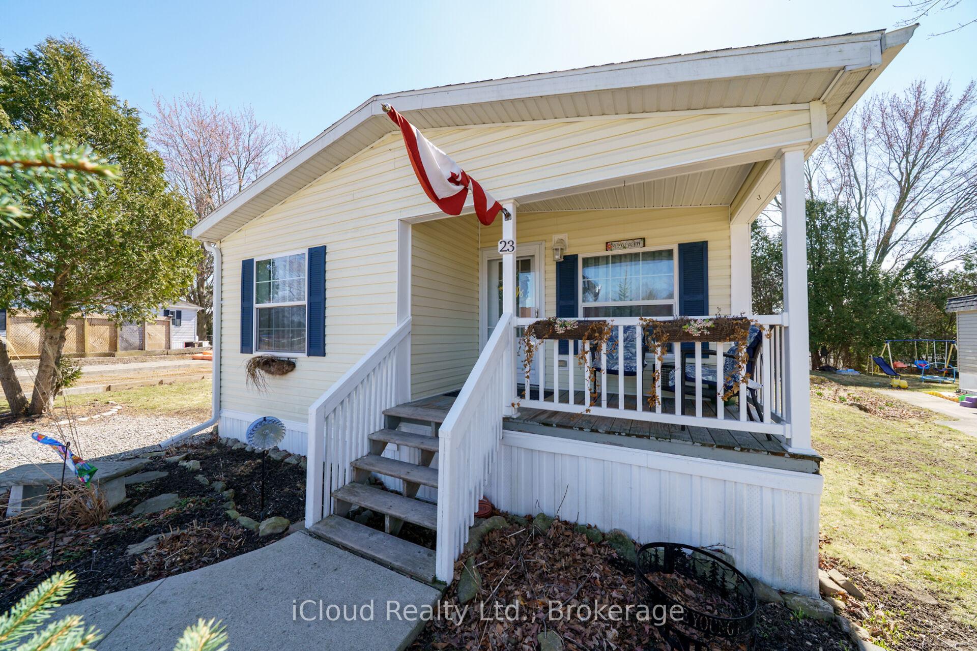 Welcome to the exquisite Beverly Hills Estates within the vibrant Parkbridge community! This charming 2-bedroom bungalow at 23 Macpherson is surrounded by beautifully landscaped perennial gardens and features a welcoming covered front porch. Step inside to discover a spacious open-concept layout highlighted by soaring cathedral ceilings, creating an inviting atmosphere. The kitchen is a chef’s dream, complete with a cozy breakfast nook, ample cabinetry, and generous countertop space. For even more functionality, a central island provides additional workspace while overlooking the sunlit living room. The home boasts two well-proportioned bedrooms with ceiling fans, with the primary suite featuring a three-piece ensuite and double closets for your convenience. An additional versatile room at the back of the house can serve as a third bedroom, office, playroom, craft space, workout area, or cozy sitting/T.V. room the possibilities are limitless! A beautifully finished laundry room offers access to the side yard, complete with a deck and two handy sheds. The property also includes a double driveway for ample parking. As a resident of this fantastic community, you’ll have access to the Recreation Center, where you can enjoy activities like pool, cards, bingo, and darts, or host events in the full kitchen with family and friends. Adults can unwind at the horseshoe pits, adding to the sense of community and enjoyment. Conveniently located on a paved circle in a serene rural setting just off Hwy 6, this home provides easy commuting to Burlington, Cambridge, Guelph, Hamilton, Milton, Oakville, and Waterdown. You’re just 15 minutes from the 401 and 403 highways. The lease fee of $800.64 includes property taxes, snow removal for common areas, and grass cutting, making this an incredible opportunity to enjoy a vibrant lifestyle in the popular Parkbridge community. Don’t miss out on calling this beautiful bungalow your new home!