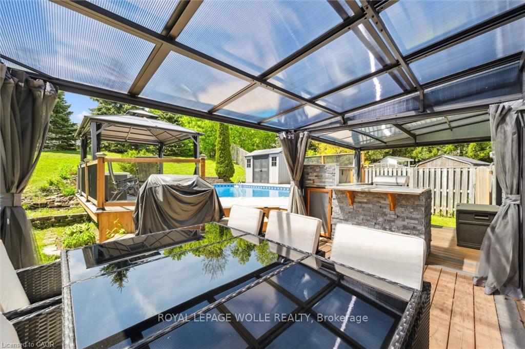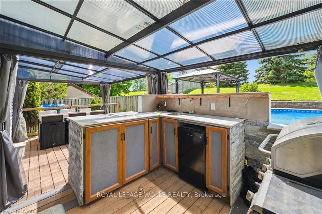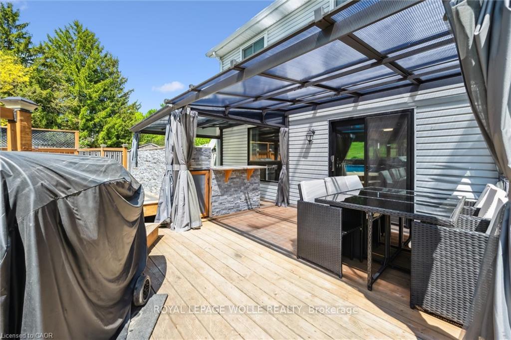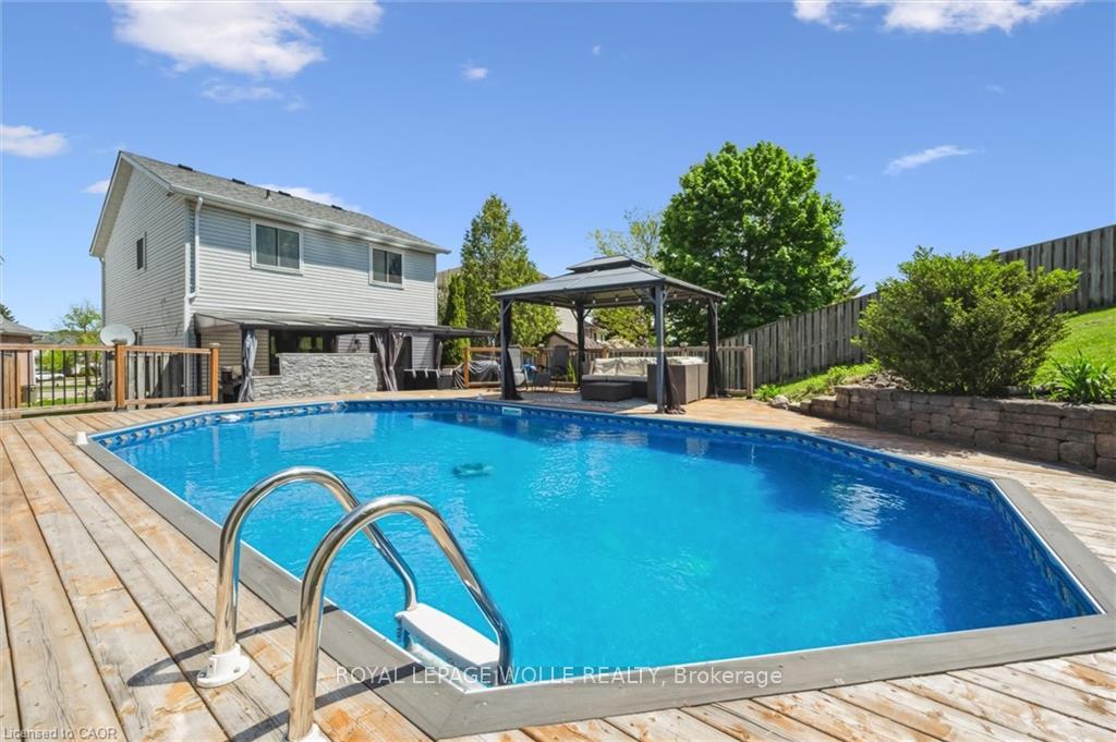 Ready to enjoy summer in your own private backyard oasis? This home truly delivers. Set on a quiet cul de sac and a large pie shaped lot, the very private backyard is designed for relaxing and entertaining, featuring an on ground pool installed in 2003 with a new pool heater in 2024, a gazebo, and an outdoor kitchen complete with a natural gas BBQ hookup and built in propane Blackstone griddle. Inside, the layout is warm and inviting with a welcoming living room just off the entrance that includes a dedicated dining area. The cozy family room features a gas fireplace and flows seamlessly into the kitchen and dinette, making it perfect for everyday living and hosting. The kitchen offers granite countertops and plenty of workspace. Three carpet free bedrooms provide comfort and practicality, including a spacious primary retreat with a private ensuite and jet tub. The lower level offers an abundance of additional living space with a large rec room, plus a laundry room, an additional bathroom, ample storage, and flexible space for a home gym, office, or playroom. Notable updates include a new insulated garage door (2024), updated address lights (2024), interior smart light switches and a smart garage door (2024), a gazebo with backyard entrance (2025), a new AC unit (2025), a new washer (2025), and fresh paint in the basement (2026). All of this is conveniently located close to amenities, shopping, schools, and expressway access. A rare combination of privacy, upgrades, and lifestyle living, this is one you do not want to miss!
