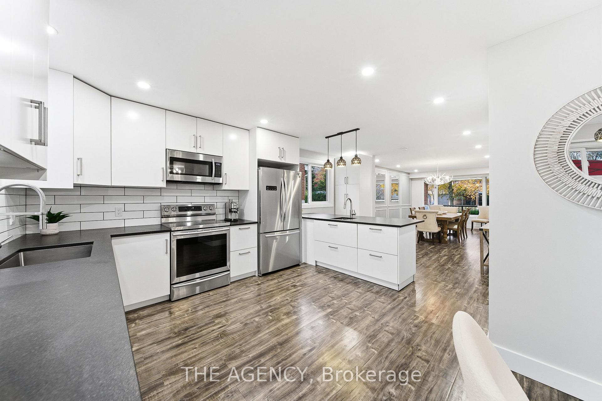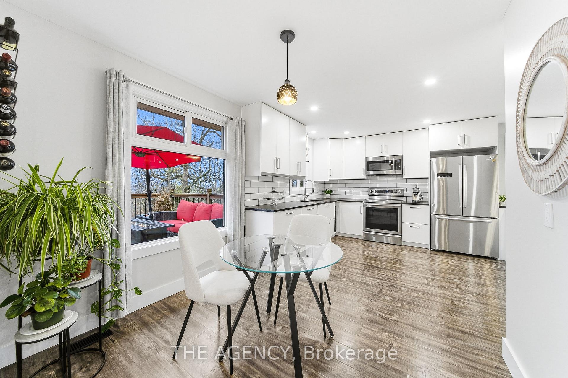 Welcome to 23 Stonegate Drive – a fully renovated family home offering over 2,900sqft of finished living space. Featuring 5 bedrooms, 3.5 bathrooms, and a fully finished walkout basement, this home perfectly combines modern design with a rare natural backdrop. With no rear neighbours and breathtaking views of the Grand River, it offers both privacy and serenity. Every detail has been thoughtfully updated – flooring, trim, doors, lighting, kitchen, bathrooms, and appliances – creating a fresh, contemporary aesthetic throughout. The main floor showcases an impressive kitchen with granite countertops and generous cabinetry, an inviting dining area with a bay window, and a bright living room that opens onto an elevated deck overlooking mature trees. A convenient main-floor laundry room and a 2-piece powder room complete the space. Upstairs, you’ll find four spacious bedrooms and two beautifully renovated bathrooms, including a serene primary suite designed for relaxation. The walkout lower level expands your living space with a large recreation room, cozy gas fireplace, fifth bedroom, updated 3-piece bathroom, and a covered patio leading to your private trail down to the river. Step outside and enjoy the outdoors right from your backyard – walk the river trails, launch a canoe, or simply take in the tranquil views. All this, just minutes from shopping, skiing, highway access, and more.
