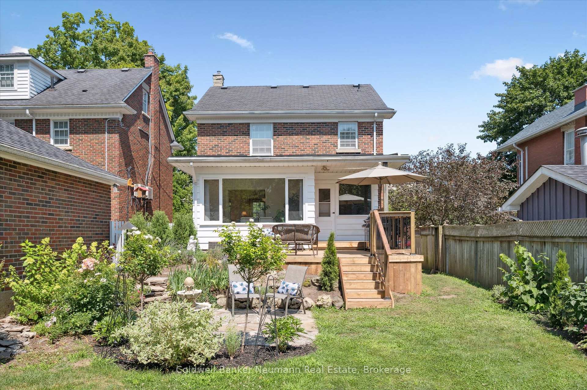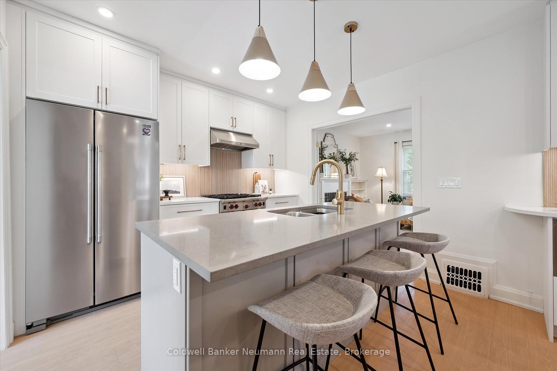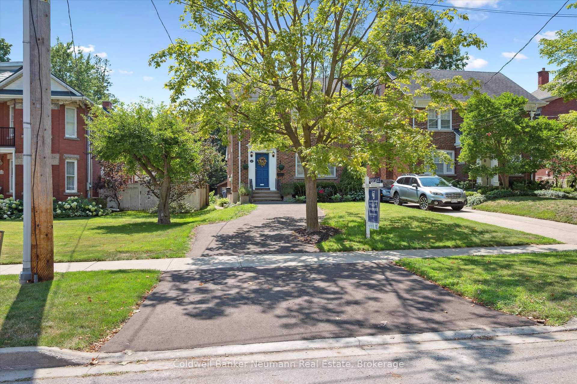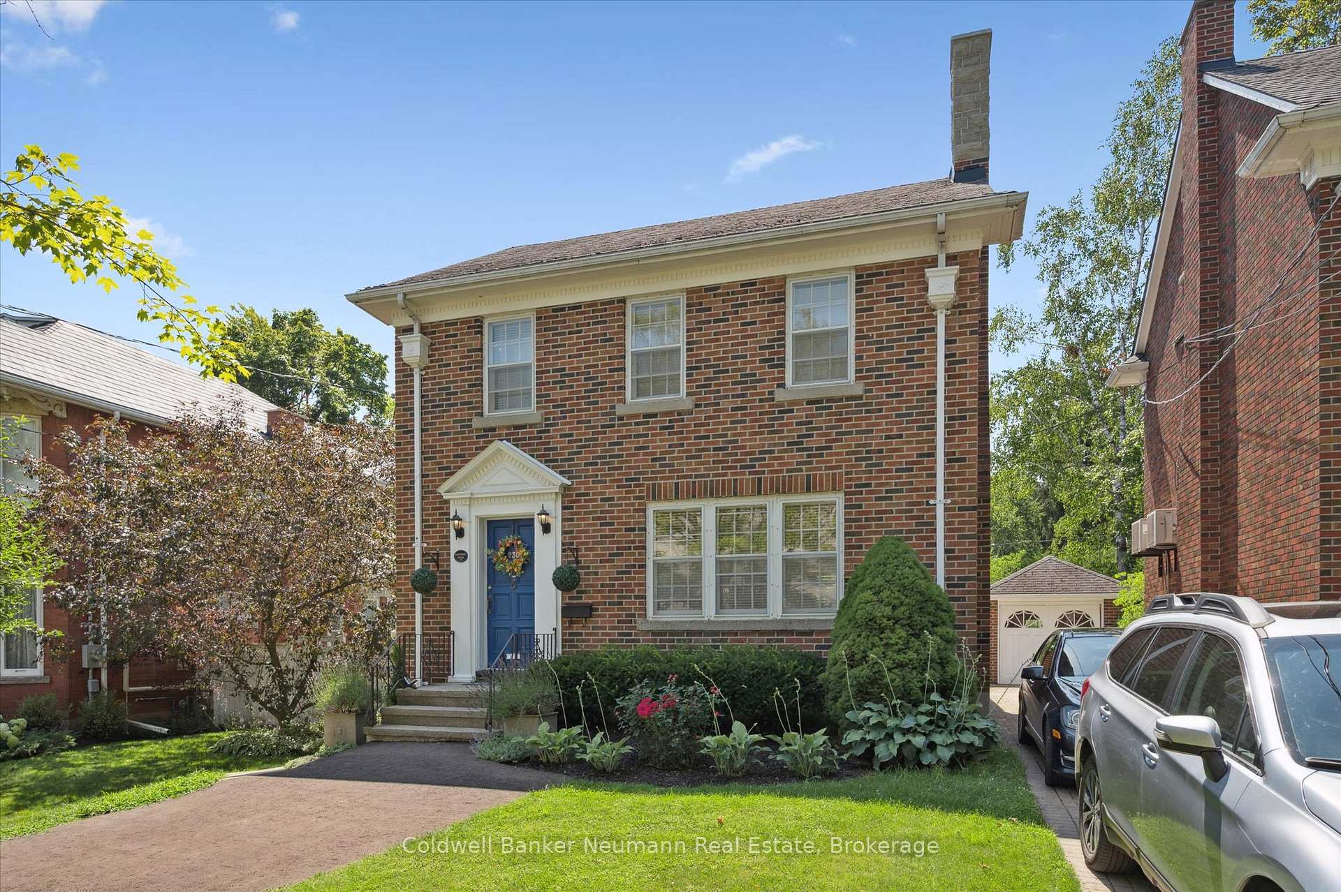 Be the proud owner of this timeless double-brick Georgian-style home, a true piece of Guelph’s history. Built by one of the city’s notable architects of the era, its character shines through, much like the other landmark homes that define the downtown streetscape. Inside, you’ll find sun-filled, spacious rooms highlighted by an authentic wood-burning fireplace and a gourmet kitchen featuring built-in luxury details, brand-new appliances, and a professional Wolf range with matching hood. The kitchen flows seamlessly into the formal dining room, framed by a picture window overlooking the lush back garden. Step outside to enjoy a new deck, flagstone patio, and a covered, gas-powered BBQ area surrounded by manicured gardensperfect for entertaining family and friends in every season. Set in the highly sought-after Exhibition Park neighbourhood, this home combines historical charm with modern convenience. Enjoy updated electrical, plumbing, and insulation for worry-free living, along with excellent heating and cooling, a main-floor powder room, and walkable access to schools, sports and arts centres, restaurants, shops, and the farmers market. With plenty of storage, a large cedar shed, a full attic with potential, and a roughed-in 3-piece basement bathroom, there’s room to make this home truly your own. Own a remarkable part of Guelph’s history in a warm, welcoming community where memories are waiting to be made. Welcome to 230 Dublin Street North.