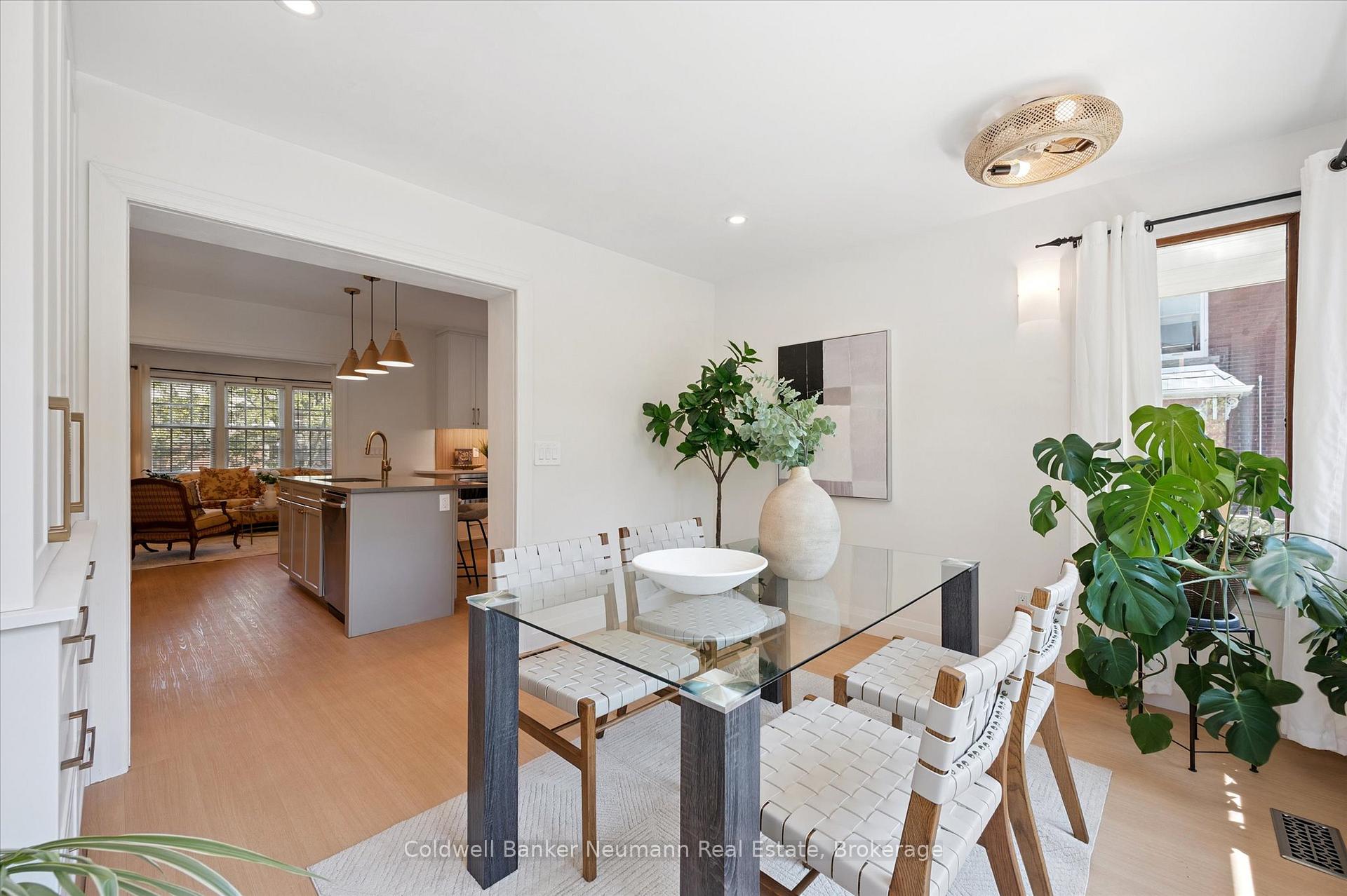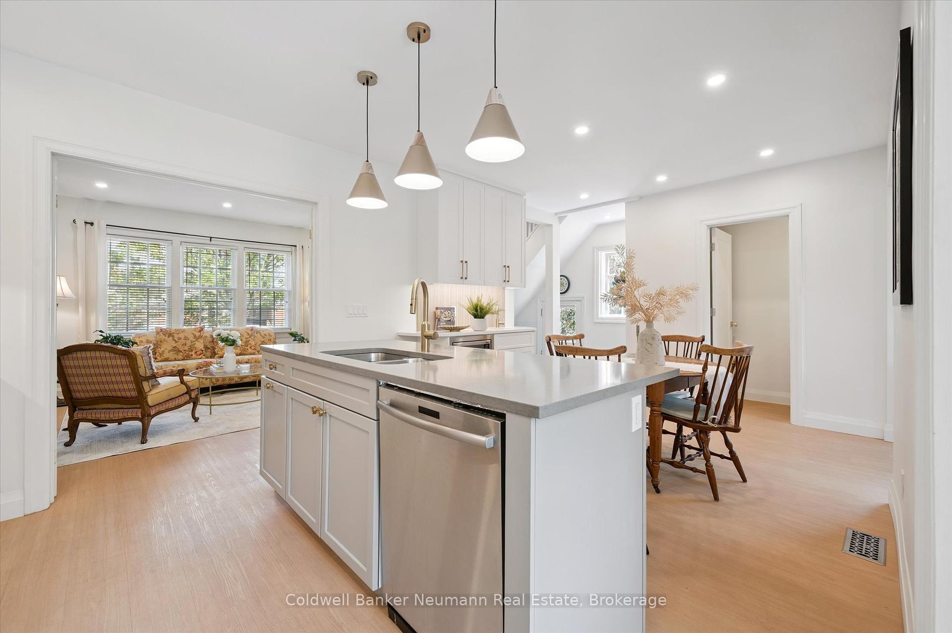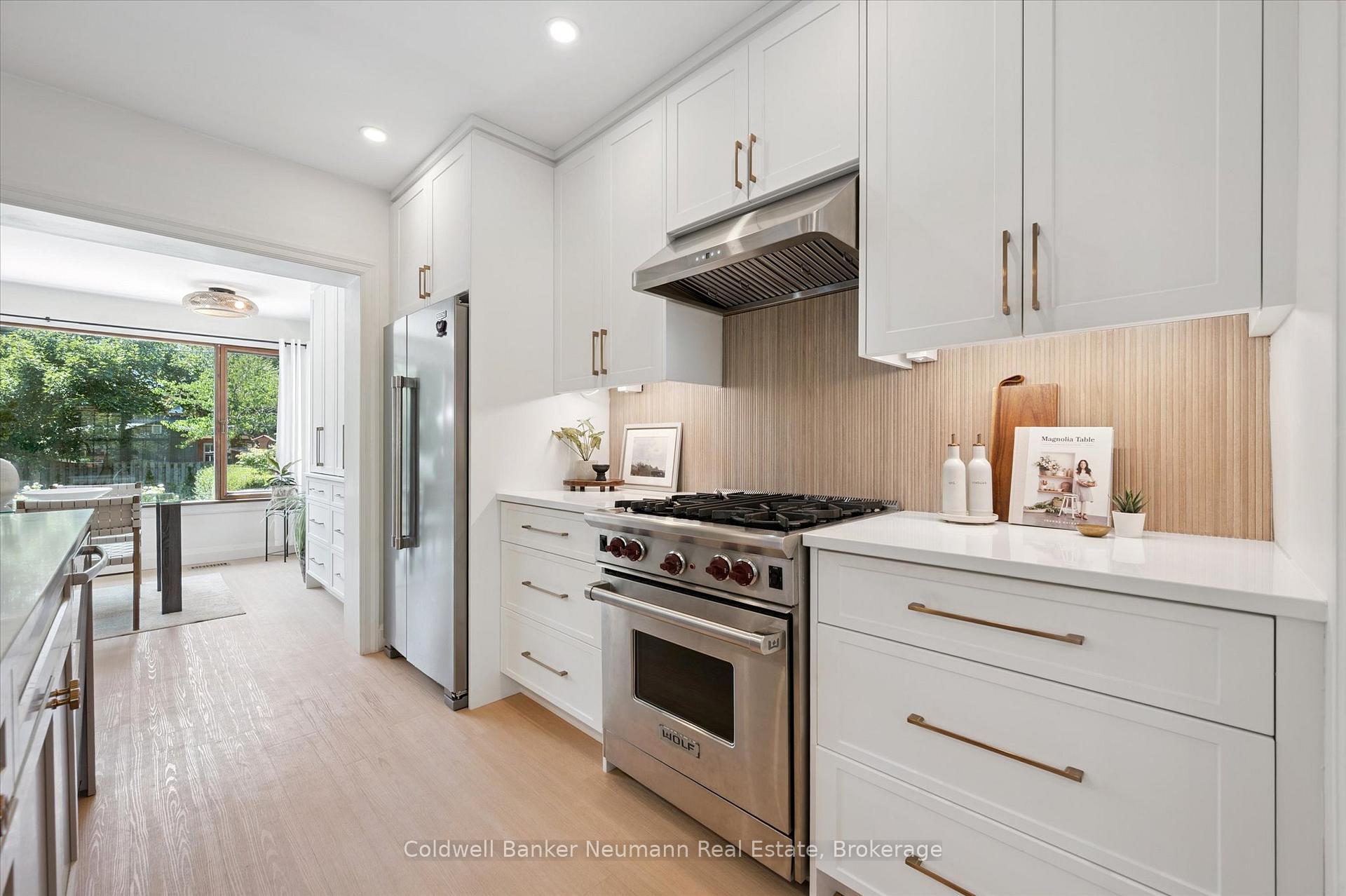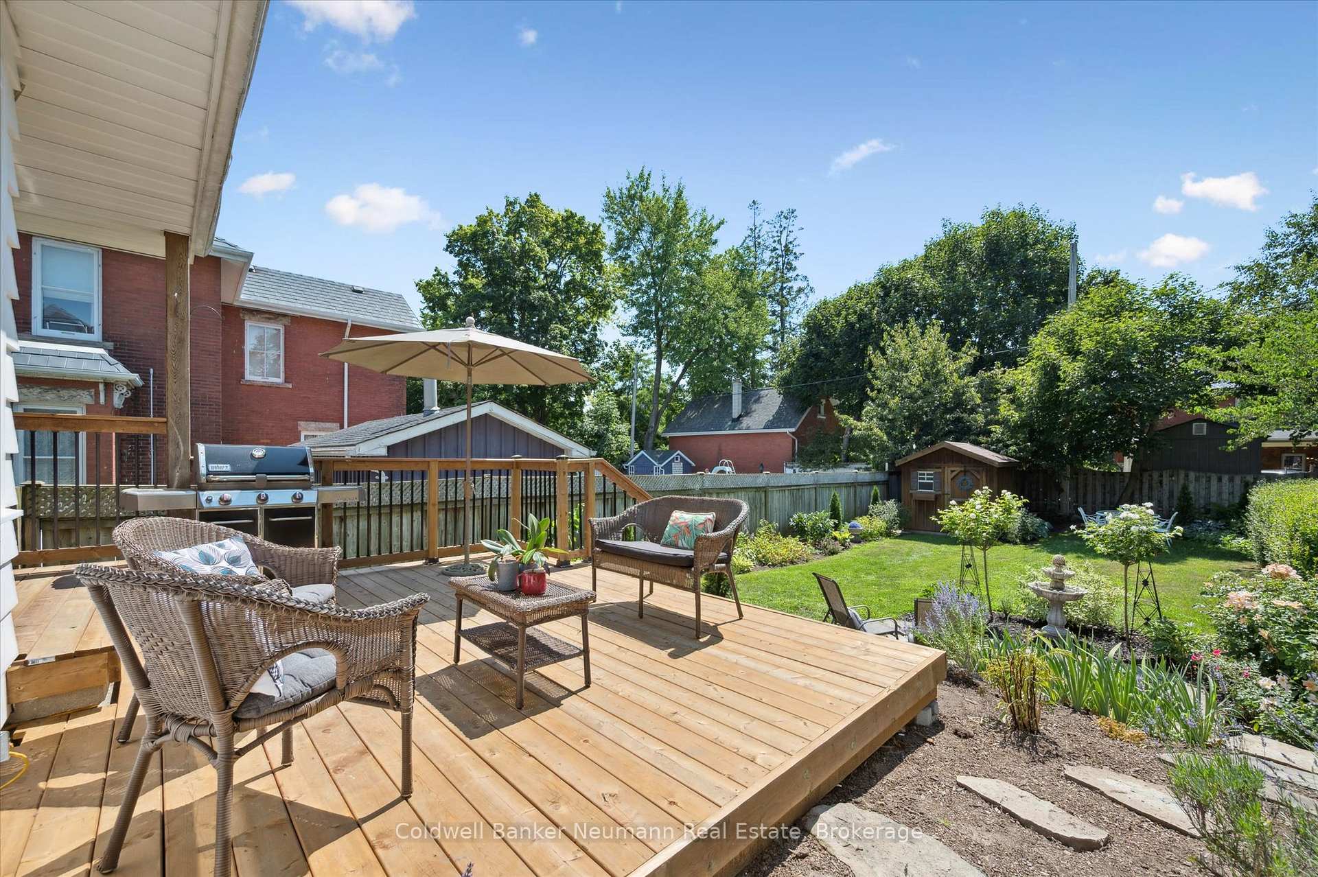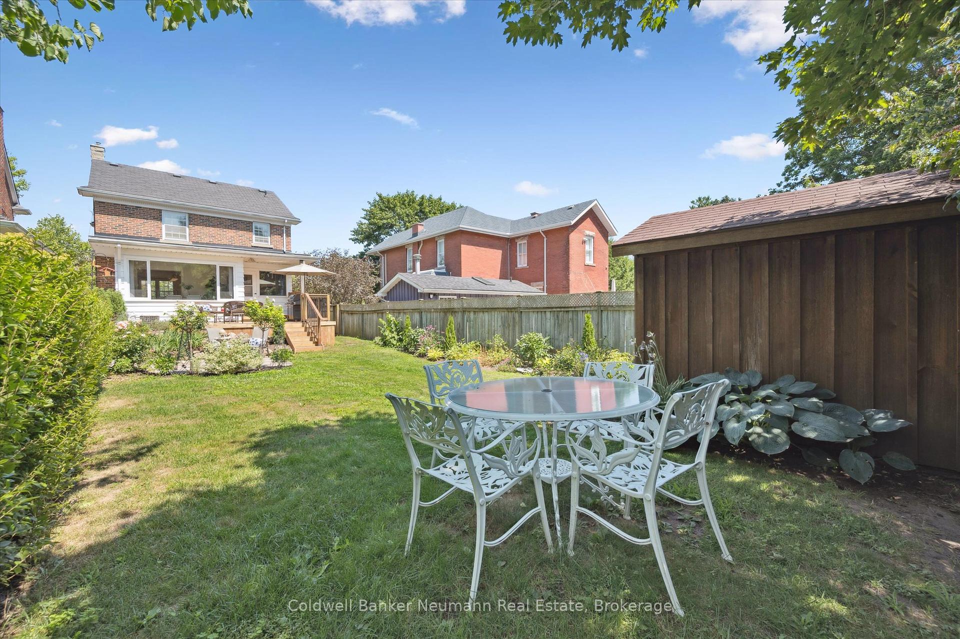 Be the proud owner of this timeless double-brick Georgian-style home, a true piece of Guelph’s history. Built by one of the city’s notable architects of the era, its character shines through, much like the other landmark homes that define the downtown streetscape. Inside, you’ll find sun-filled, spacious rooms highlighted by an authentic wood-burning fireplace and a gourmet kitchen featuring built-in luxury details, brand-new appliances, and a professional Wolf range with matching hood. The kitchen flows seamlessly into the formal dining room, framed by a picture window overlooking the lush back garden. Step outside to enjoy a new deck, flagstone patio, and a covered, gas-powered BBQ area surrounded by manicured gardensperfect for entertaining family and friends in every season. Set in the highly sought-after Exhibition Park neighbourhood, this home combines historical charm with modern convenience. Enjoy updated electrical, plumbing, and insulation for worry-free living, along with excellent heating and cooling, a main-floor powder room, and walkable access to schools, sports and arts centres, restaurants, shops, and the farmers market. With plenty of storage, a large cedar shed, a full attic with potential, and a roughed-in 3-piece basement bathroom, there’s room to make this home truly your own. Own a remarkable part of Guelph’s history in a warm, welcoming community where memories are waiting to be made. Welcome to 230 Dublin Street North.