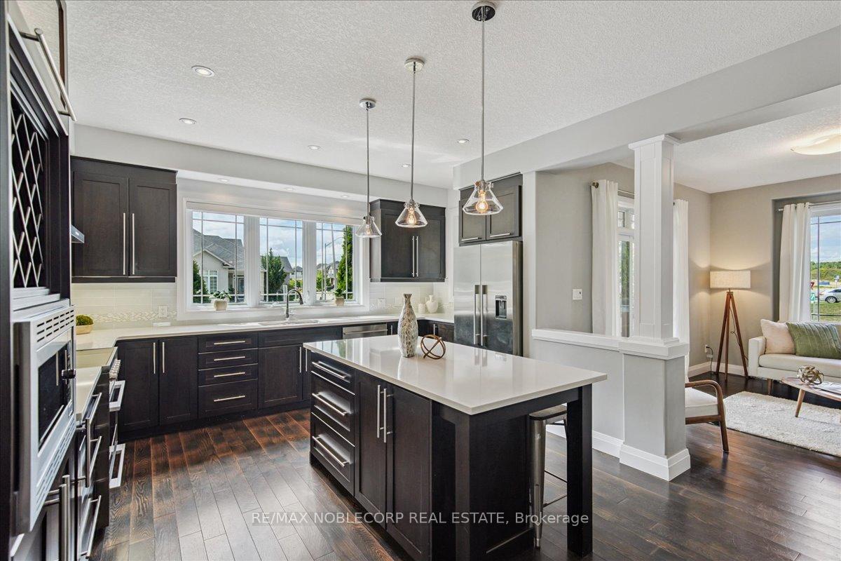 Welcome to 232 Maple Bush Drive a custom-built corner-lot home with a gorgeous curb appeal that has been well maintained! This property was previously the model home of the community in Branchton Park, Cambridge. Over 3,200+ sqft of living space, this 4-bed, 4-bath home has a lot to offer you and your family. The main level features high ceilings, premium tile & hardwood floors, living & family rooms with a ton of natural light. The beautiful kitchen is the main focal point with Fisher & Paykel stainless steel appliances, quartz countertops, custom cabinetry, and an oversized island. Upstairs features 4 large bedrooms, including a primary suite that has a ton of space with a large walk-in closet and ensuite with a jetted bathtub, large glass shower, and quartz countertop. The finished basement has a ton of reasons to love a custom wet bar with a built-in wine cooler and fridge, a large theatre area, and a beautiful bathroom with quartz finishes and a glass shower. The property has 2 outdoor sitting spaces, both covered patios at the front and a large deck to enjoy the backyard. Complete with a 2-car garage (parking for 5) and close to parks, schools, and shops, this home offers luxury!