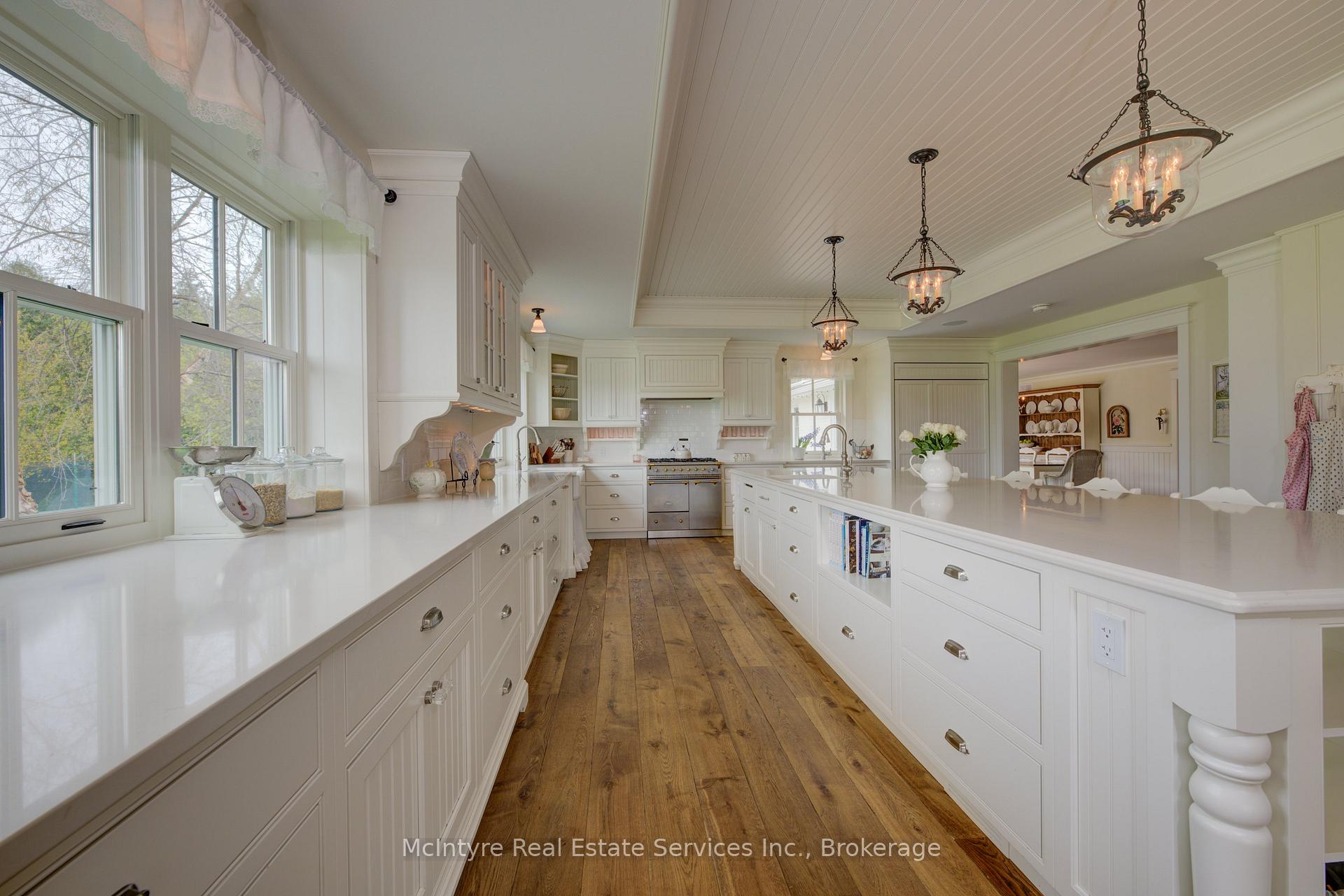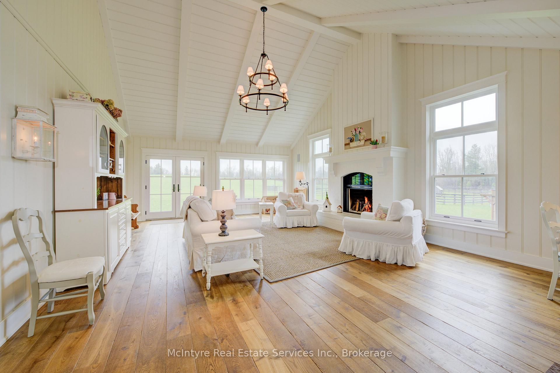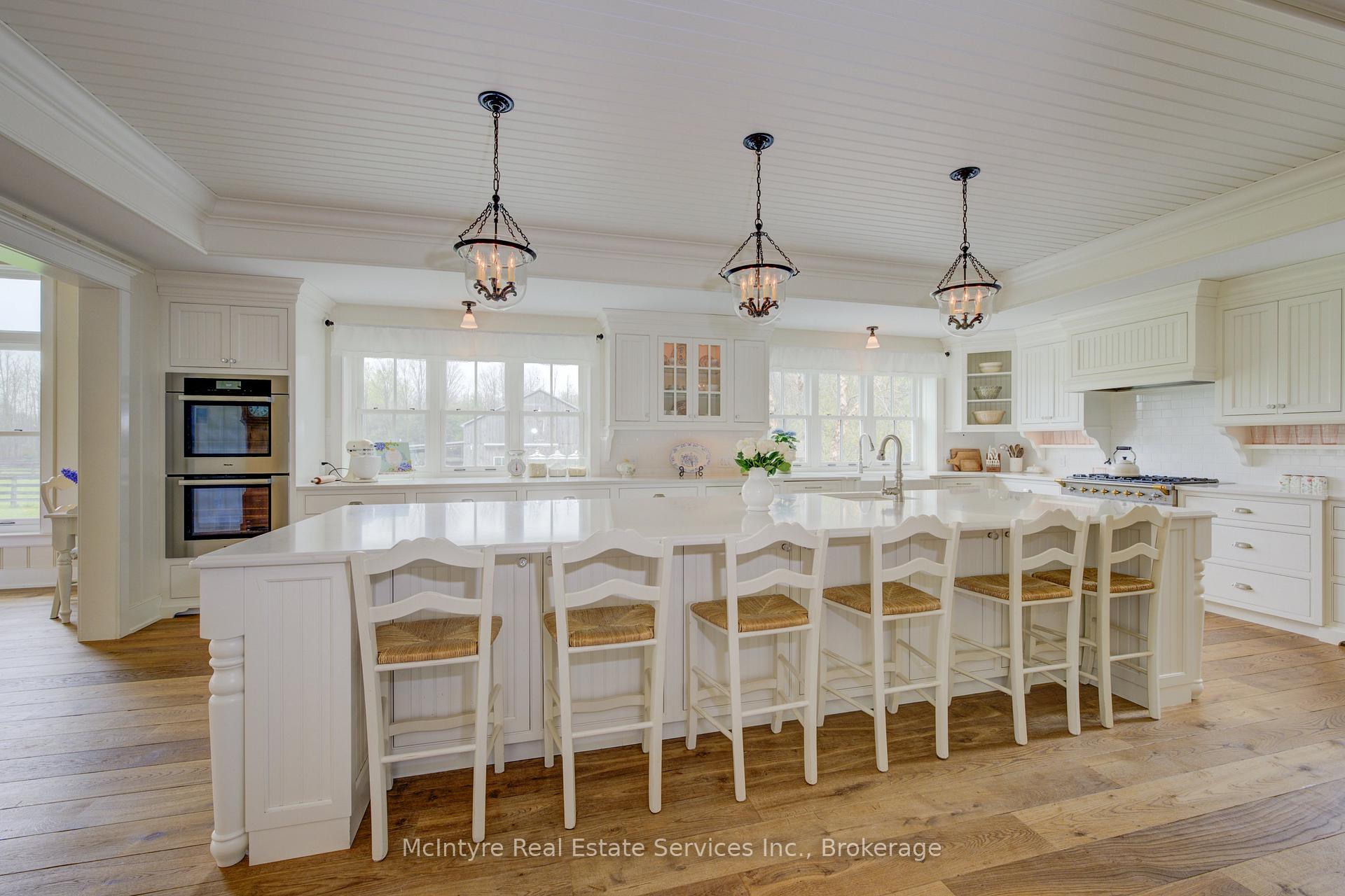 Welcome to your dream country estate! Ideally, located on a quiet rd walking distance to the Mountsberg Conservation and close to Milton, Oakville and Burlington. This breathtaking property spans over ten acres of pristine land, offering a perfect blend of country living and luxury. A beautiful farmhouse, with over 7000 square feet of living space. This home offers everything for family, friends, and entertaining. Once inside, you will be welcomed by a spacious foyer that leads to a dreamy library, and then past an enchanting dining room with a 14-person table and gas fireplace. Next you’ll be greeted by the heart of the home. An awe-inspiring kitchen featuring a magnificent island, adorable pantry, Subzero fridge, Miele double ovens, and a stunning 36-inch Lacanche range. Wide plank wood floors on all levels add a touch of warmth to every room. The primary wing offers beautiful views, ensuite bathroom, stately primary bedroom with double closets and a personal office or dressing room. Open from the kitchen, the cathedral ceiling living room is adorned with a Rumford fireplace. Notice the views and light streaming in from new Anderson Windows all around. To tackle the farm fun a well appointed garage, a mudroom and laundry room off side and back entrance. Outside, a rolling pasture, beautiful barn with separate well, paddocks, heated workshop and tack room. Below, a bright walkout with five-piece bath, 3 bedrooms each with large windows, exercise room, large schoolroom/ rec room, a third fireplace, and radiant floor heating ensure comfort even on the chilliest of days. Two furnaces, a Veisman boiler, all-new plumbing and electrical, and a second laundry room give you peace of mind that your home will function as well as it looks. With 8 bedrooms and 5 bathrooms, there’s ample space for everyone to unwind and relax. With picturesque views of paddocks, gardens, pasture, and forests right outside your window, this is how your family is meant to live.