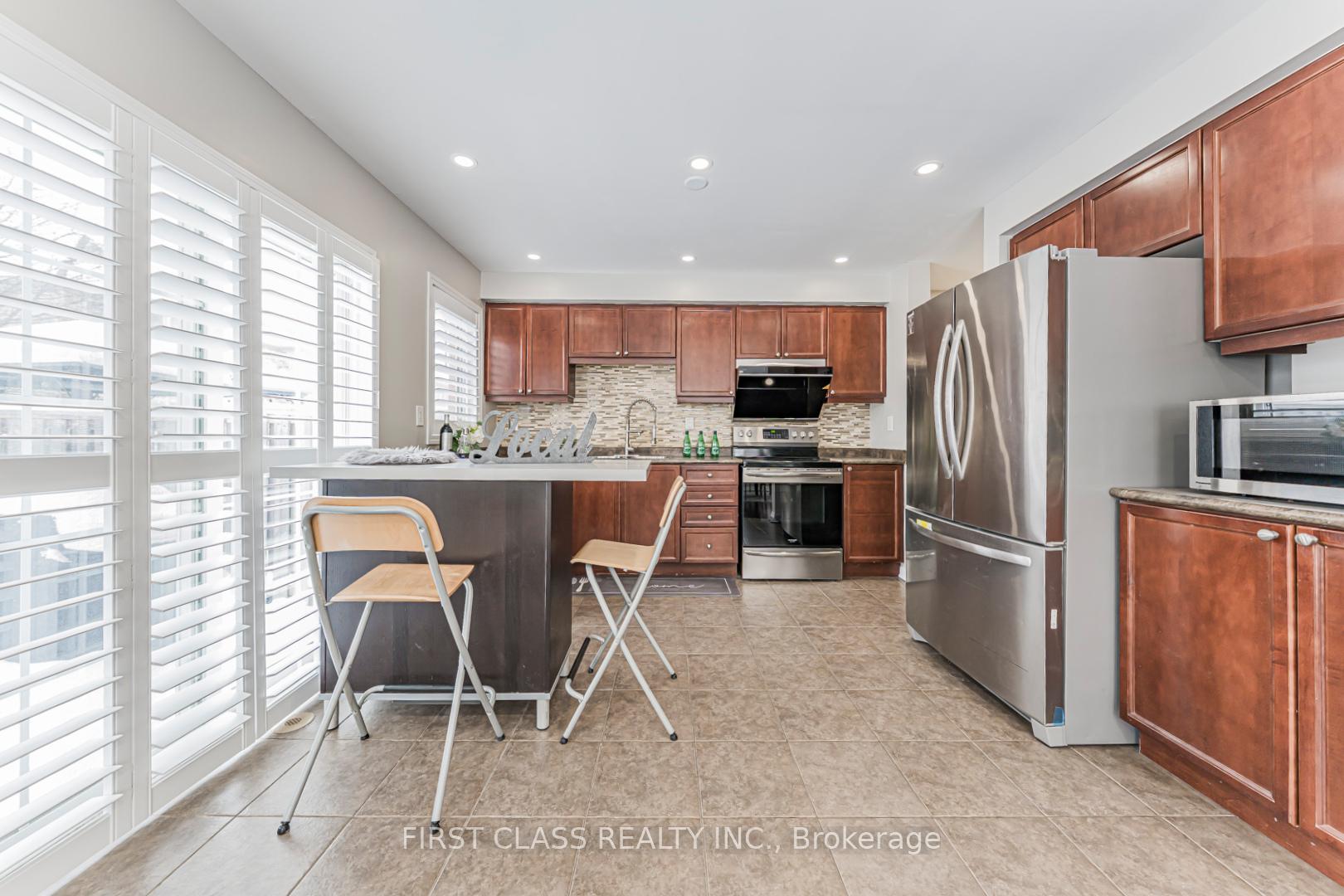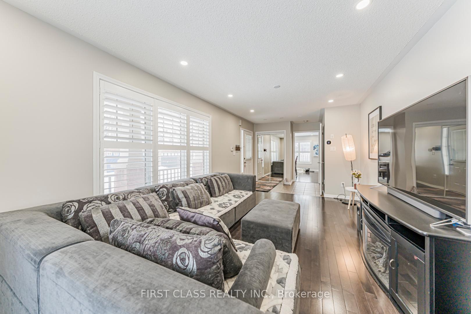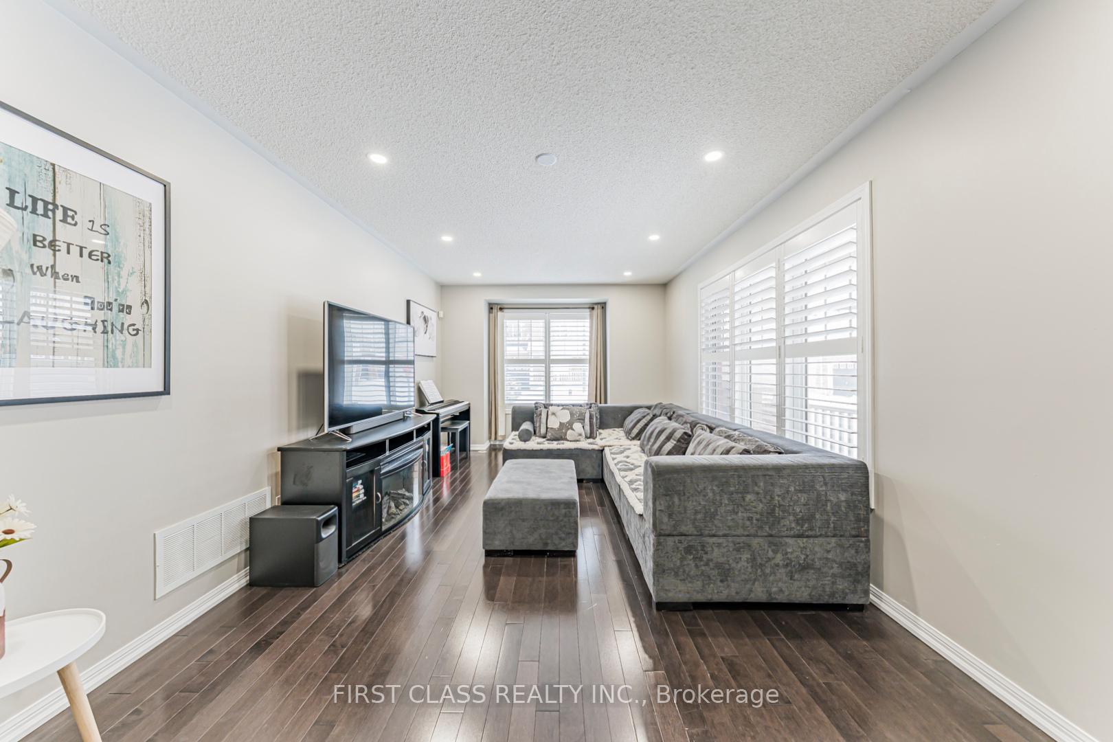 This exceptional corner semi-detached home offers approximately 1,845 sq. ft. of well-designed living space with 4 spacious bedrooms and 2.5 bathrooms, ideally located in the highly sought-after Harrison neighbourhood. Within walking distance to top-rated schools, parks, and shopping, and just minutes to Highways 401 & 407 and the GO Station, this property is perfectly suited for commuters and growing families. The exterior features a fully fenced backyard and upgraded exposed aggregate concrete in both the front and rear yards, providing parking for up to three vehicles and low-maintenance outdoor living. Inside, the bright eat-in kitchen showcases dark maple cabinetry, a centre island, glass mosaic backsplash, and stainless steel appliances. The open-concept living and dining areas are highlighted by hardwood flooring, modern lighting, and a neutral, freshly painted interior throughout. Upstairs, all bedrooms feature hardwood floors. The generous primary suite includes a large walk-in closet and a private ensuite with a Jacuzzi tub. Pride of ownership is evident with extensive upgrades, including exposed aggregate concrete (2020), hardwood flooring and staircase throughout (2014), California shutters (2021), pot lights and LED ceiling lighting (2024), and fresh paint throughout (2026). All appliances are within two years new. A warm, move-in-ready home offering outstanding value, comfort, and convenience in a family-friendly community.