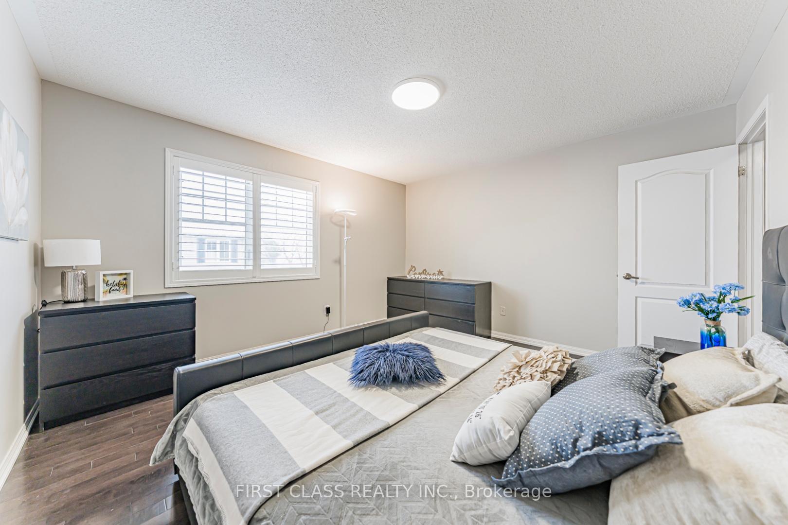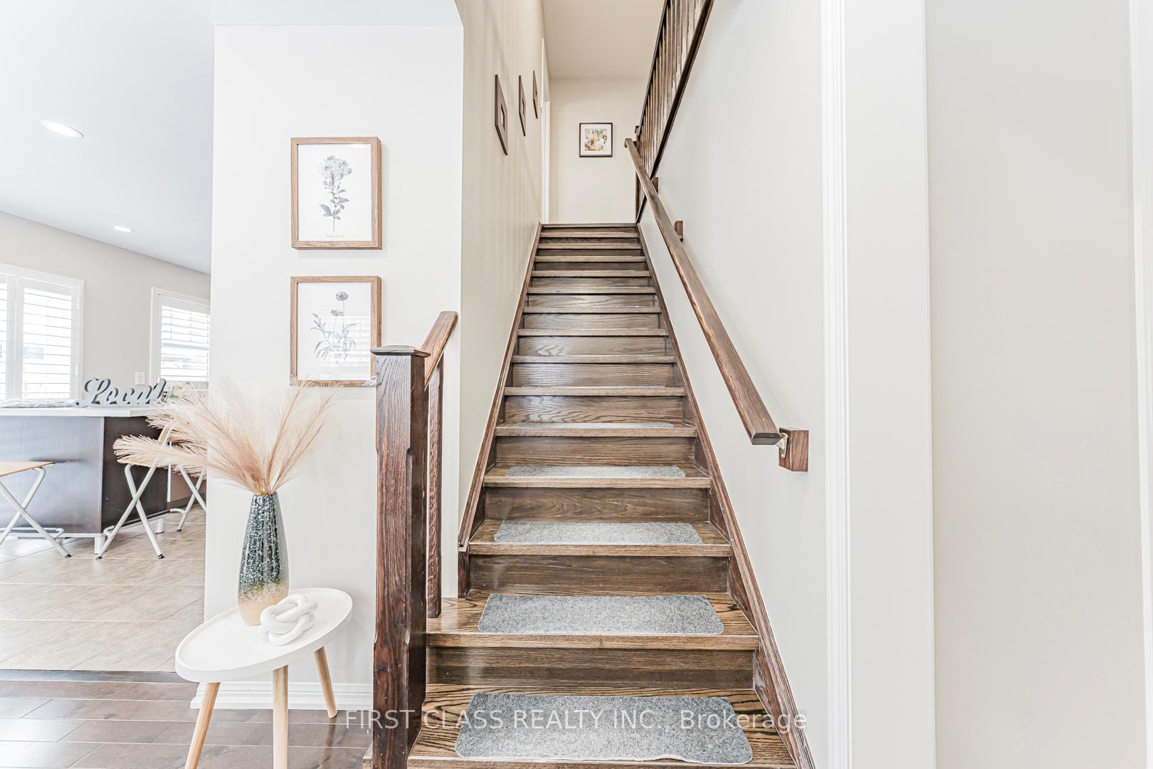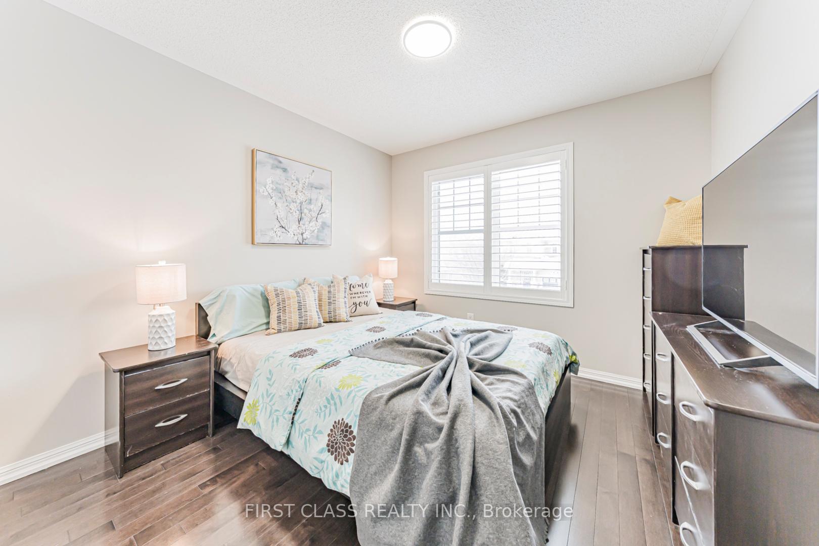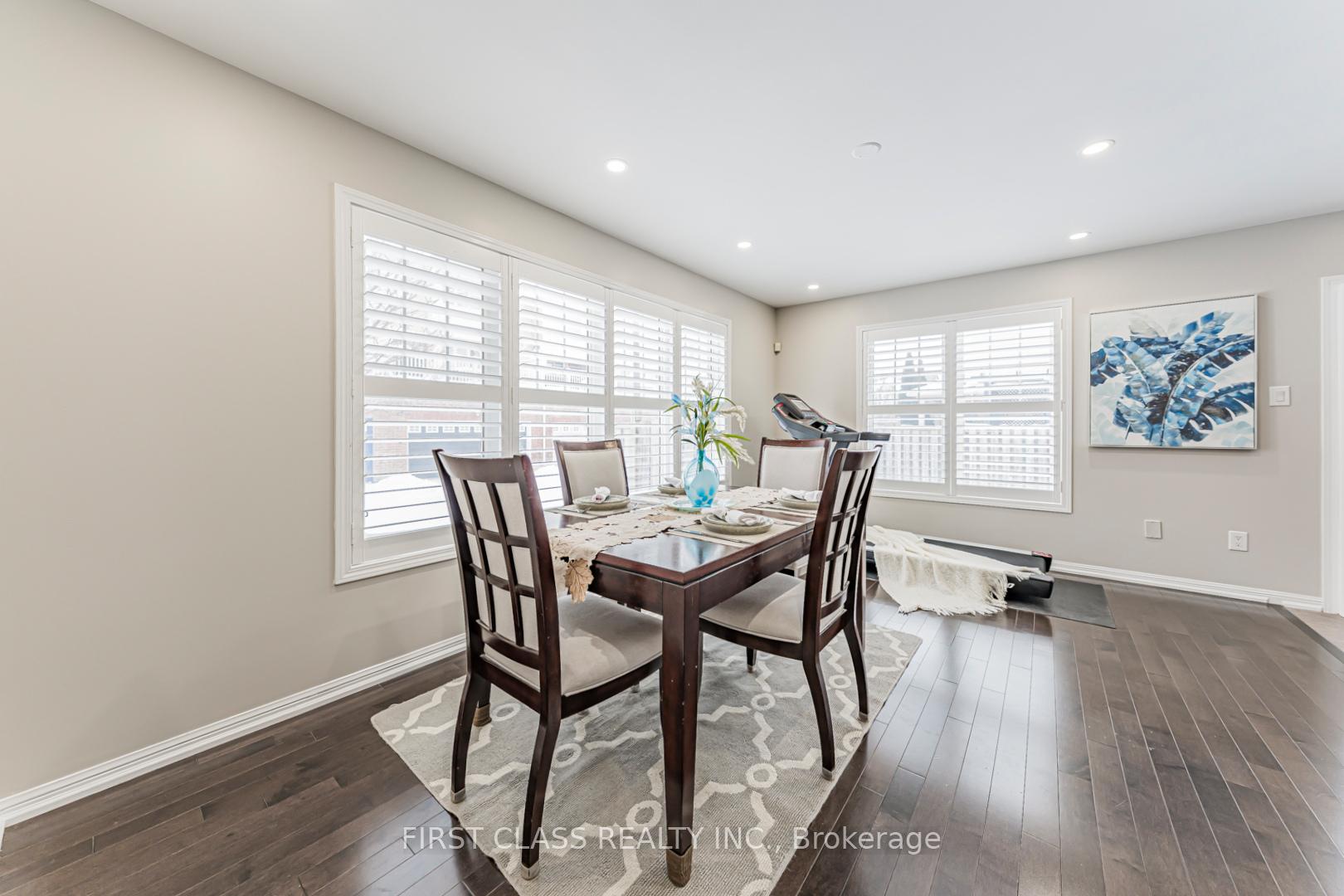 This exceptional corner semi-detached home offers approximately 1,845 sq. ft. of well-designed living space with 4 spacious bedrooms and 2.5 bathrooms, ideally located in the highly sought-after Harrison neighbourhood. Within walking distance to top-rated schools, parks, and shopping, and just minutes to Highways 401 & 407 and the GO Station, this property is perfectly suited for commuters and growing families. The exterior features a fully fenced backyard and upgraded exposed aggregate concrete in both the front and rear yards, providing parking for up to three vehicles and low-maintenance outdoor living. Inside, the bright eat-in kitchen showcases dark maple cabinetry, a centre island, glass mosaic backsplash, and stainless steel appliances. The open-concept living and dining areas are highlighted by hardwood flooring, modern lighting, and a neutral, freshly painted interior throughout. Upstairs, all bedrooms feature hardwood floors. The generous primary suite includes a large walk-in closet and a private ensuite with a Jacuzzi tub. Pride of ownership is evident with extensive upgrades, including exposed aggregate concrete (2020), hardwood flooring and staircase throughout (2014), California shutters (2021), pot lights and LED ceiling lighting (2024), and fresh paint throughout (2026). All appliances are within two years new. A warm, move-in-ready home offering outstanding value, comfort, and convenience in a family-friendly community.