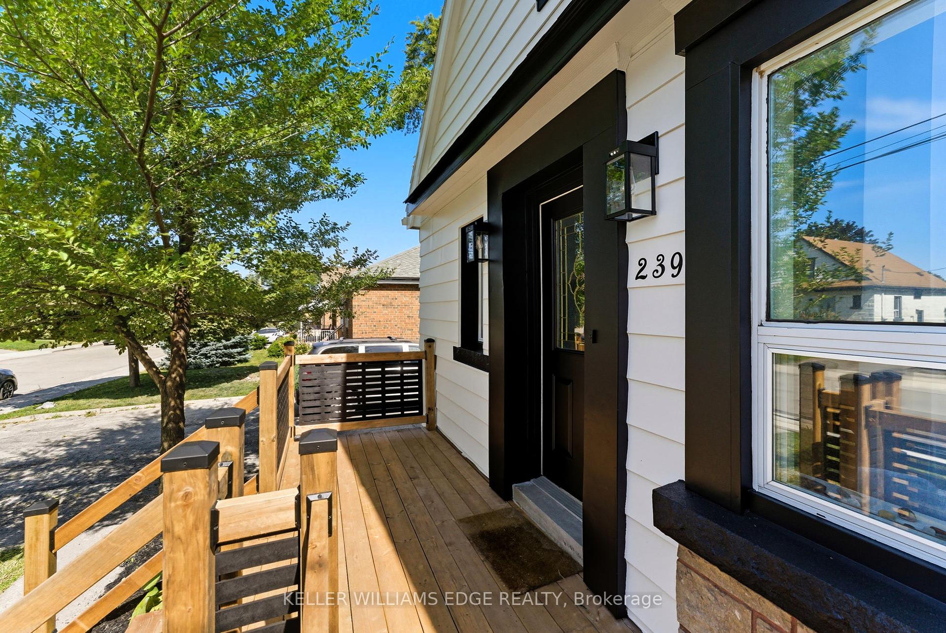 Welcome to 239 East 22nd Street, this 4-bedroom, 3-bathroom home is 1,705 sq. ft. With two separate units, you can live in one and rent out the other. Brand new front porch and railings (2025), along with freshly painted siding around (2025). The front unit boasts a beautiful main floor with hardwood floors in the living room, kitchen with an island, its own washer/dryer (2023), along with 2 bedrooms upstairs and a bathroom. The rear unit offers a lovely dining room and kitchen with vinyl flooring, a full bathroom on the main floor, a big living room with new vinyl flooring (2025), a new exterior door to the backyard, and freshly painted throughout. A full basement with 2 bedrooms, a primary bedroom ensuite, continued vinyl flooring (2021), tons of natural light, and its own washer/dryer. Walk out from the living room to your fully fenced-in backyard, where you can entertain and BBQ with friends and family. Access your detached garage for additional storage, workshop or single car parking. Walking distance to Inch Park, Eastmount Park, Community Centres, shops, restaurants, Juravinski Hospital, along with easy access to transit and highways. This is one you will not want to miss.