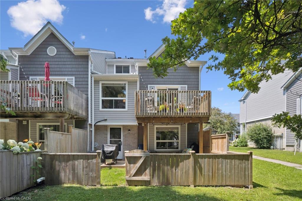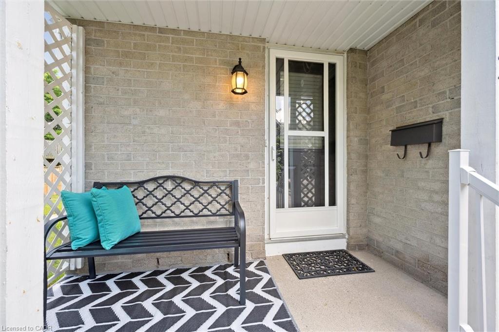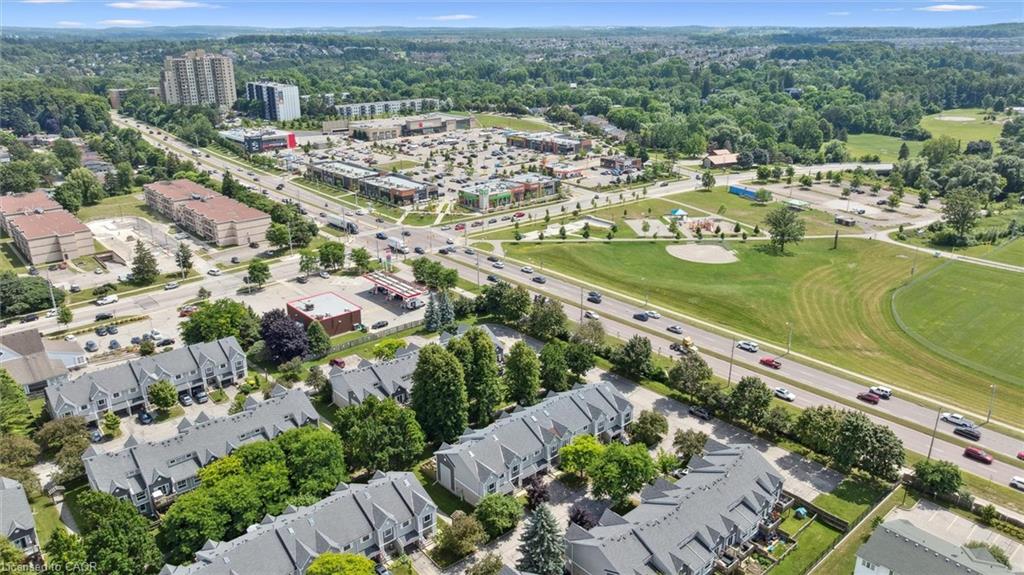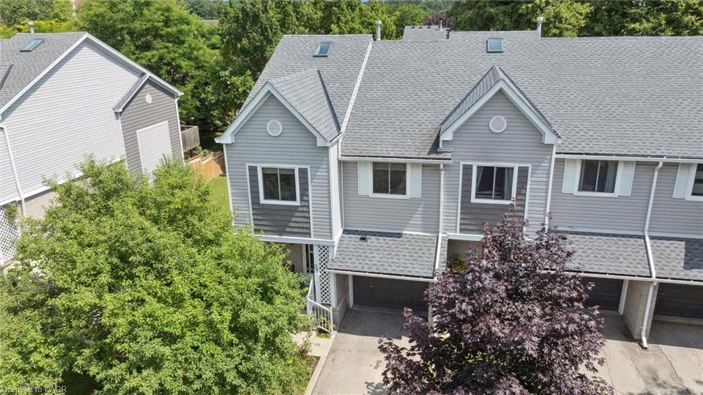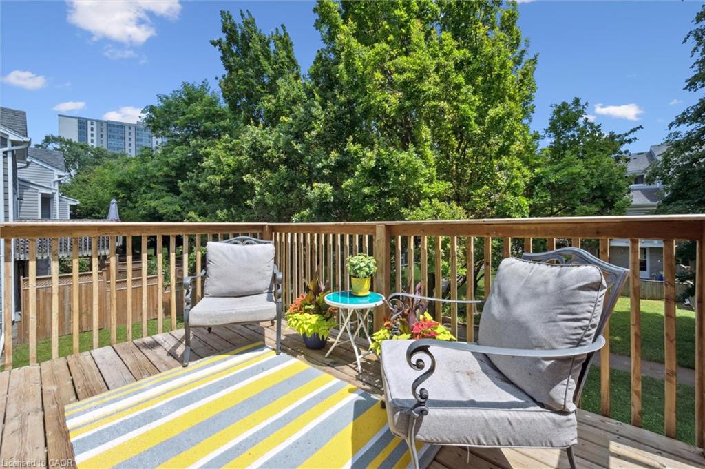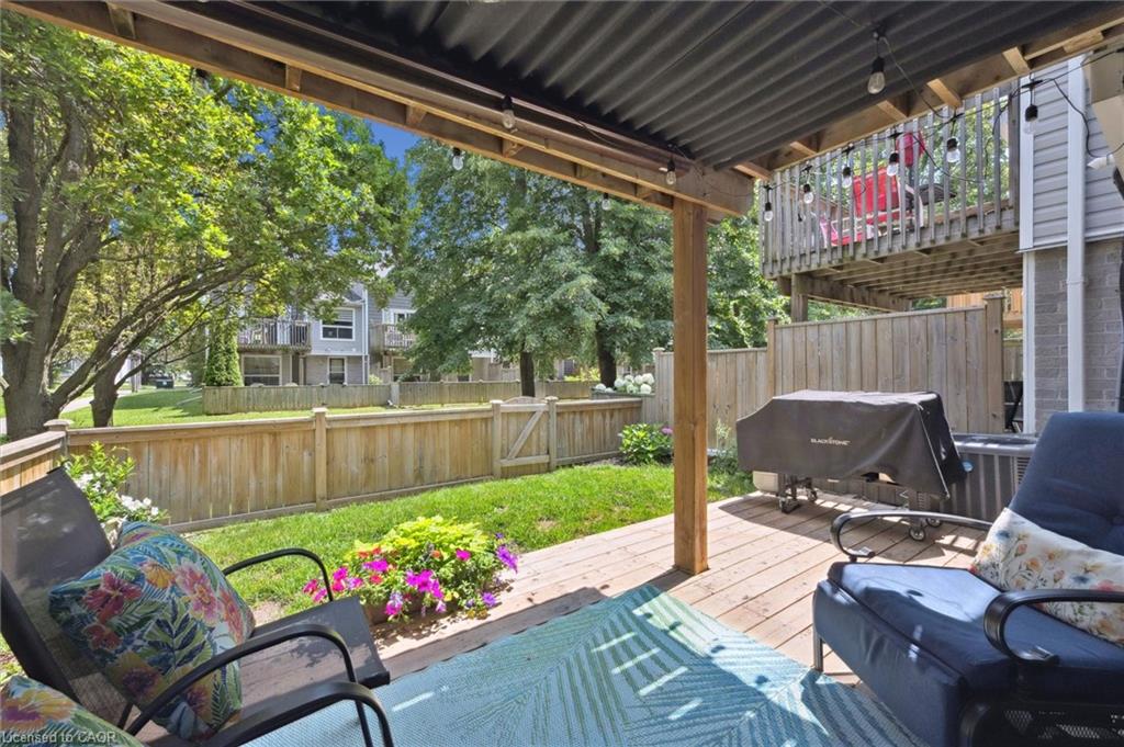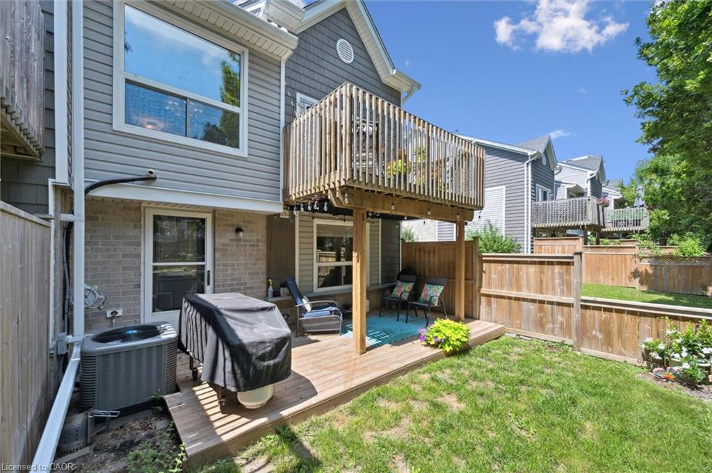 The bright walk-out basement is mostly finished and has a custom built-in entertainment unit. Walkout to a newer deck and fenced yard. Updated furnace and AC in 2022. Reasonable monthly condo fee includes water, roof which has been updated recently, and windows, along with landscaping and snow removal. Amazing location – near Conestoga College, quick access to 401, great amenities close-by include shopping, restaurants, library, park, playground, walking/biking trails, transit.