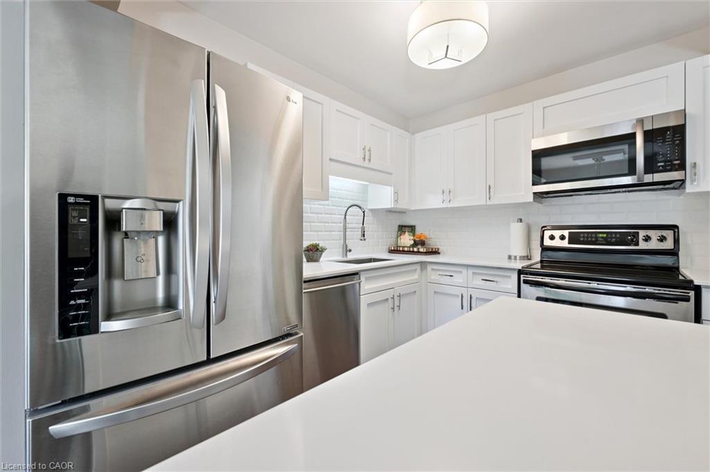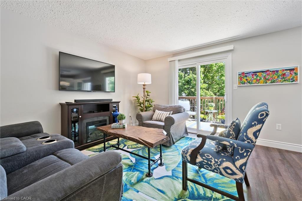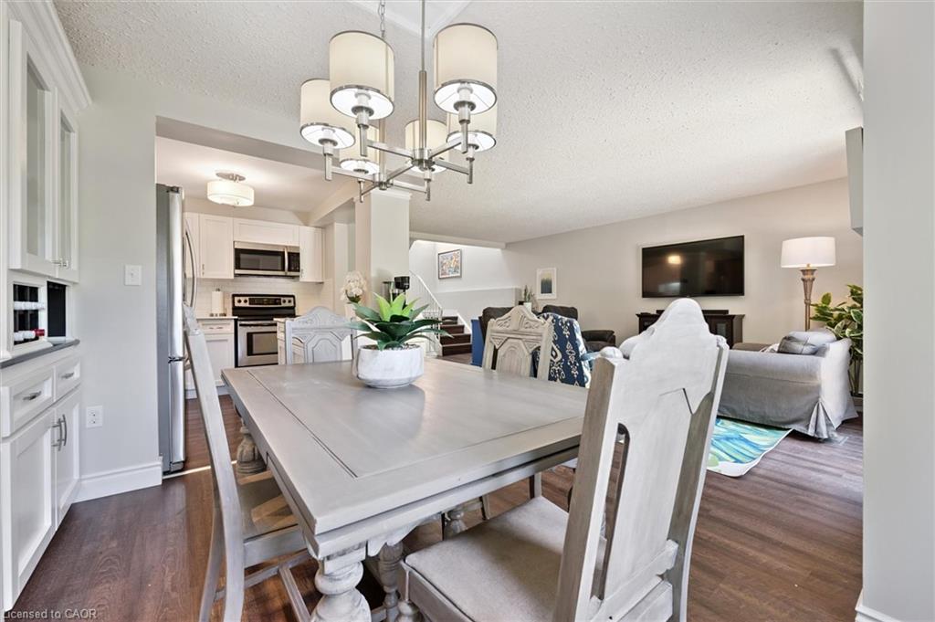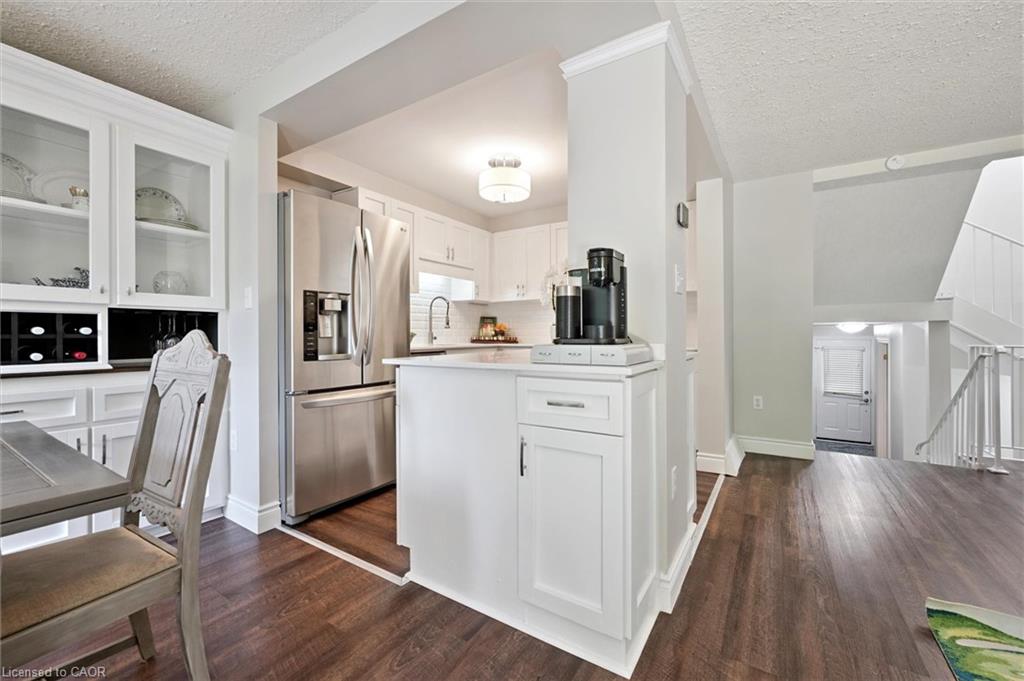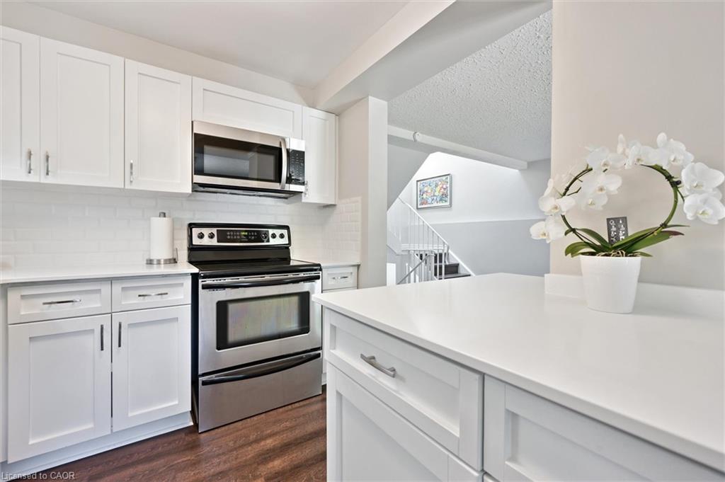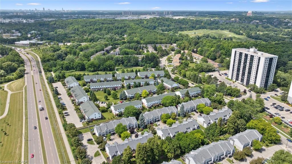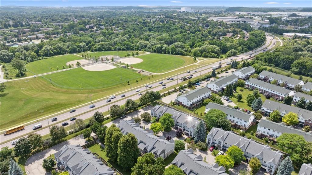 The bright walk-out basement is mostly finished and has a custom built-in entertainment unit. Walkout to a newer deck and fenced yard. Updated furnace and AC in 2022. Reasonable monthly condo fee includes water, roof which has been updated recently, and windows, along with landscaping and snow removal. Amazing location – near Conestoga College, quick access to 401, great amenities close-by include shopping, restaurants, library, park, playground, walking/biking trails, transit.